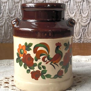 Some wear on exterior and significant staining on the interior bottom and lower sides of the jar - priced accordingly. All items in my shop are vintage or handmade and may have signs of use, wear, or variation consistent with age or hand production. Please review the photos and video carefully and message me with any questions on condition.
