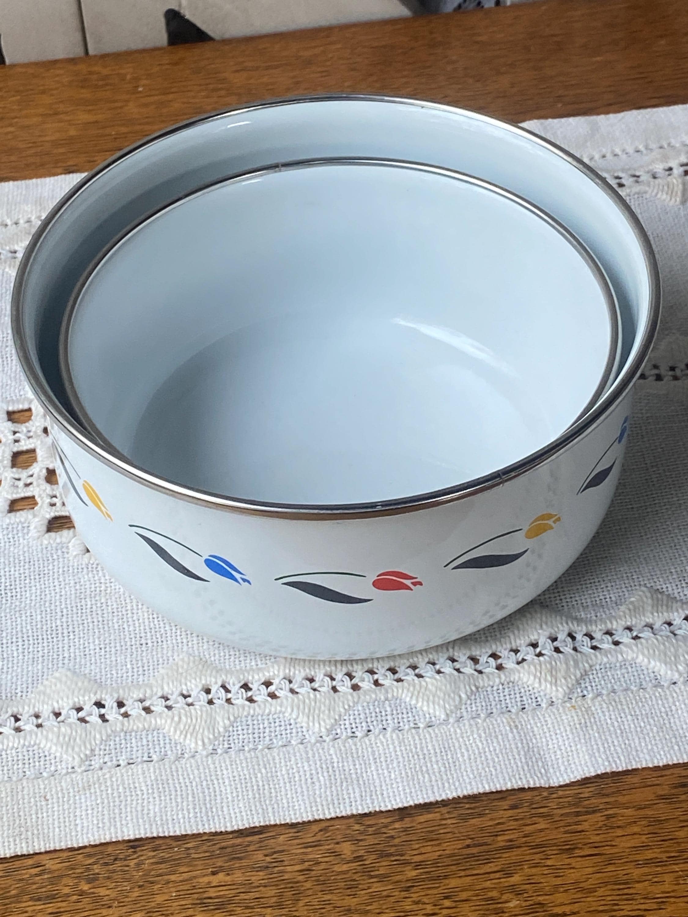 Great vintage condition with only a few minor chips in the enamel, small stains/ rubs on paint. All items in my shop are vintage or handmade and may have signs of use, wear, or variation consistent with age or hand production. Please review the photos and video carefully and message me with any questions on condition.