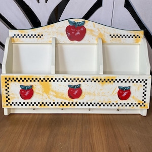This cute little antique white (more cream than pure white) wicker shelf is perfect for organizing or displaying items in small spaces. Great for a bathroom or entryway or on a tabletop. Approximately 6x15x15 inches.