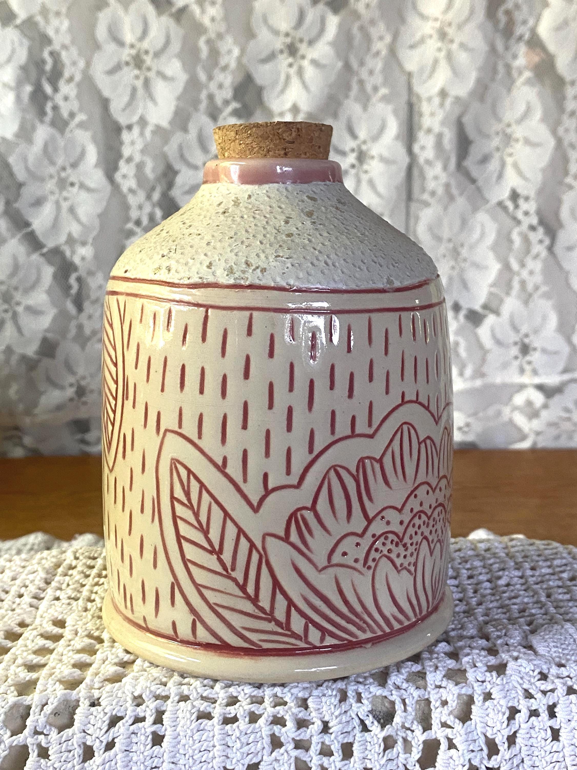 Little studio pottery jug style bottle, perfect for display or kitchen use. Such a cute addition to a country/ cottage home! Signed by the artist.