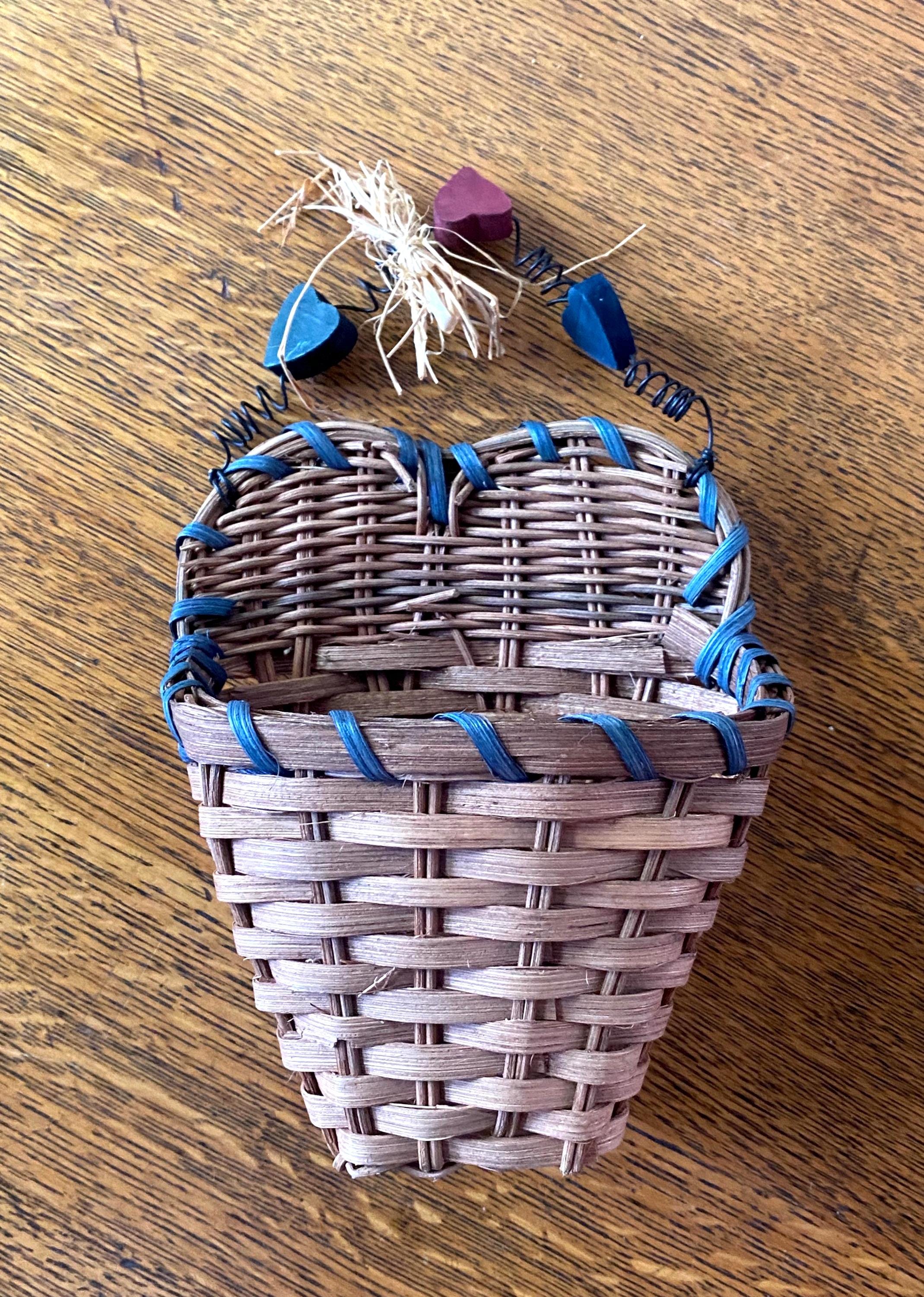 Cute little wall basket, perfect for organizing small items, mail, or holding a small plant. Good vintage condition. Minor wear on wicker. Approximately 5X2X8.5 inches.