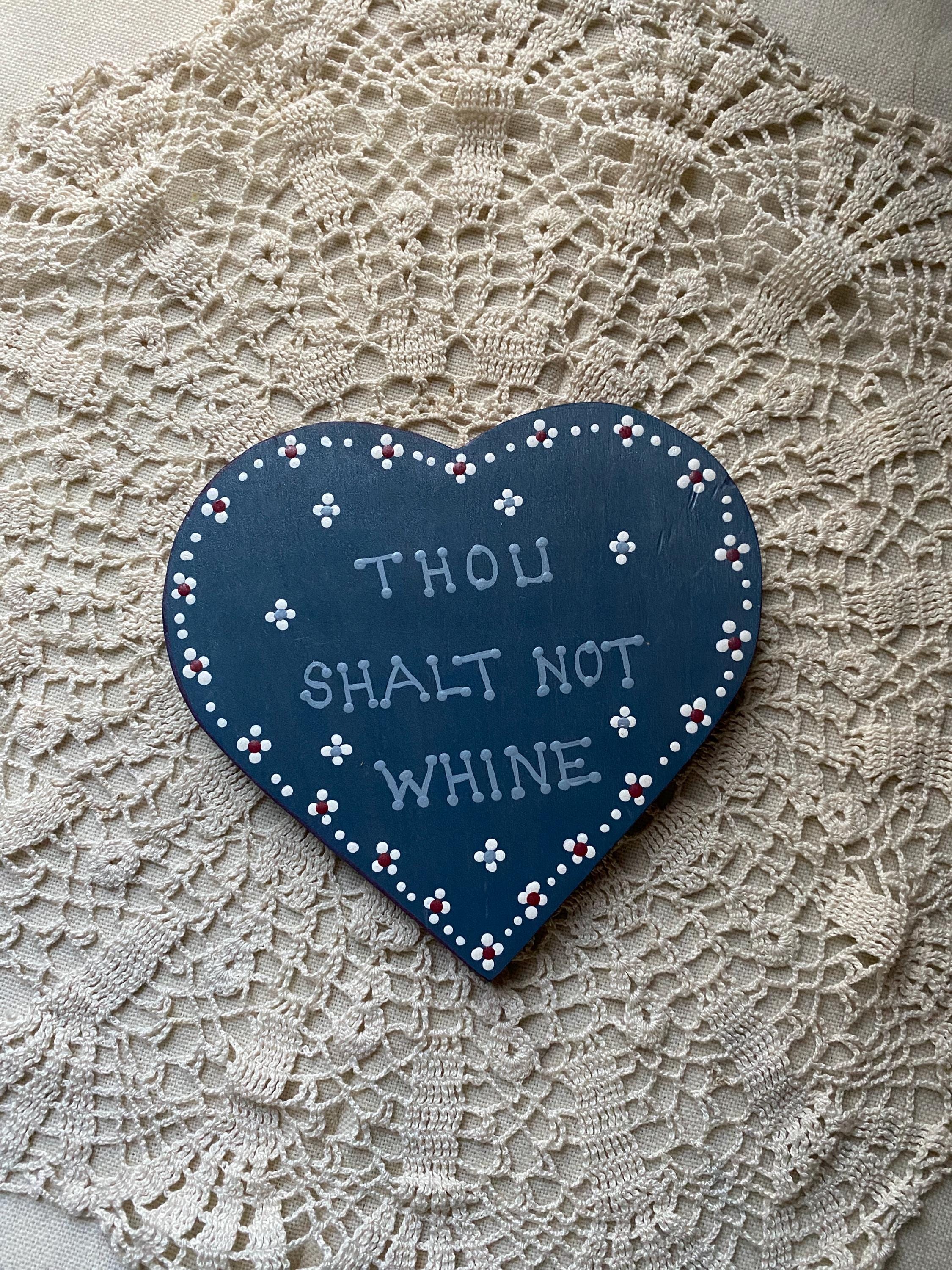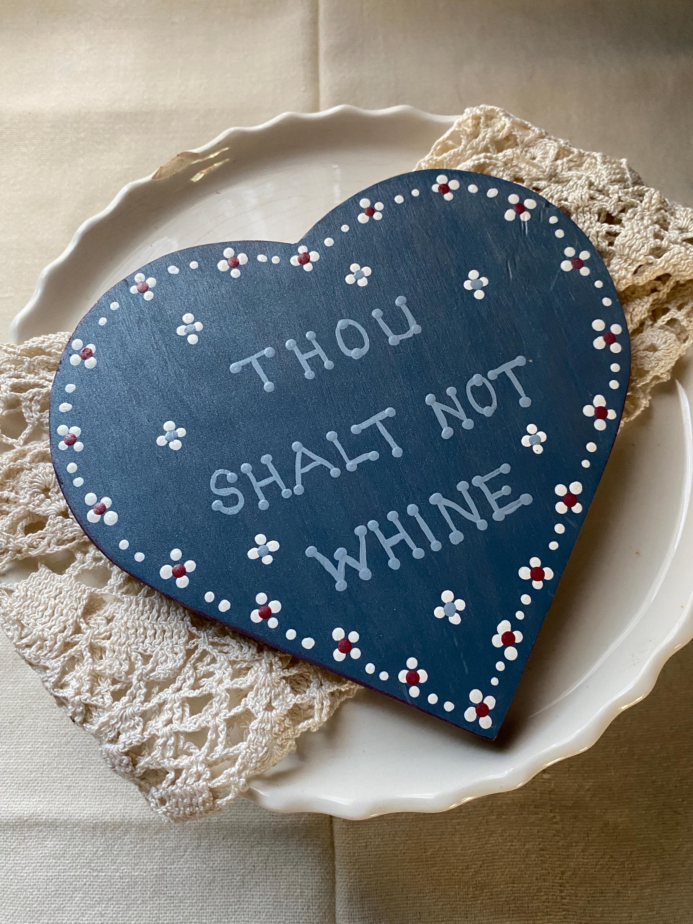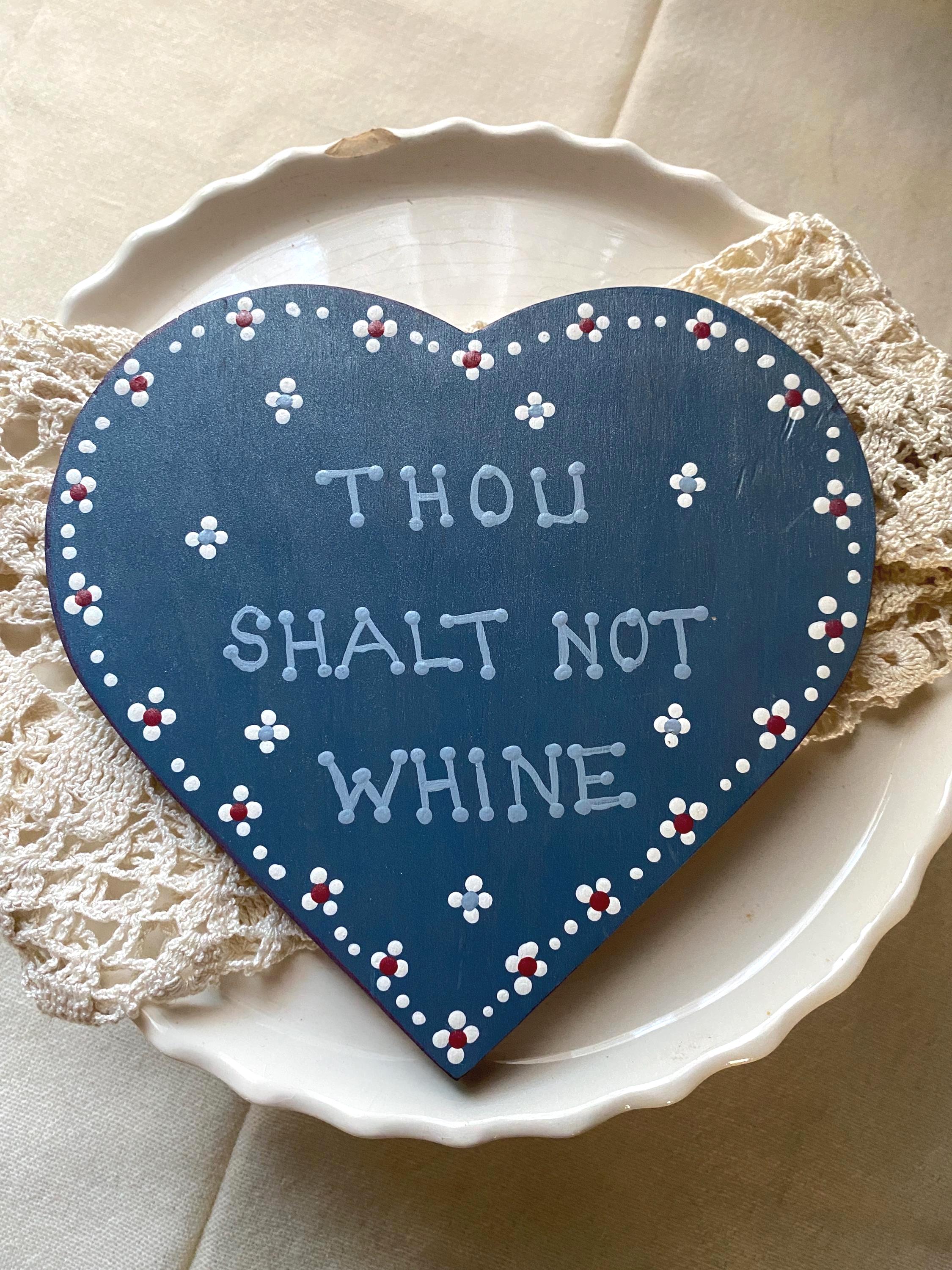 Perfect decor for a home with busy children this funny little sign is a great addition to a kitchen or entryway! Blue with little white flowers and ready to hang. 7X7 inches. A few little dings and scuffs from previous use.
