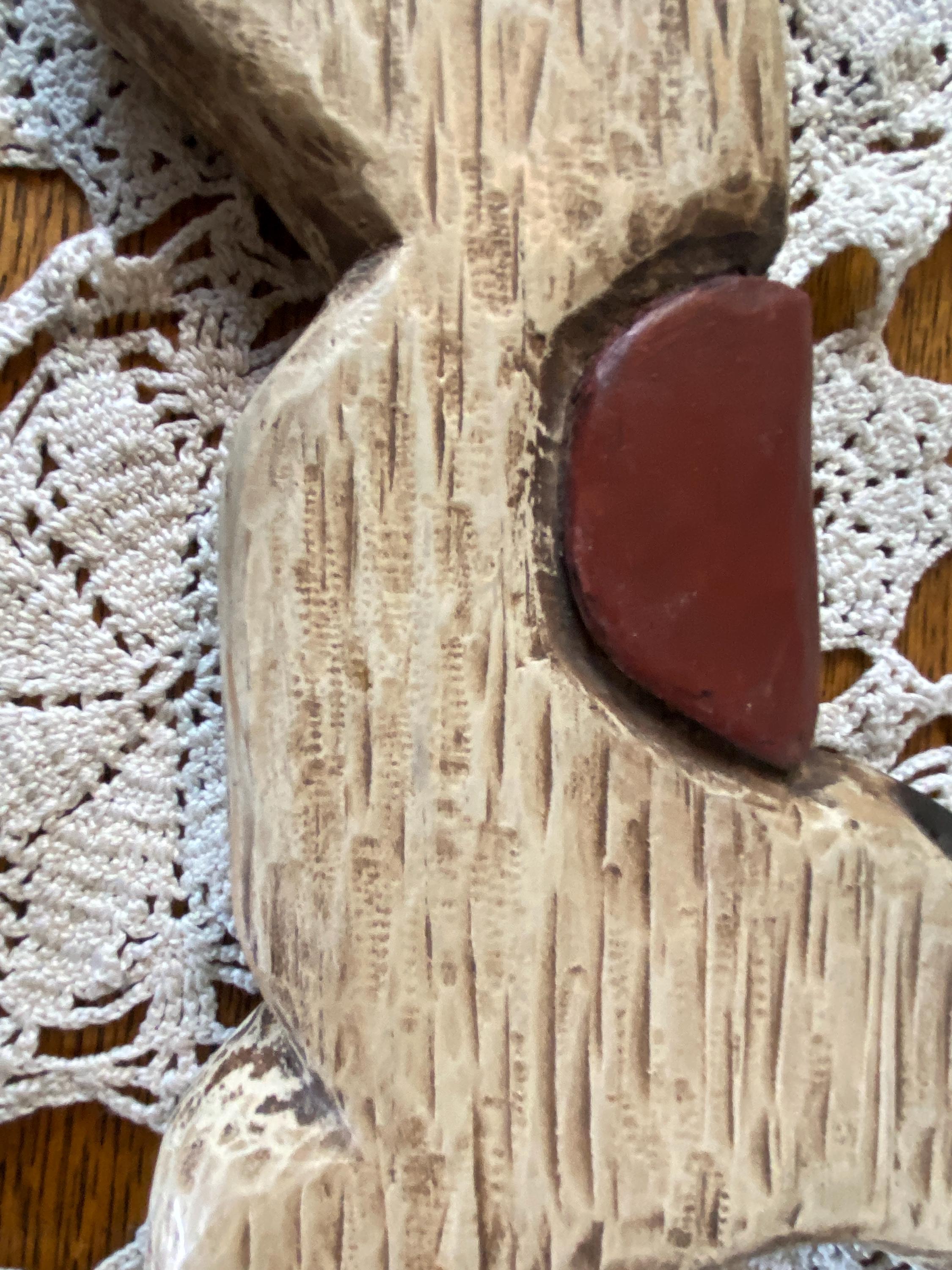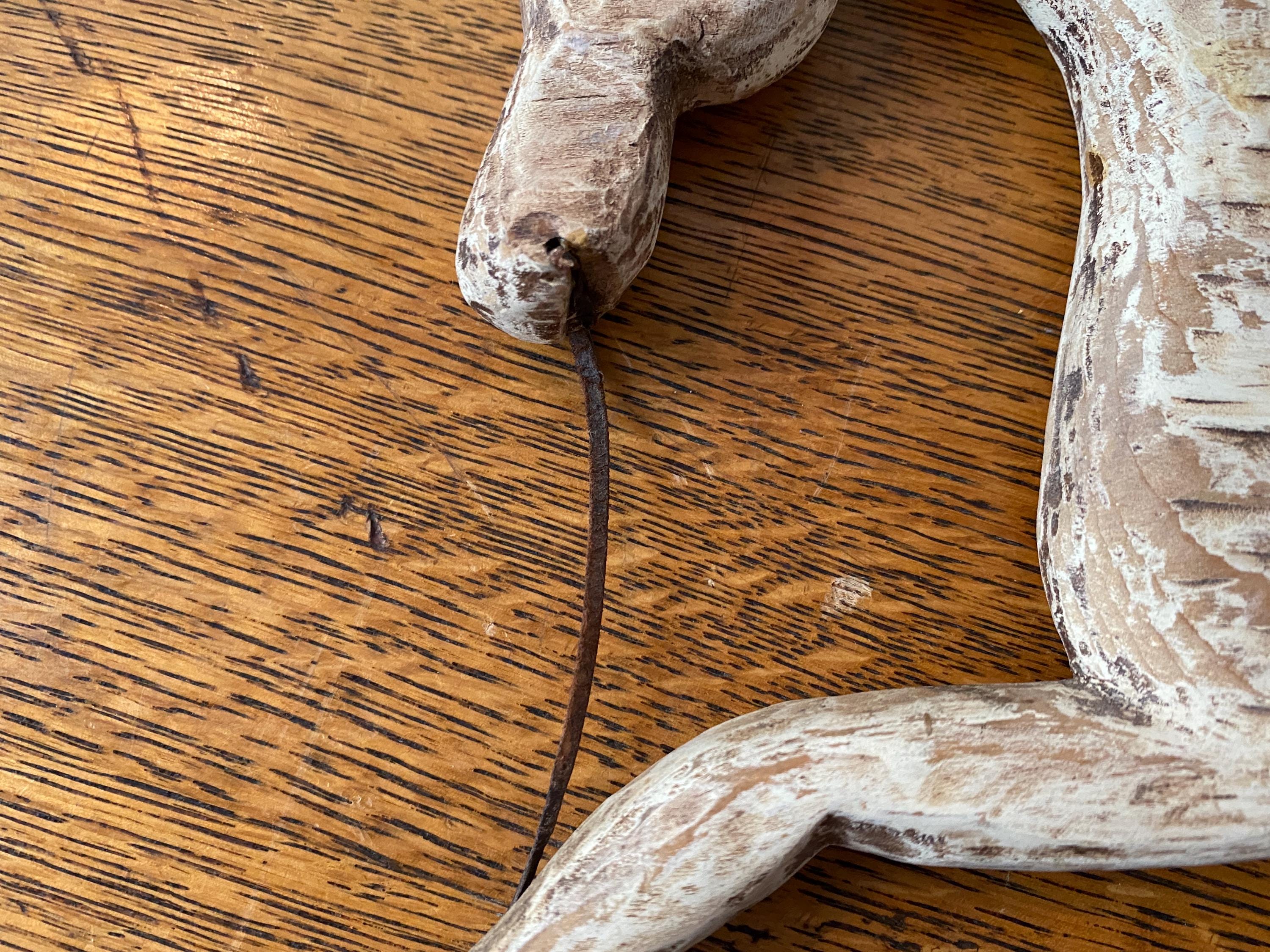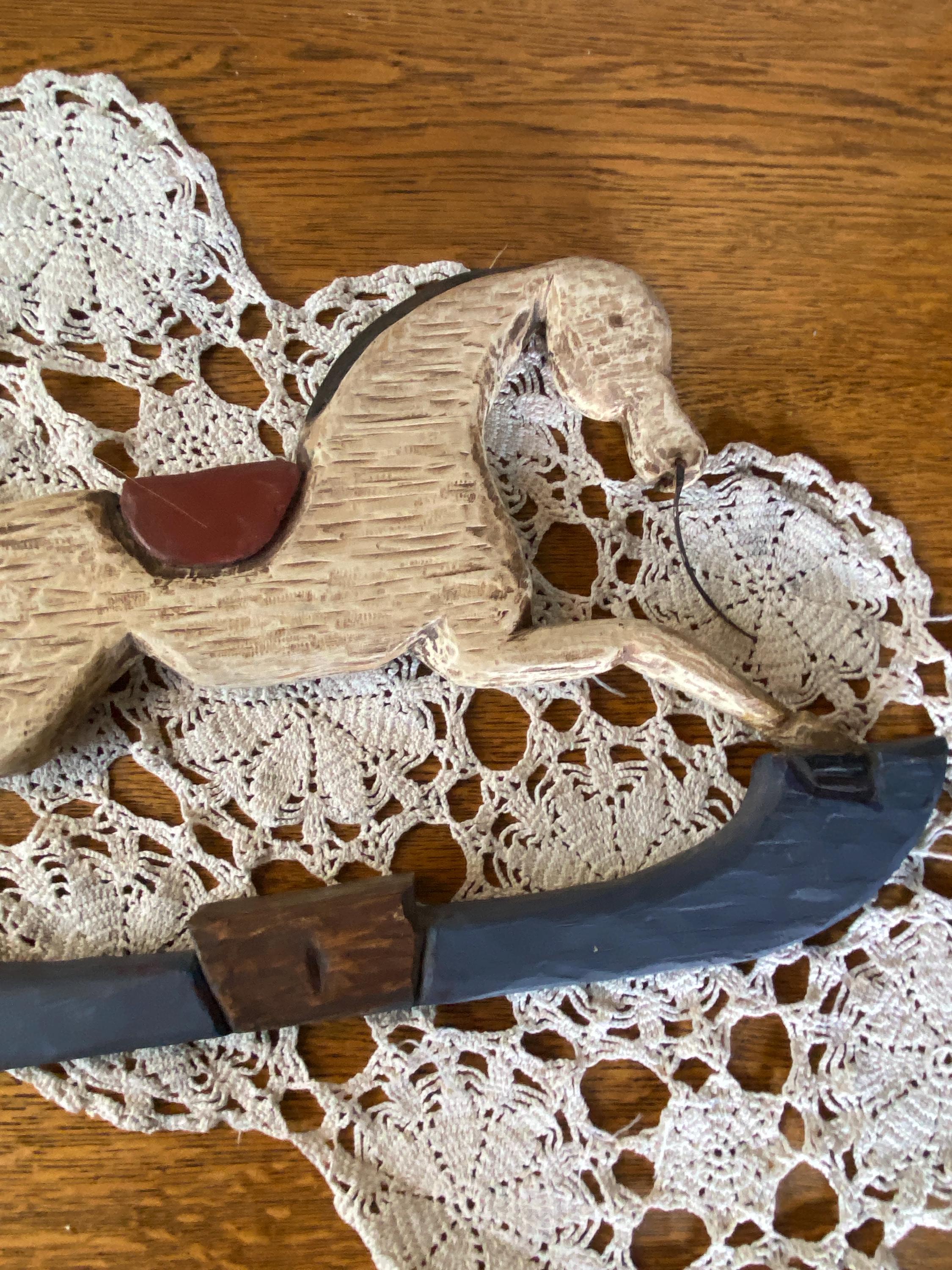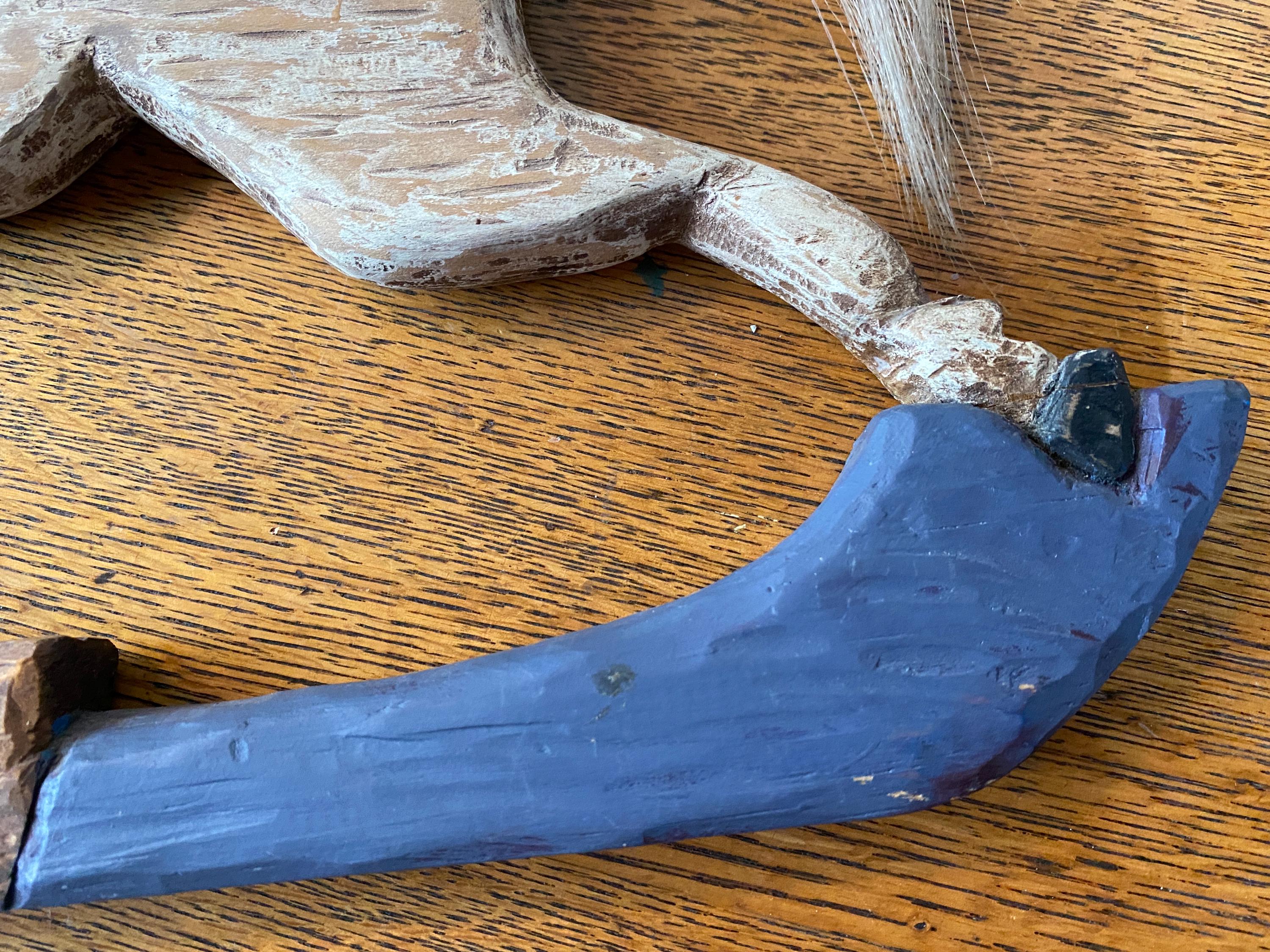 This is a beautiful handmade piece with a real hair mane and leather reins. The primitive style is perfect in a country or farmhouse style home and would make great wall decor in a nursery. Some wear on wood and leather reins have broken. The leather is EXTREMELY fragile and I've used some glue to hold them together. However, care will have to be taken to keep the leather from breaking. 15.5 inches long, 9 inches tall. All items in my shop are vintage or handmade and may have signs of use, wear, or variation consistent with age or hand production. Please review the photos and video carefully and message me with any questions on condition.