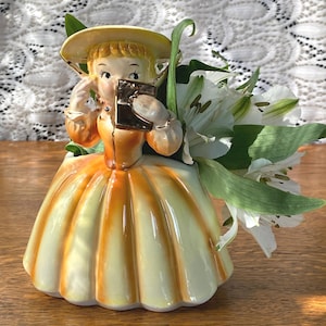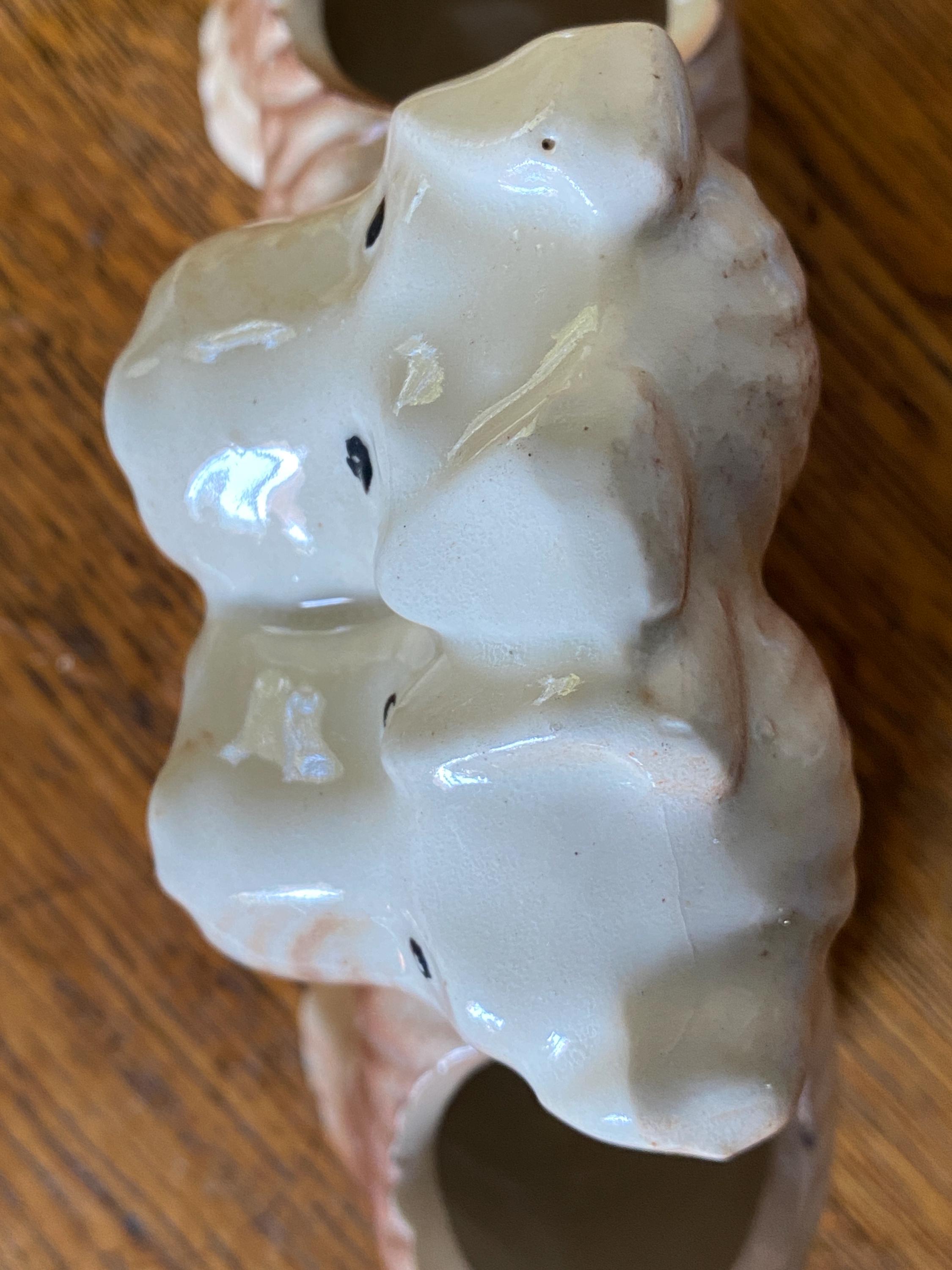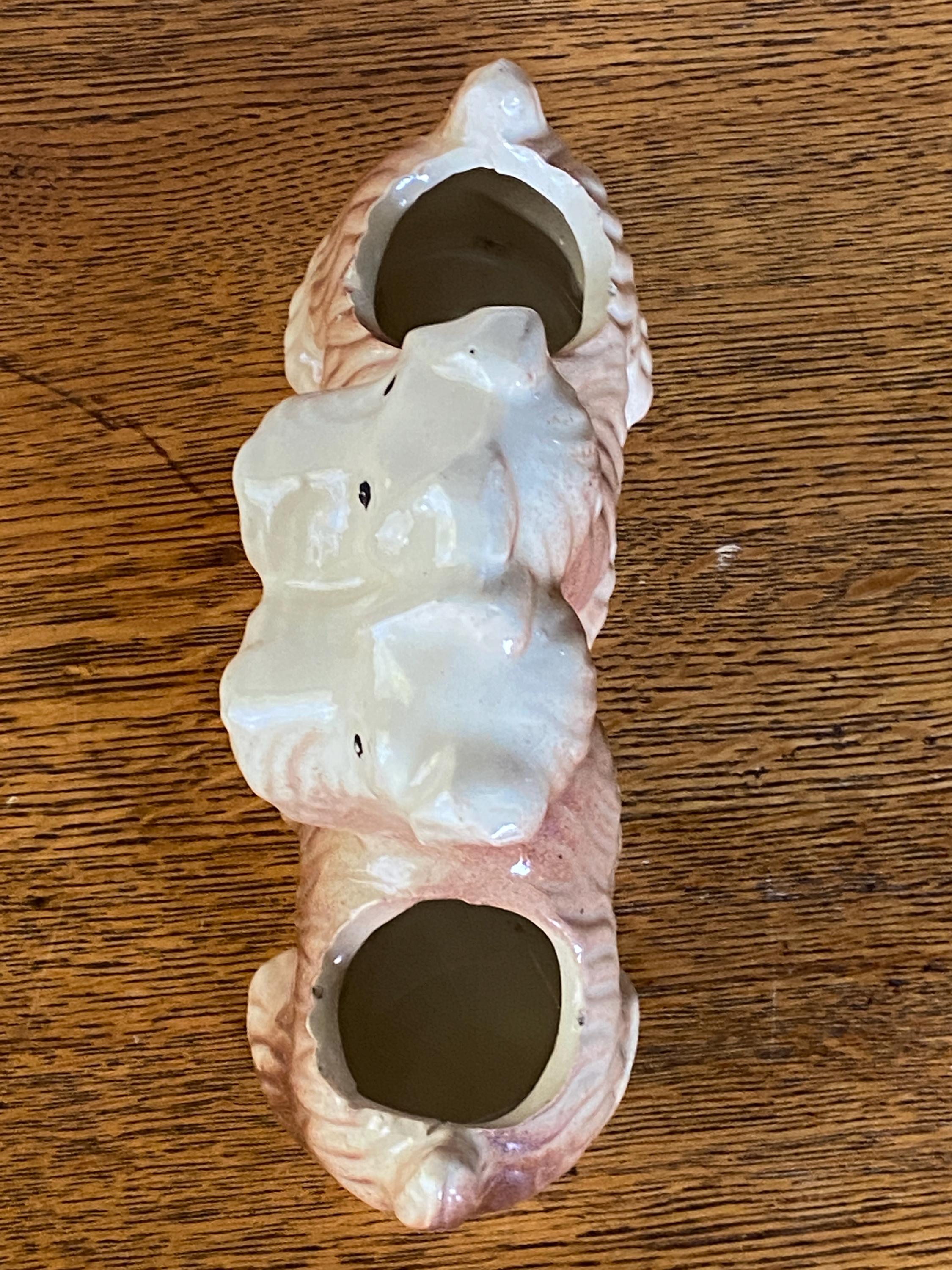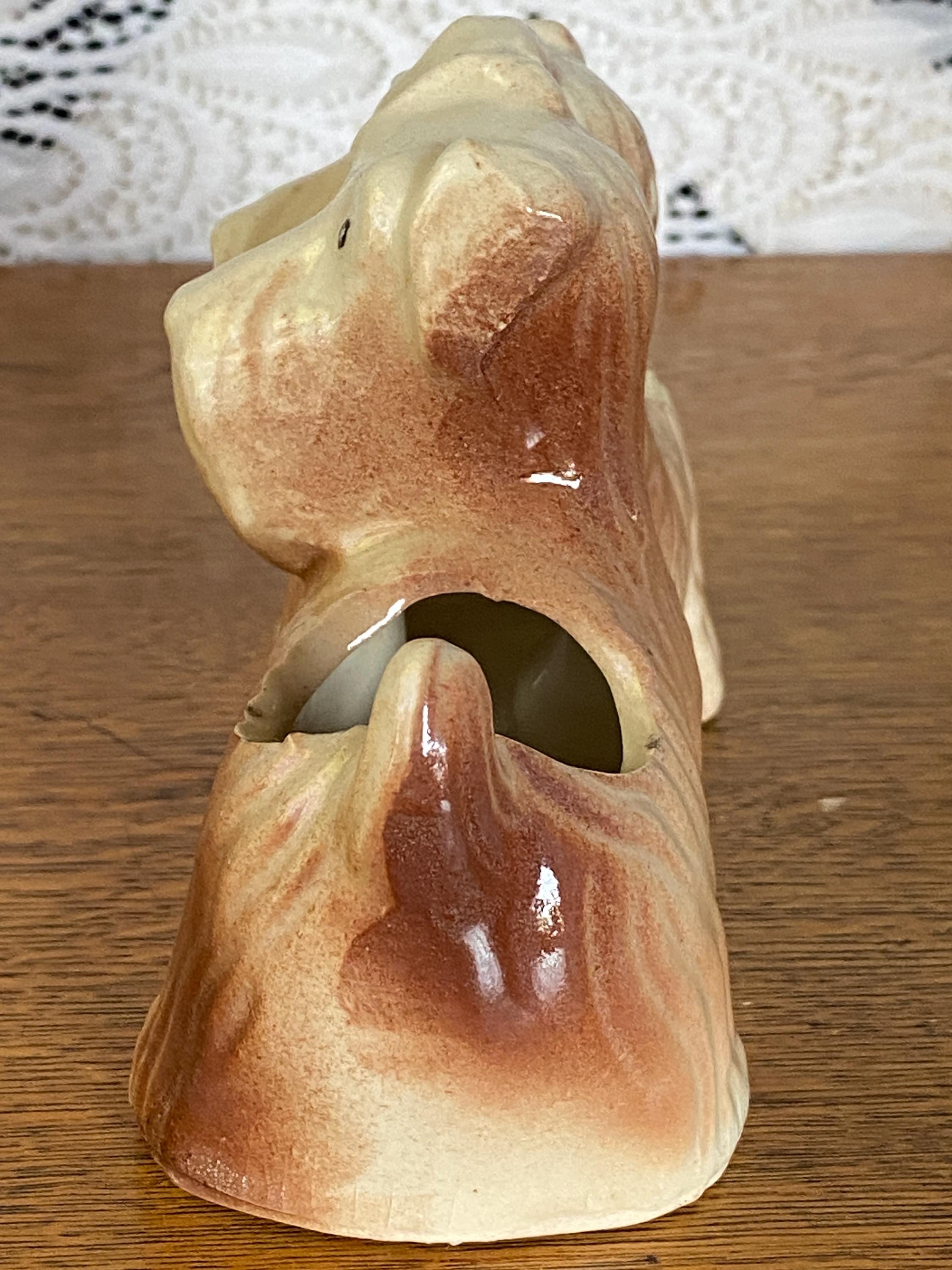 Perfect gift for a scotty dog lover! This vintage ceramic piece has two dogs, each with a little spot for holding a plant or some flowers. ***This piece has been well-loved and has chips, crazing, and a small crack on the bottom middle. Priced accordingly*** 7.5X2X4.5 inches