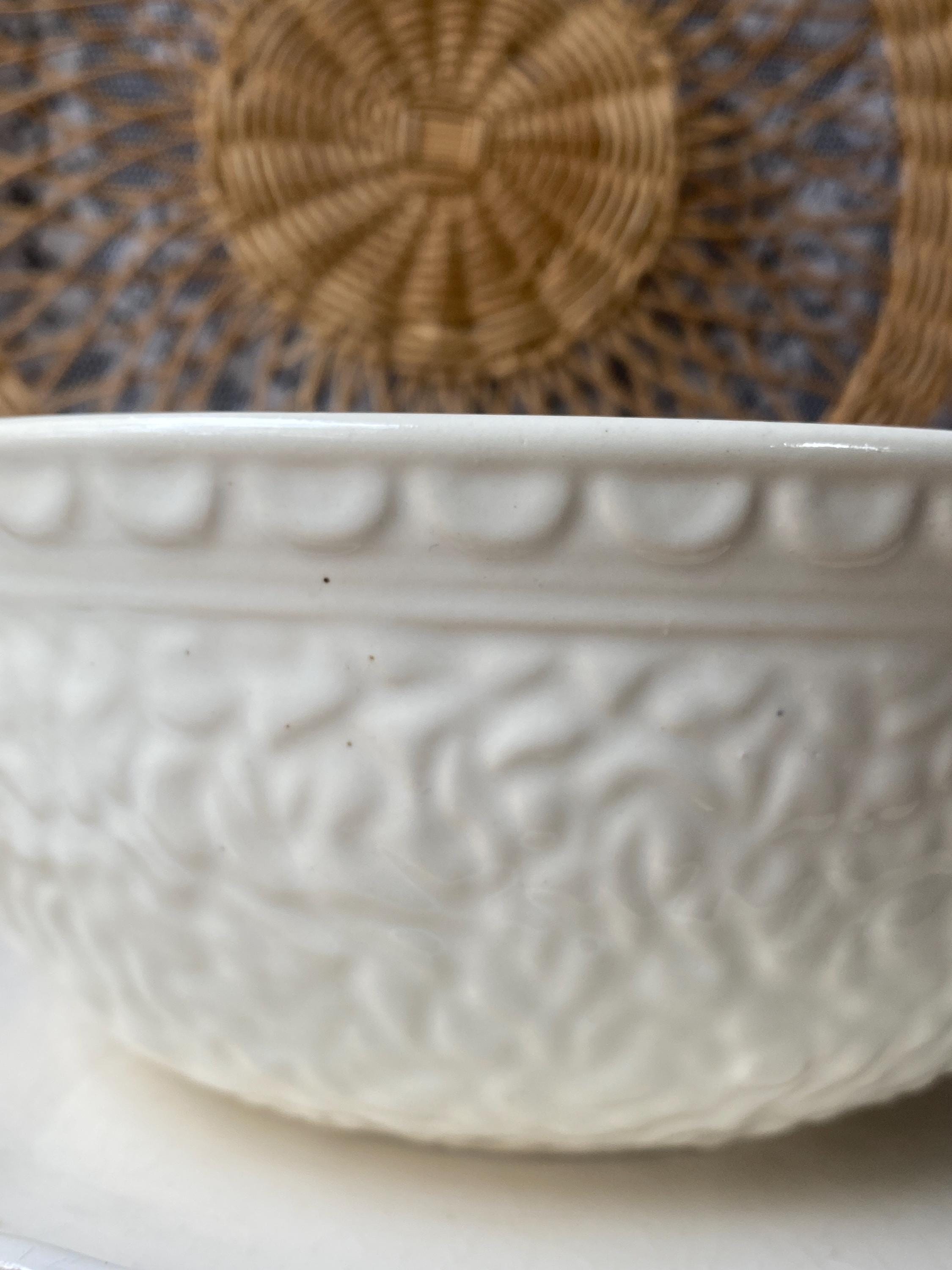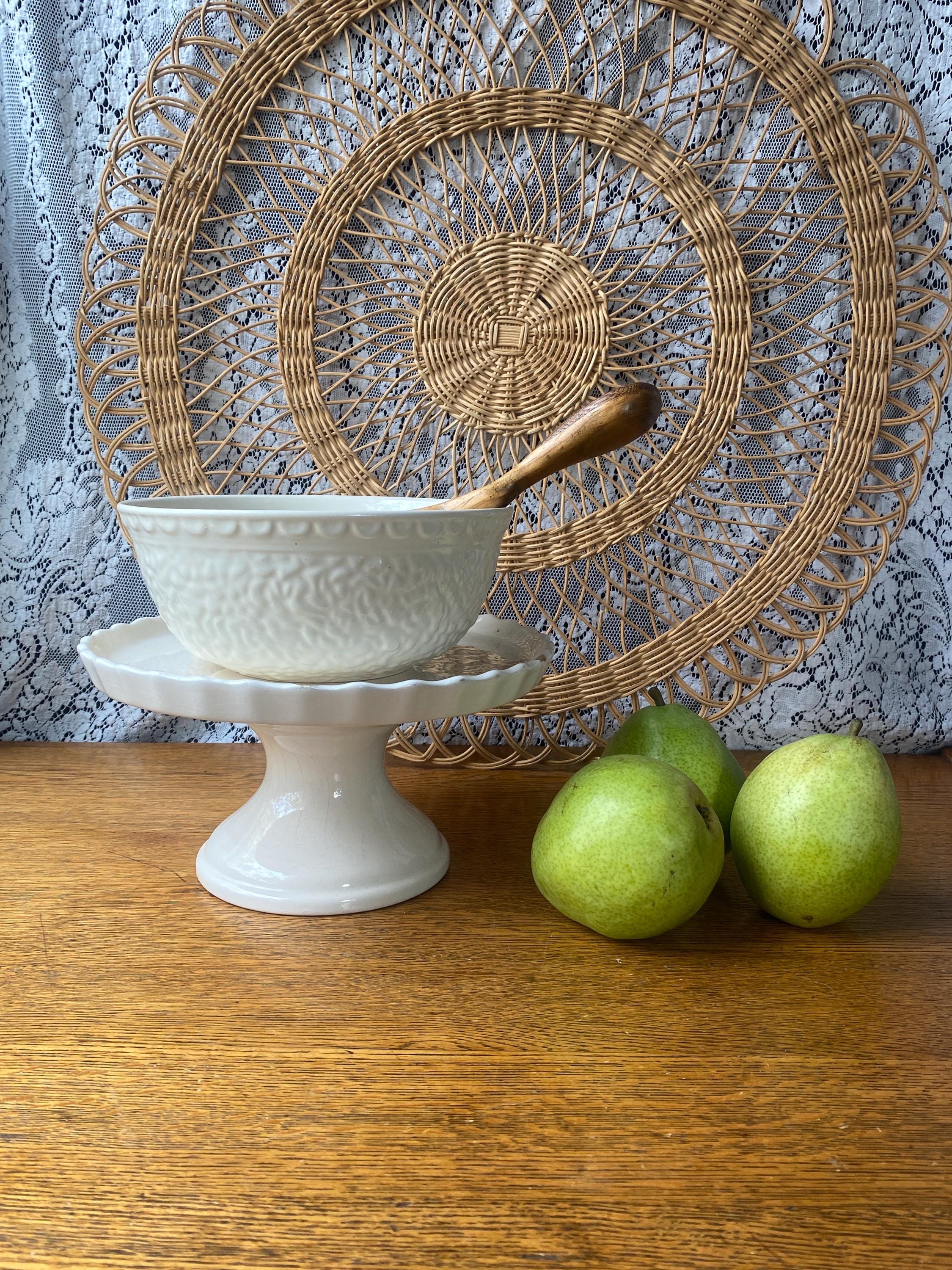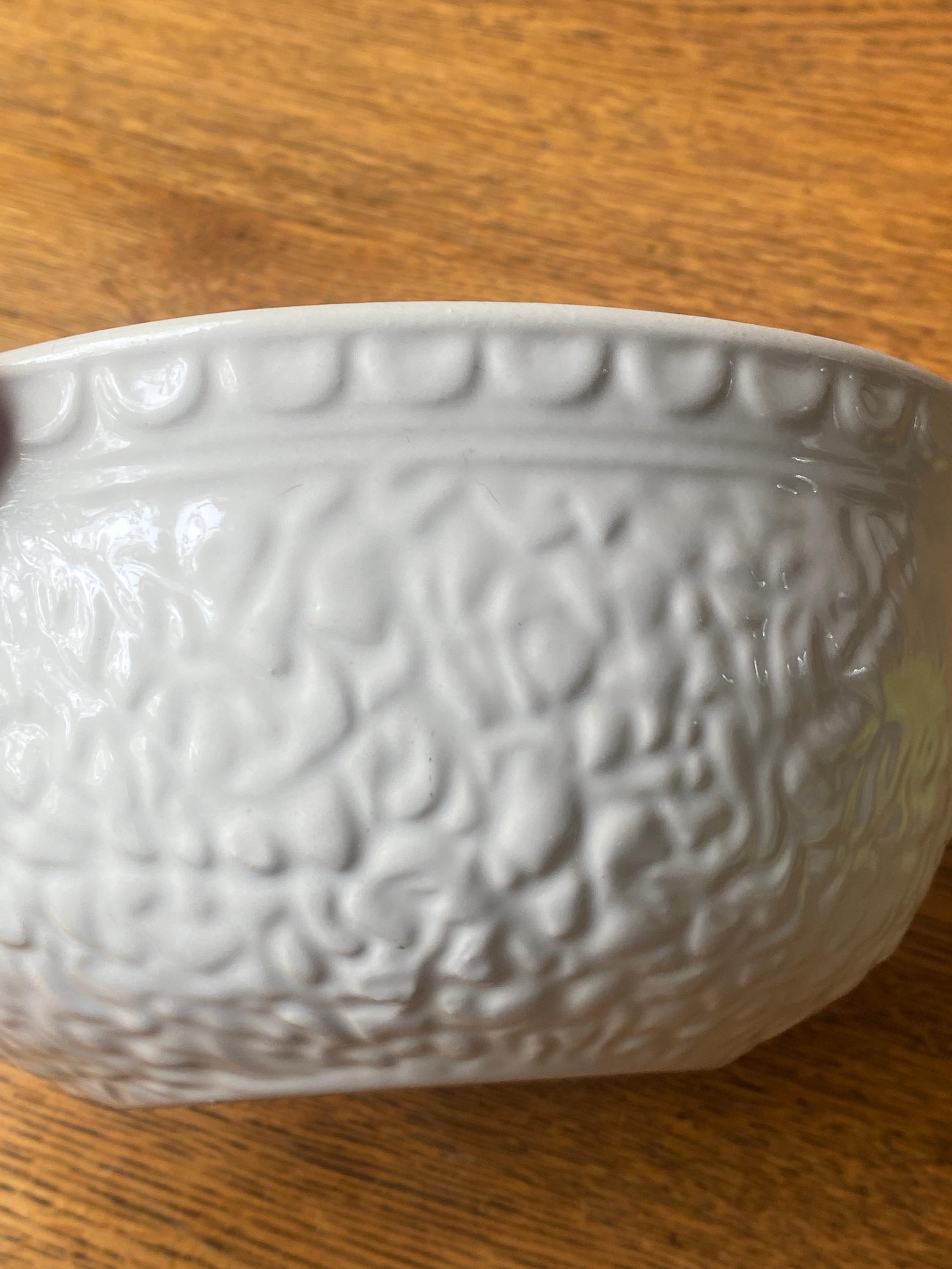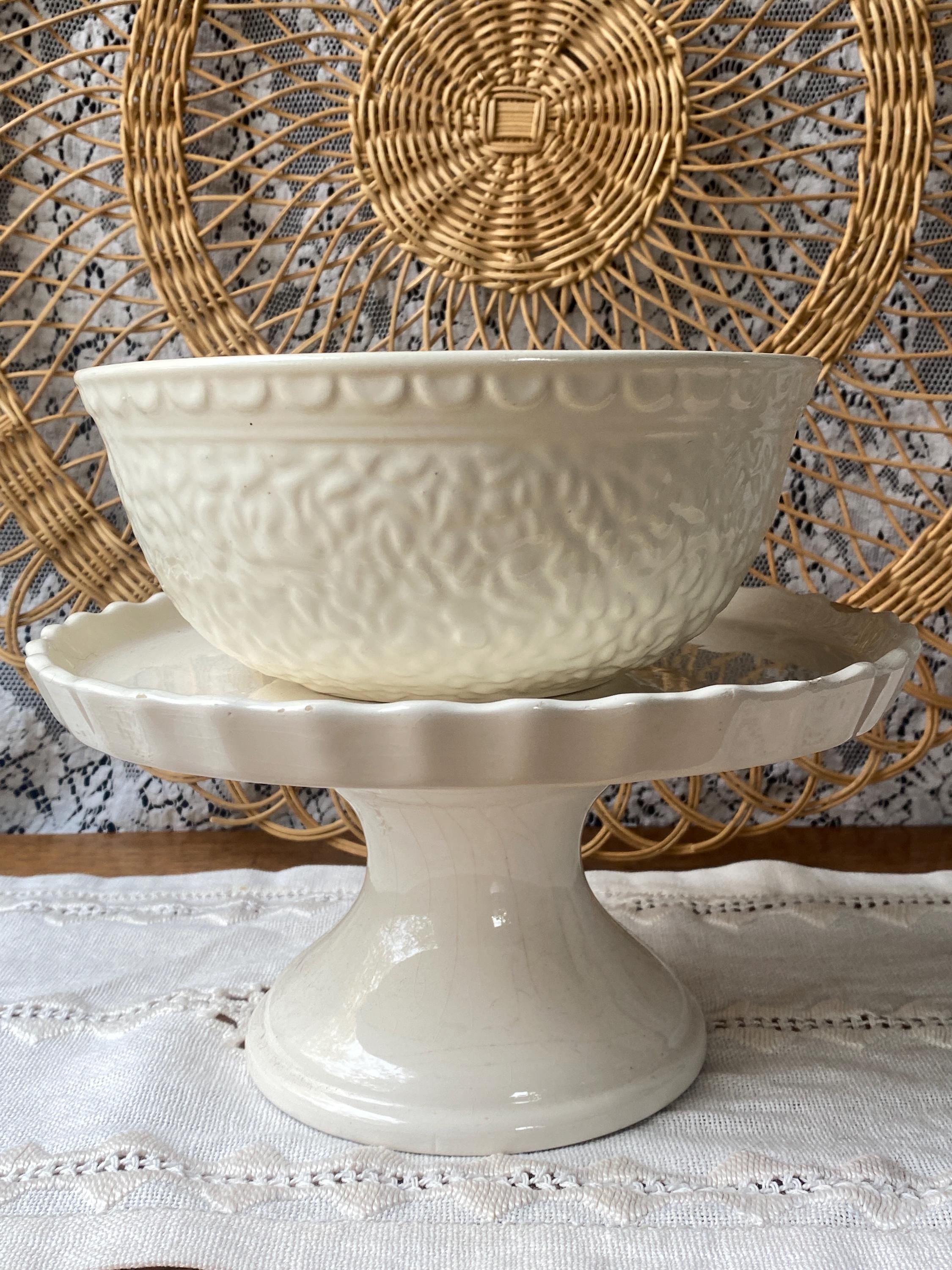 Vintage mid-century mixing or serving bowl, 7.5 inches across top, 3 inches tall. Beautiful filled with fruit and perfect in a farm or country style kitchen. All items in my shop are vintage or handmade and may have signs of use, wear, or variation consistent with age or hand production. Please review the photos and video carefully and message me with any questions on condition.