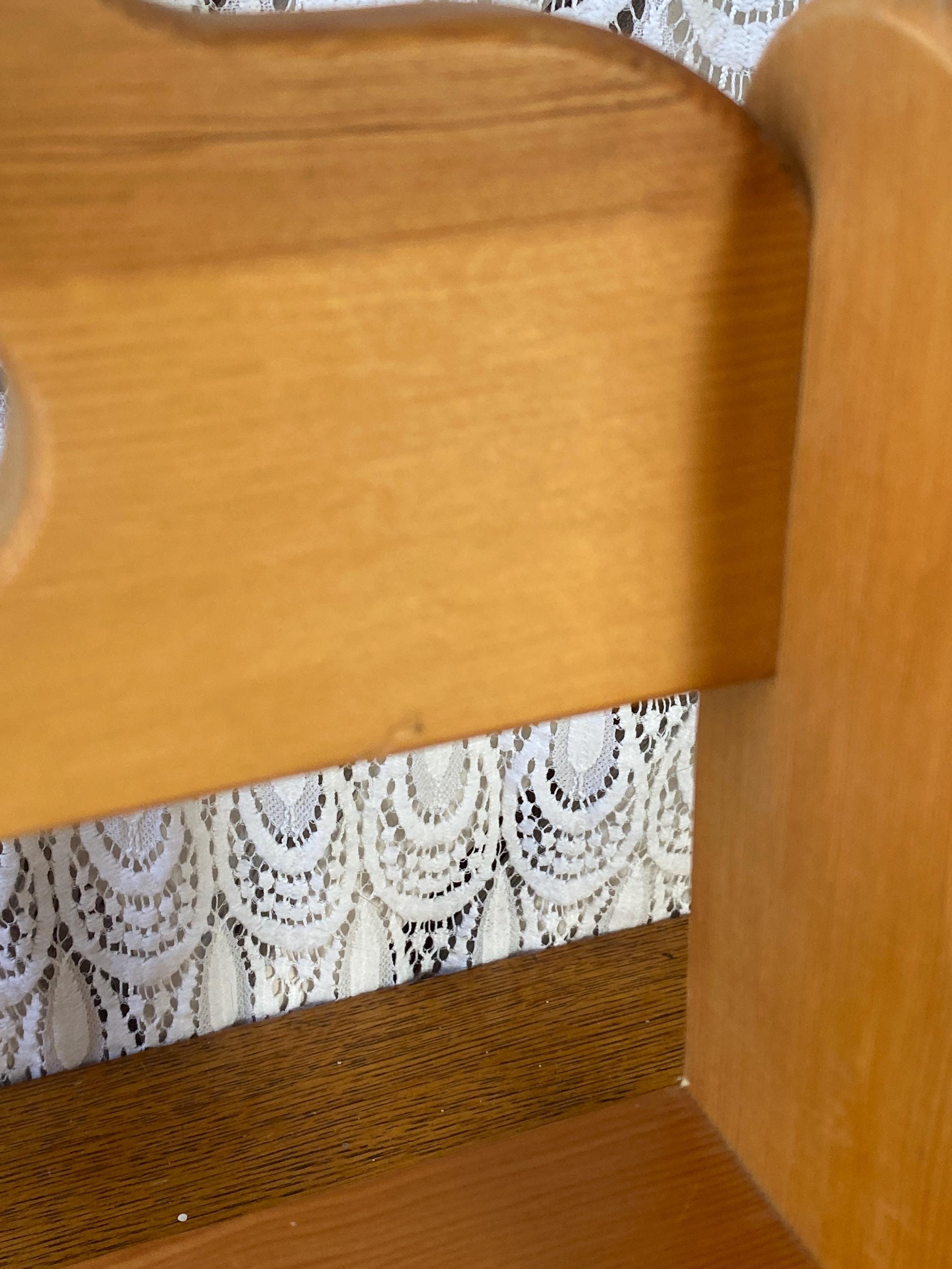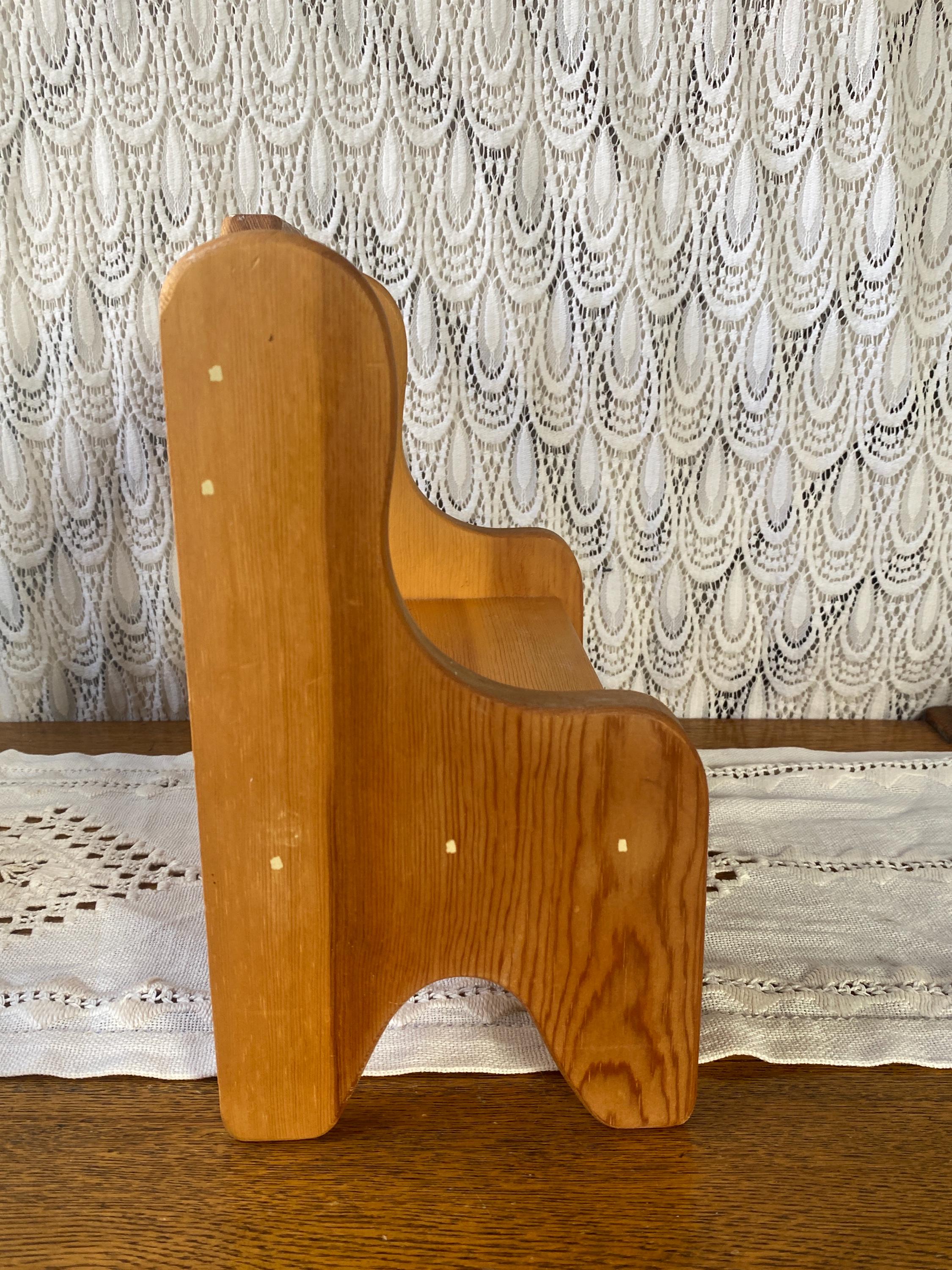 10.5X10X5.5 inches. Cute little rustic style piece perfect for plants, dolls, or for a counter or table top shelf. Some minor wear/ scratches/ dings consistent with age and previous use. All items in my shop are vintage or handmade and may have signs of use, wear, or variation consistent with age or hand production. Please review the photos and video carefully and message me with any questions on condition.