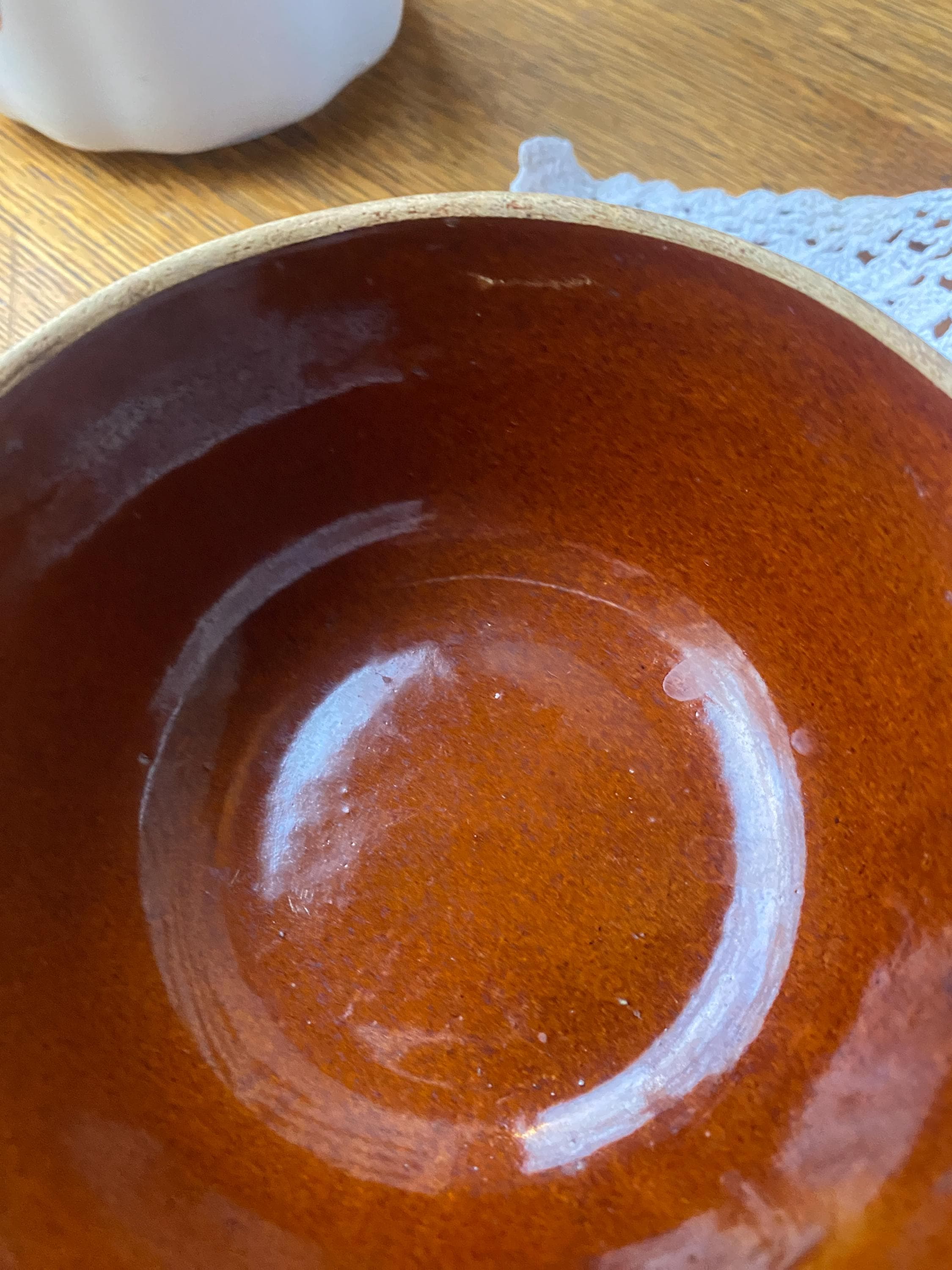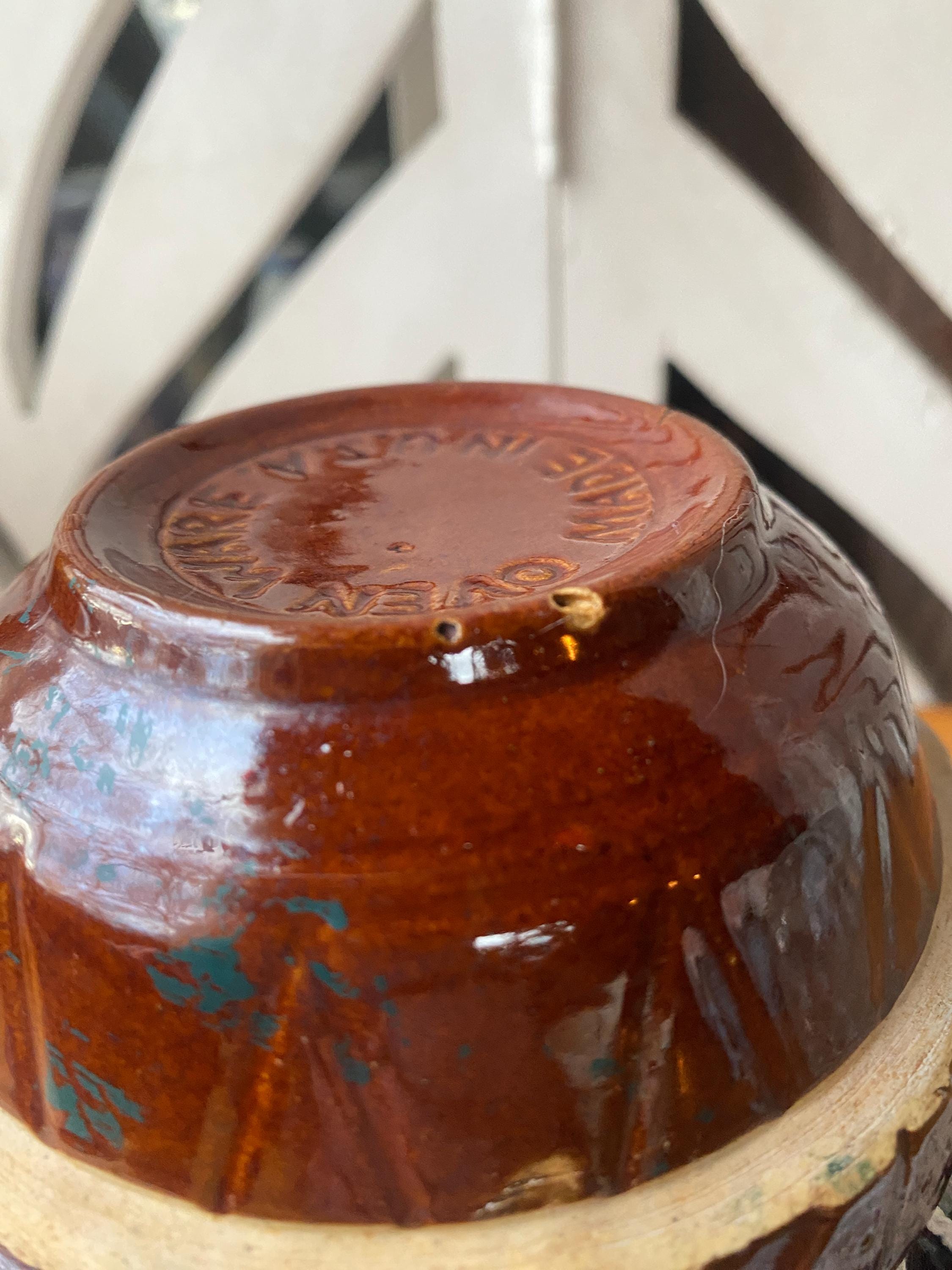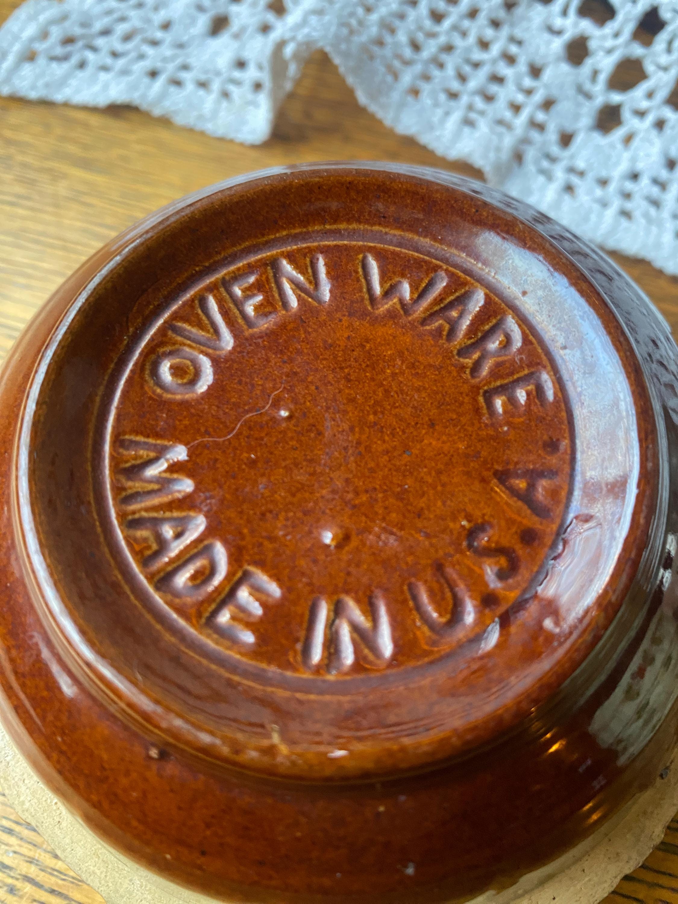 4.5X2 inches, brown ovenware. Great vintage kitchen decor and perfect for serving small foods, nuts, and candy. Some signs of age and use/ see photos for examples. All items in my shop are vintage or handmade and may have signs of use, wear, or variation consistent with age or hand production. Please review the photos and video carefully and message me with any questions on condition.