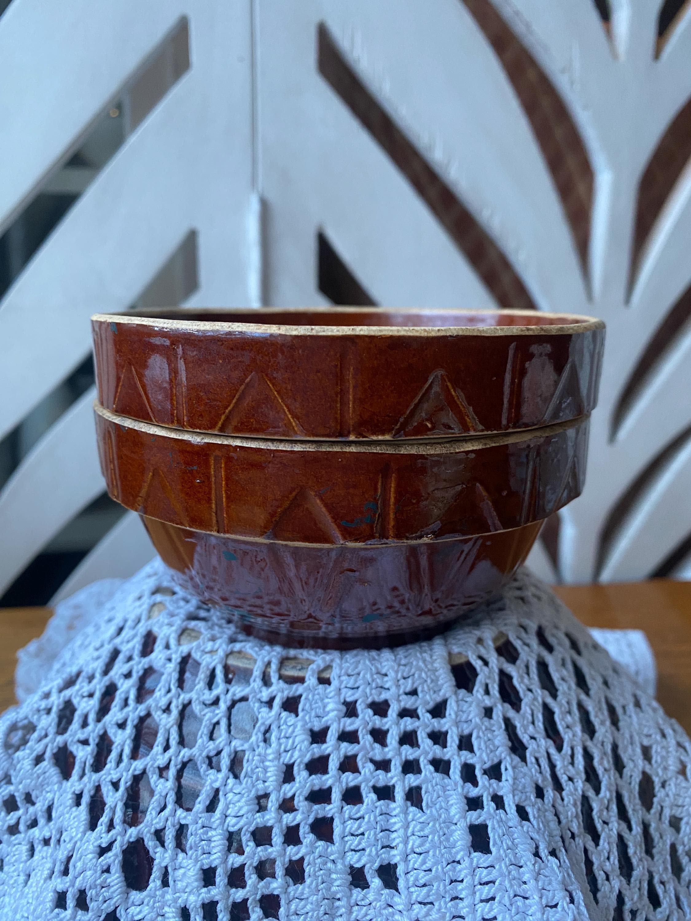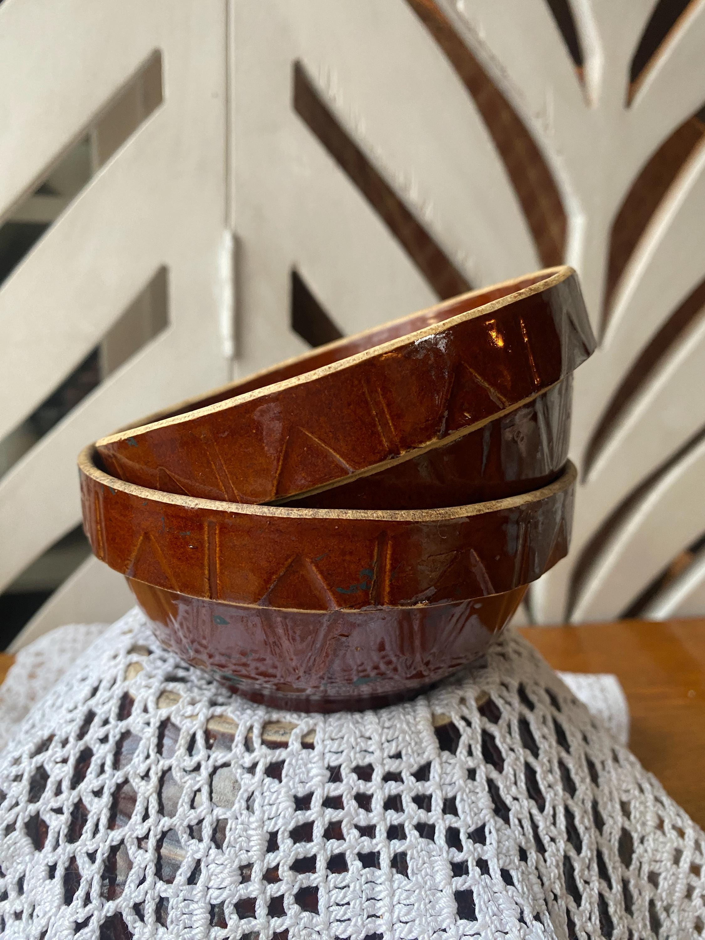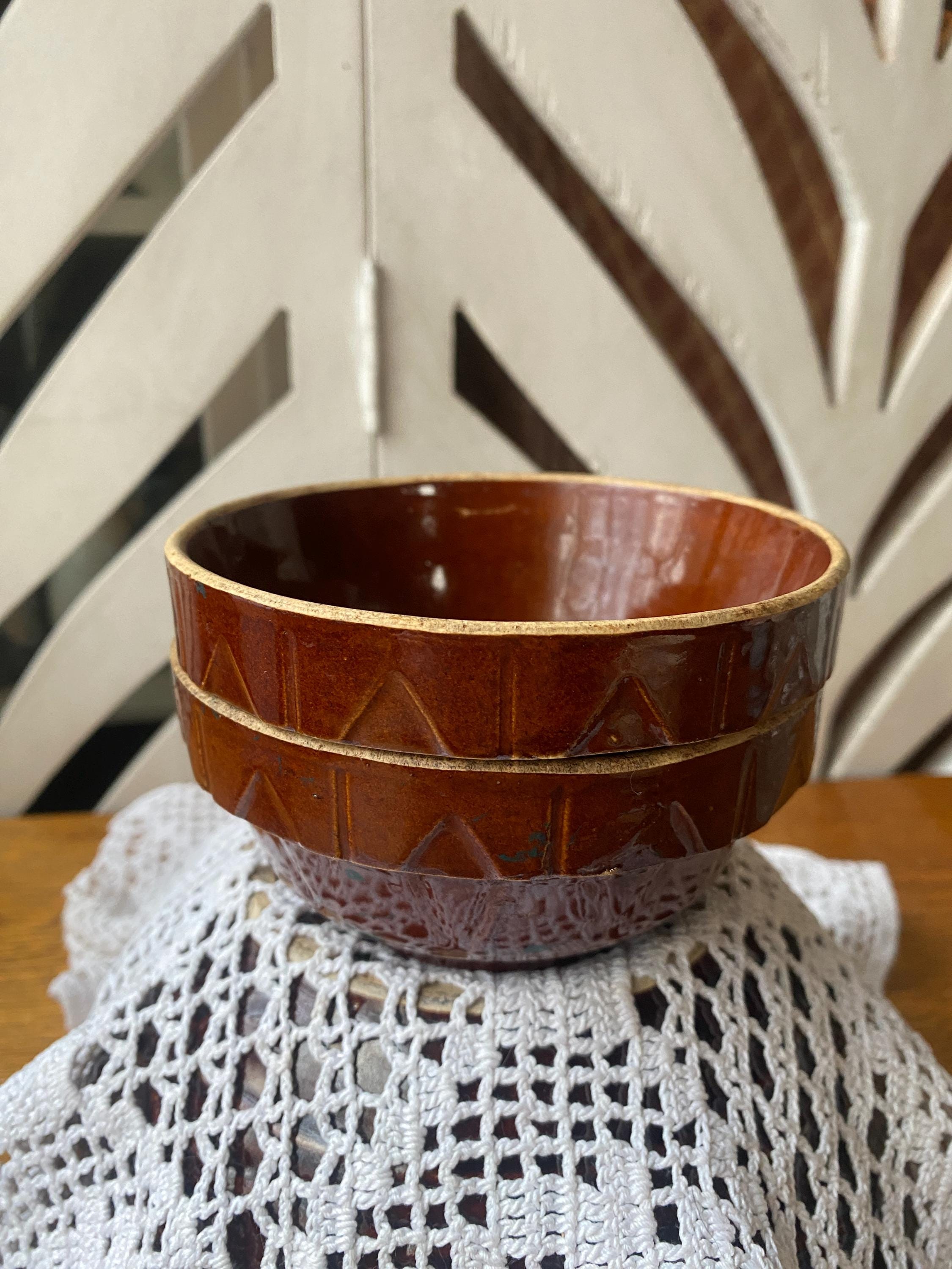 4.5X2 inches, brown ovenware. Great vintage kitchen decor and perfect for serving small foods, nuts, and candy. Some signs of age and use/ see photos for examples. All items in my shop are vintage or handmade and may have signs of use, wear, or variation consistent with age or hand production. Please review the photos and video carefully and message me with any questions on condition.