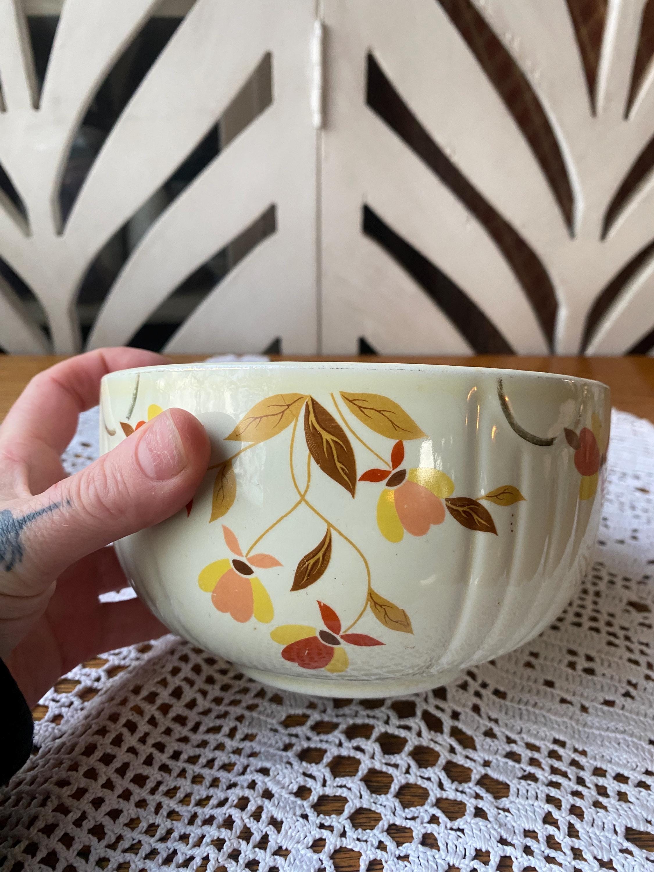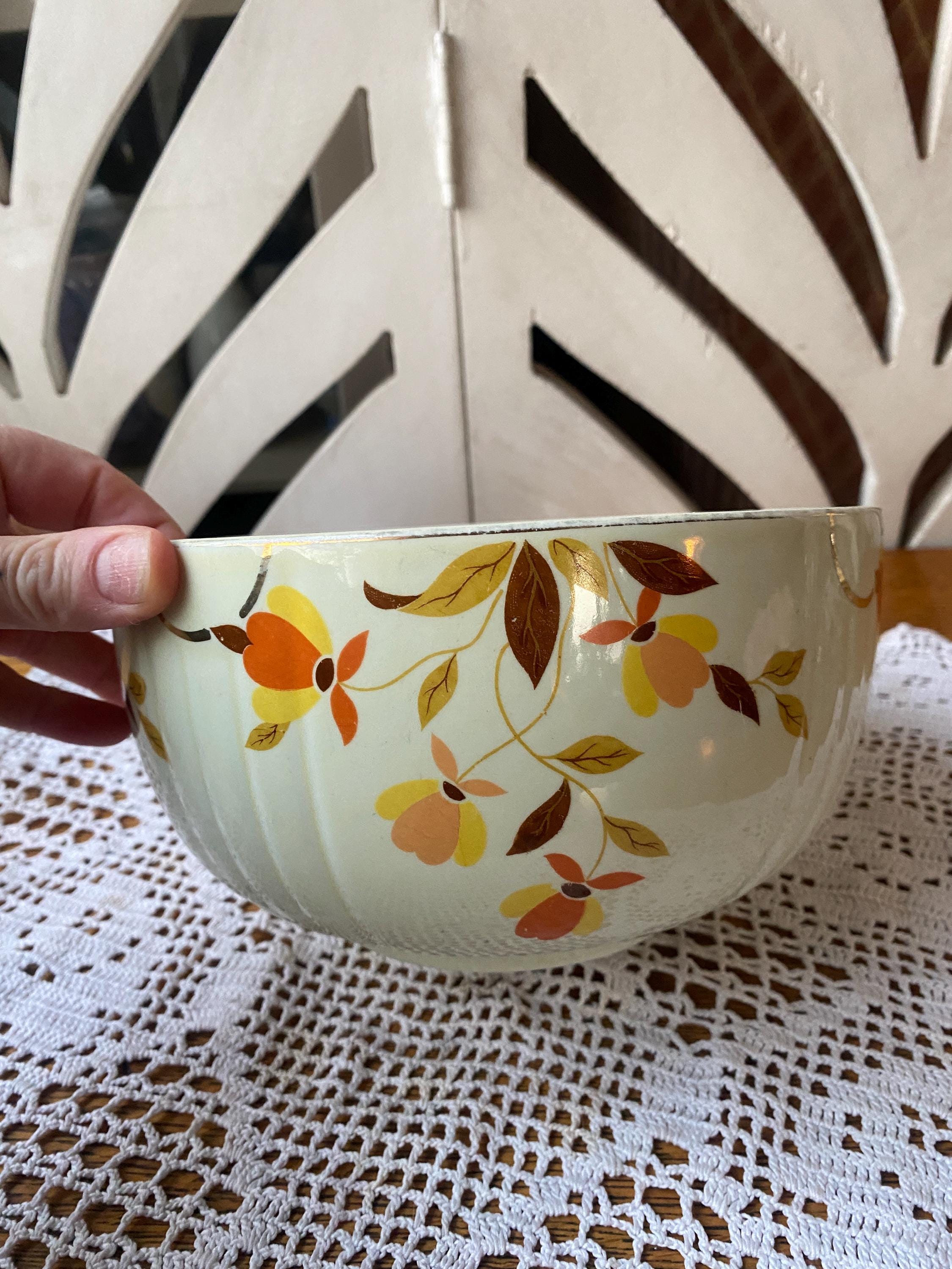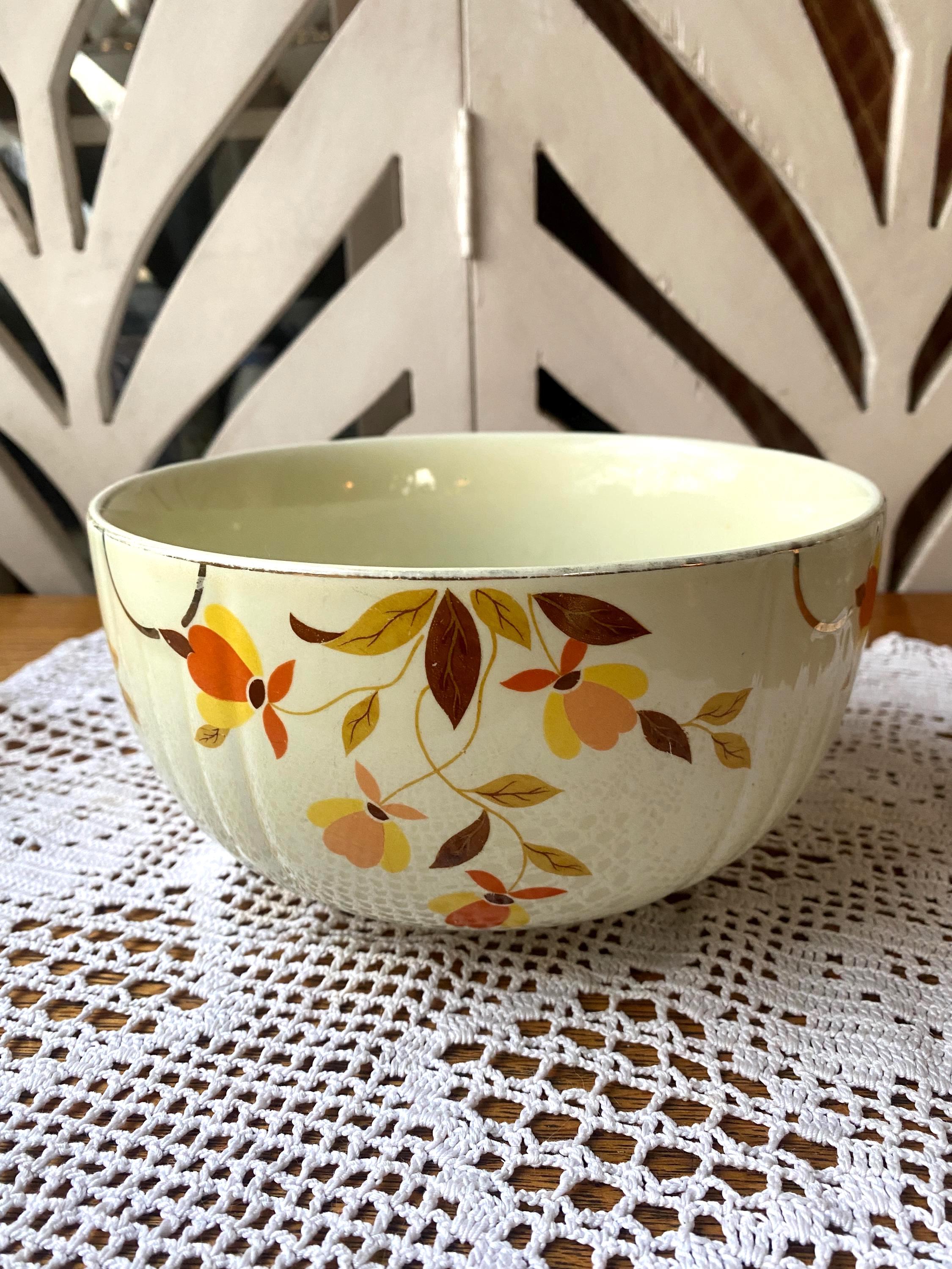 Classic, sturdy piece scattered with earth tone leaves. 6X3.5 inches. Some wear on pattern. rubbing etc as shown in photos. All items in my shop are vintage or handmade and may have signs of use, wear, or variation consistent with age or hand production. Please review the photos and video carefully and message me with any questions on condition.