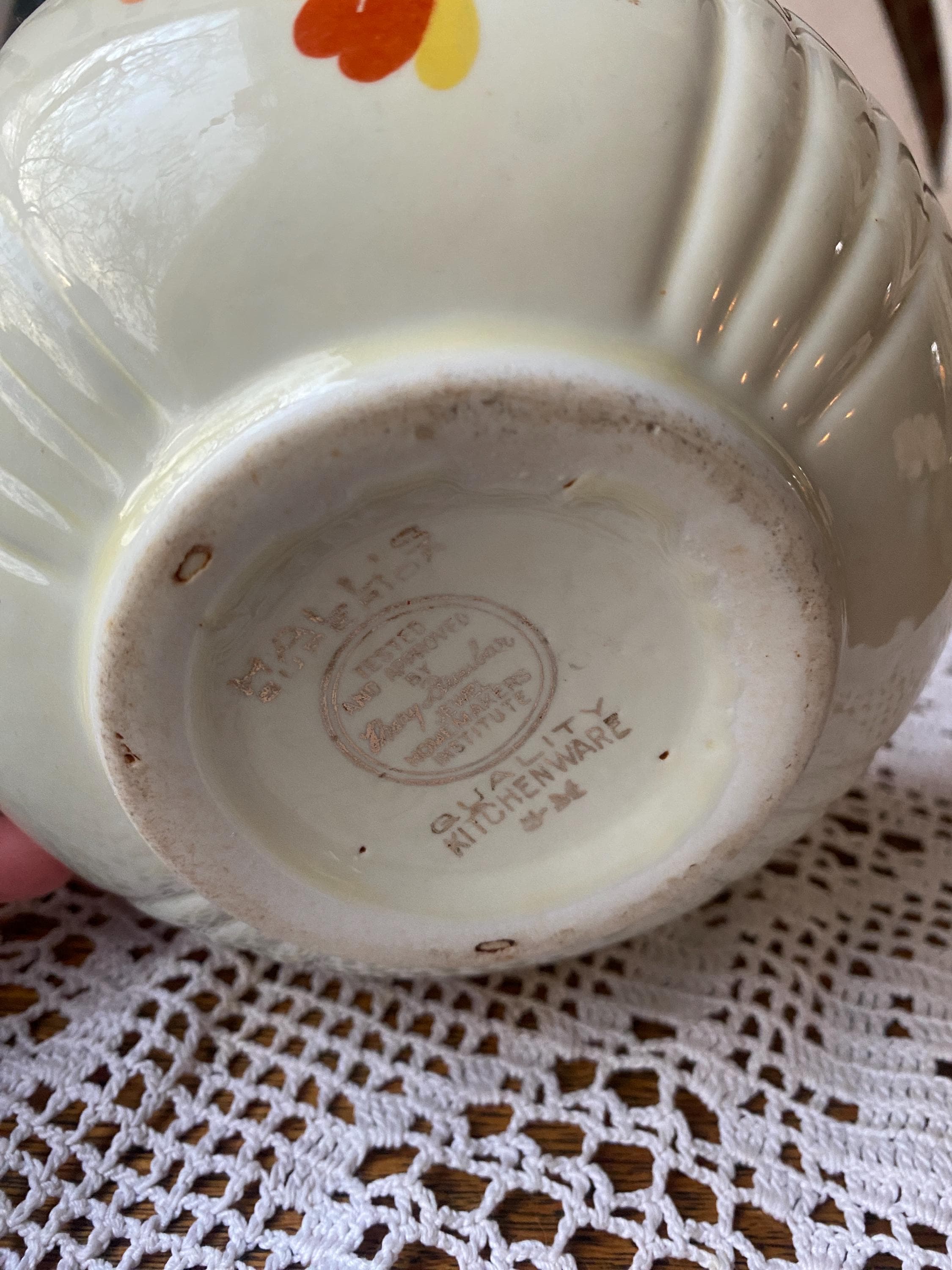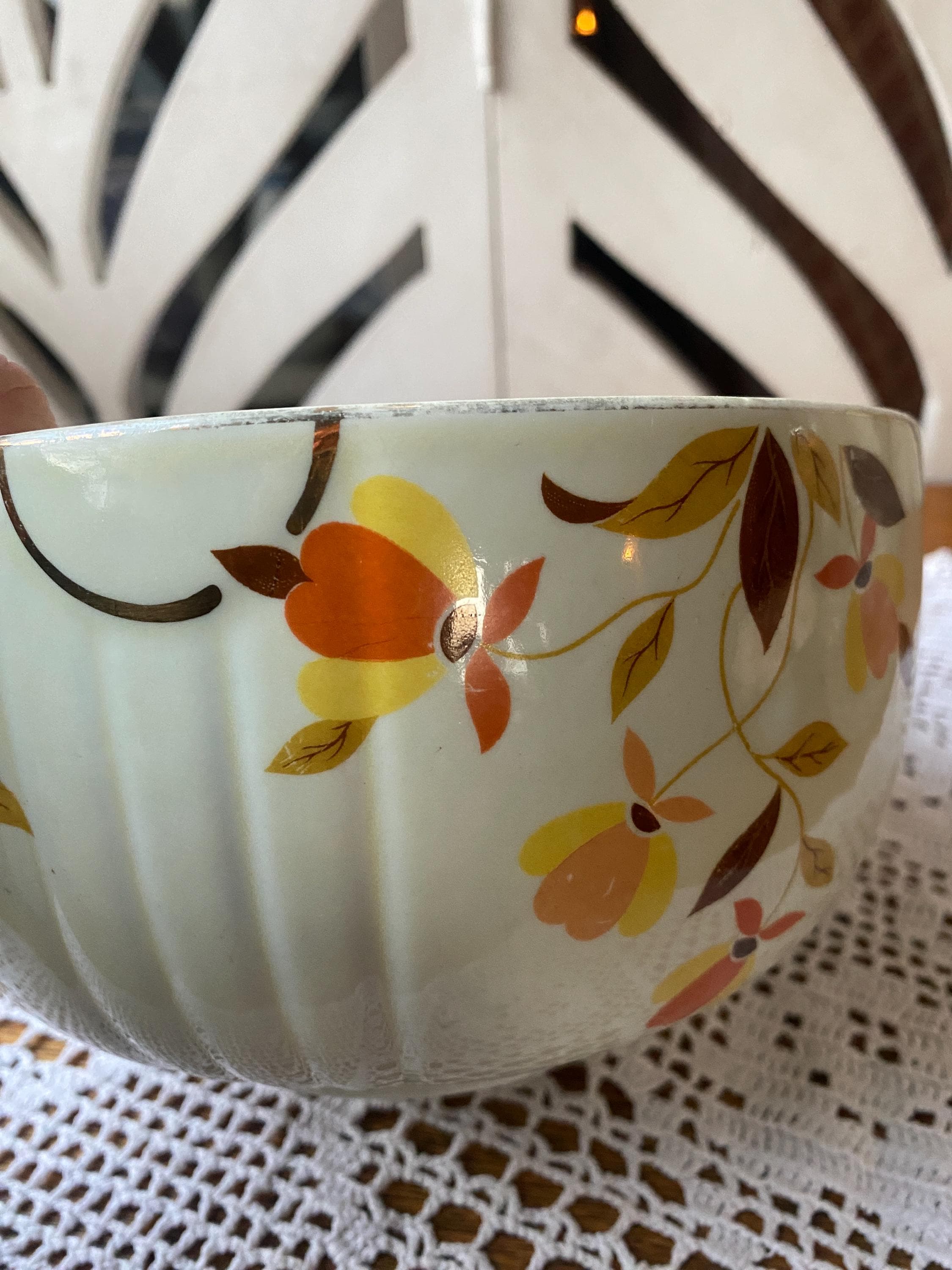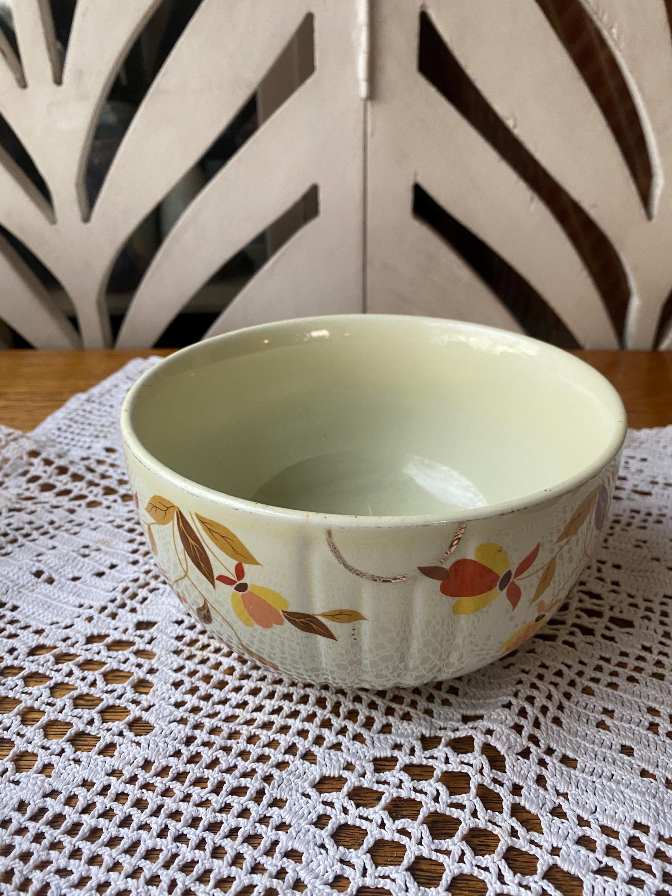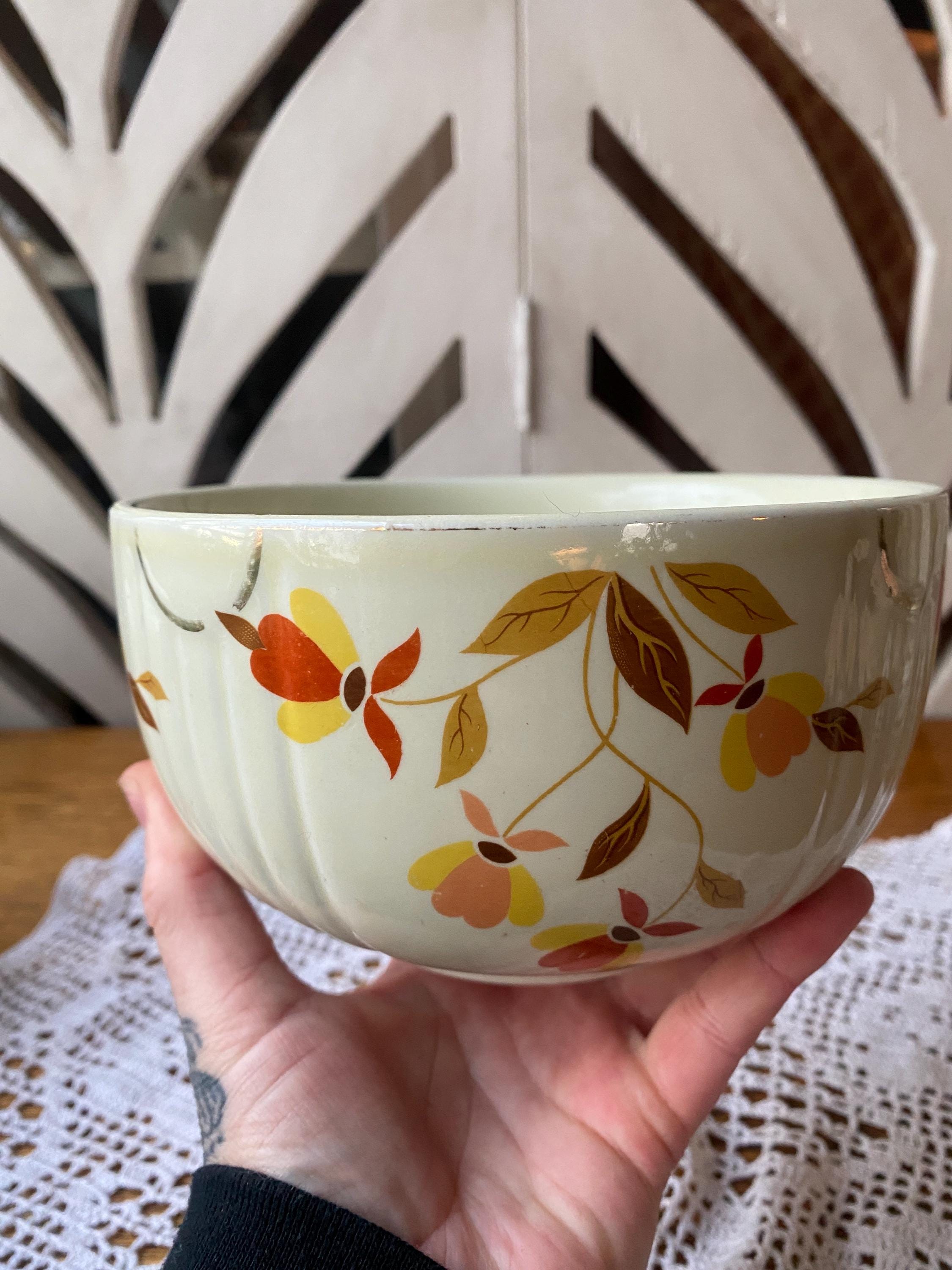 Classic, sturdy piece scattered with earth tone leaves. 6X3.5 inches. Some wear on pattern. rubbing etc as shown in photos. All items in my shop are vintage or handmade and may have signs of use, wear, or variation consistent with age or hand production. Please review the photos and video carefully and message me with any questions on condition.