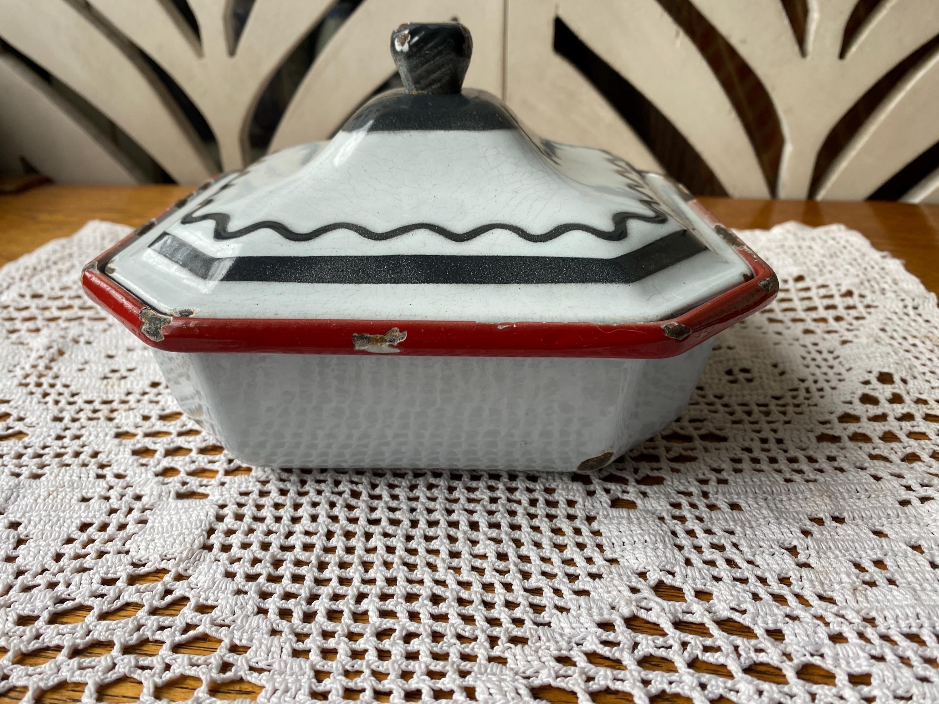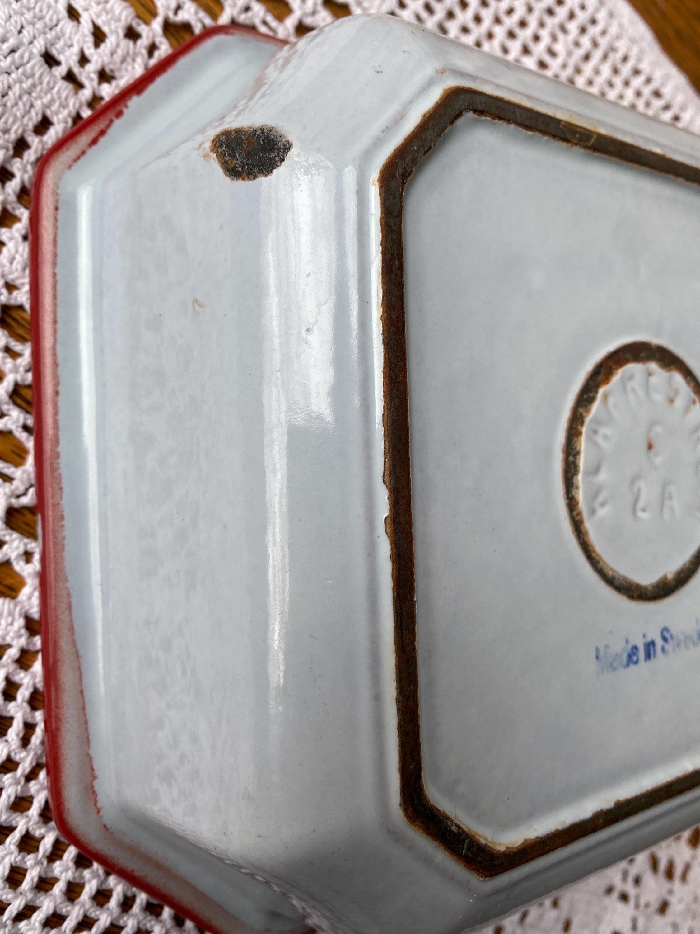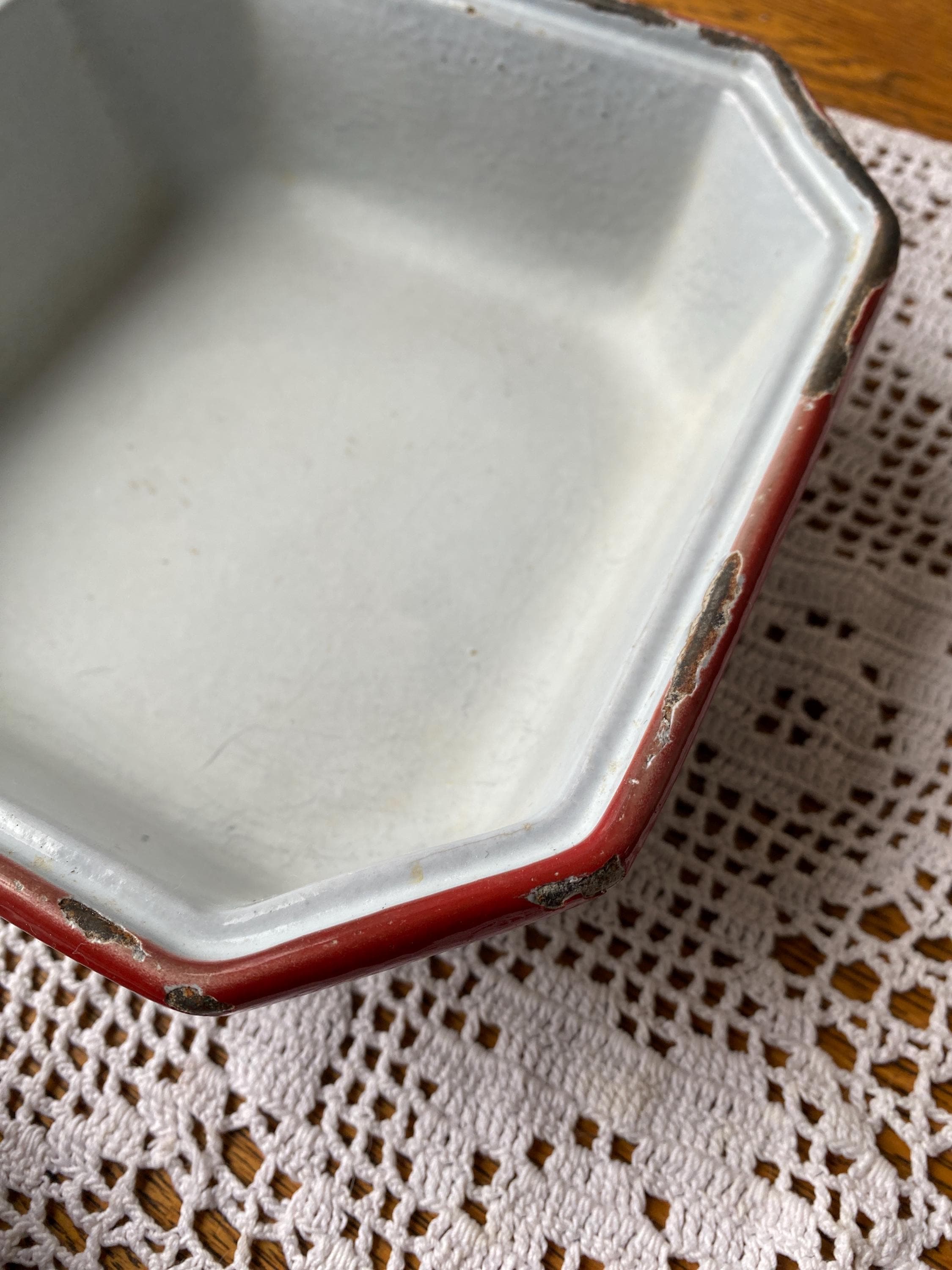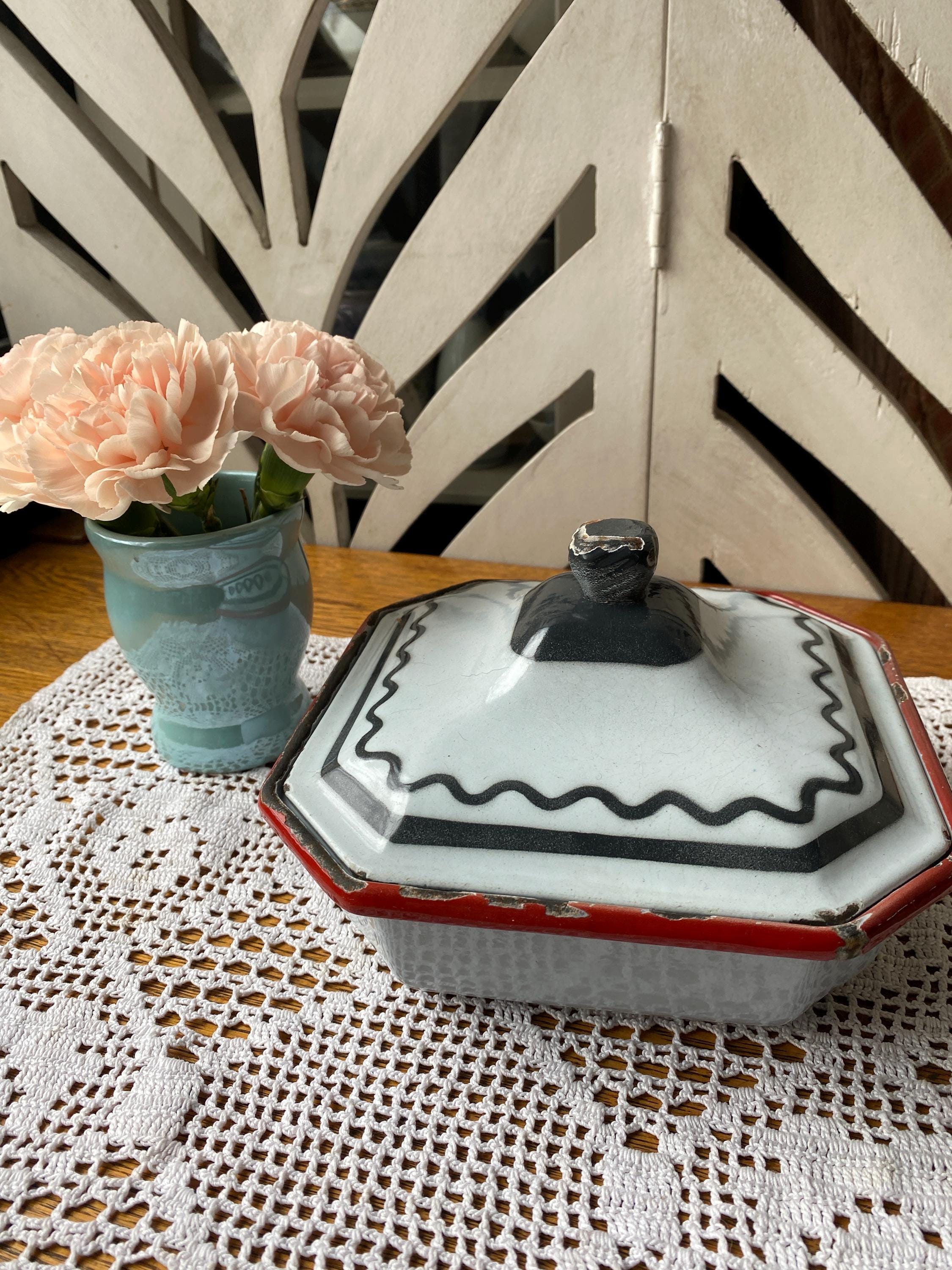 Perfectly aged, vintage European piece. Great decor or cooking up small casseroles or other baked goods. 7.5X4.5 inches. Very heavy. All items in my shop are vintage or handmade and may have signs of use, wear, or variation consistent with age or hand production. Please review the photos and video carefully and message me with any questions on condition.