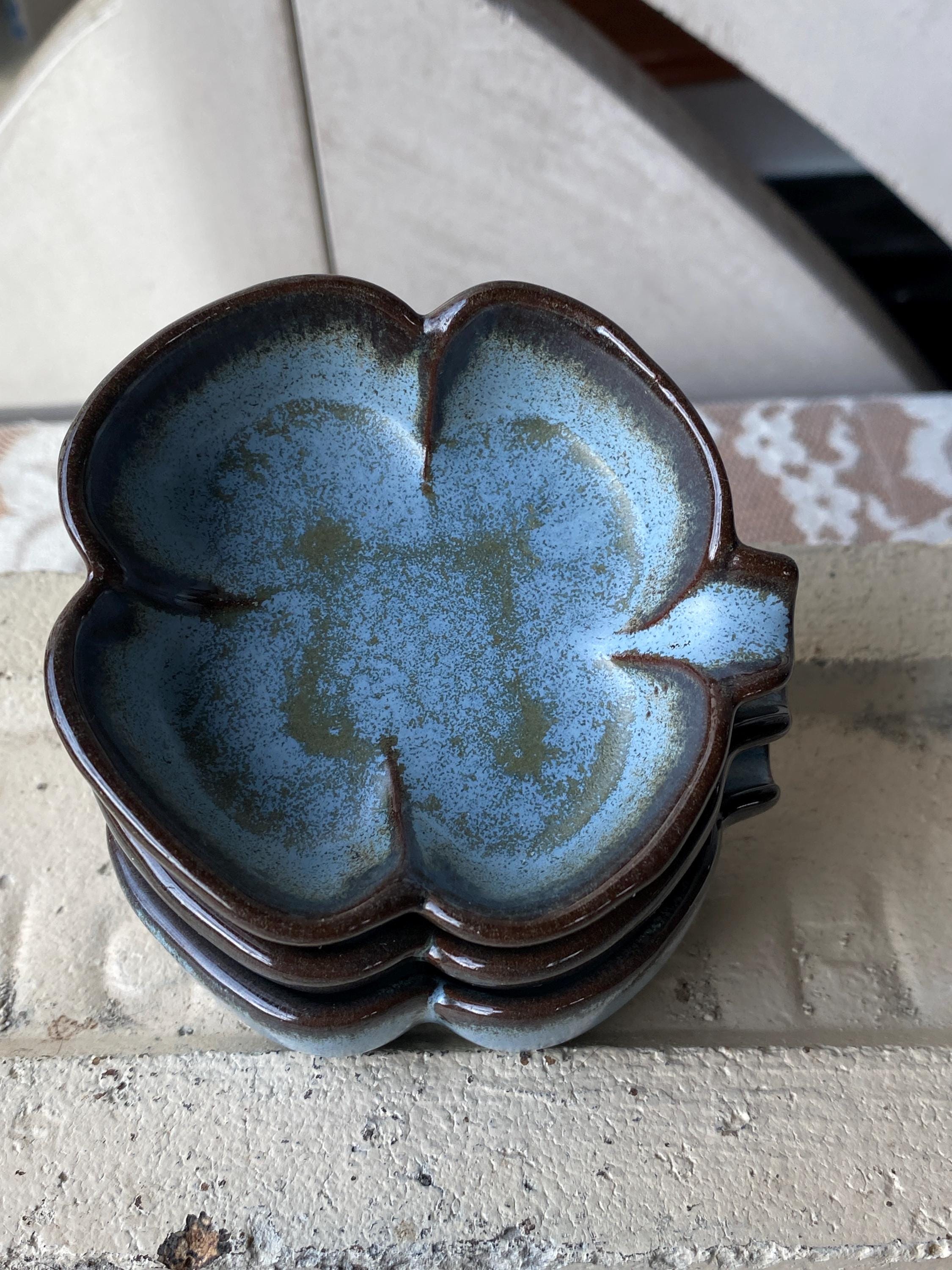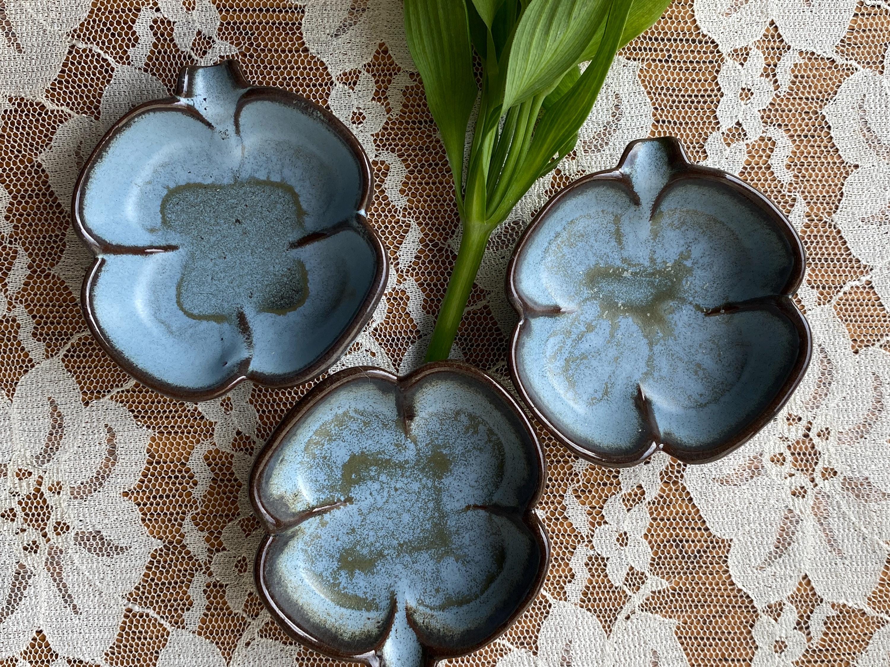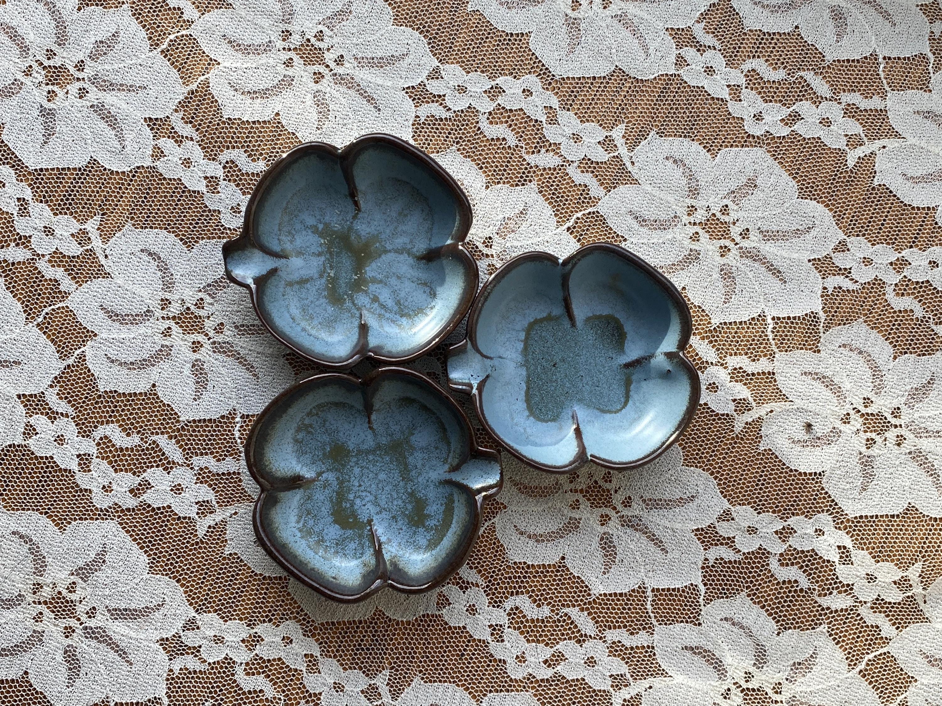 At 3X3 inches these little dishes are perfect for serving condiments or resting a tea bag. They are also great ring or trinket dishes. Good vintage condition.