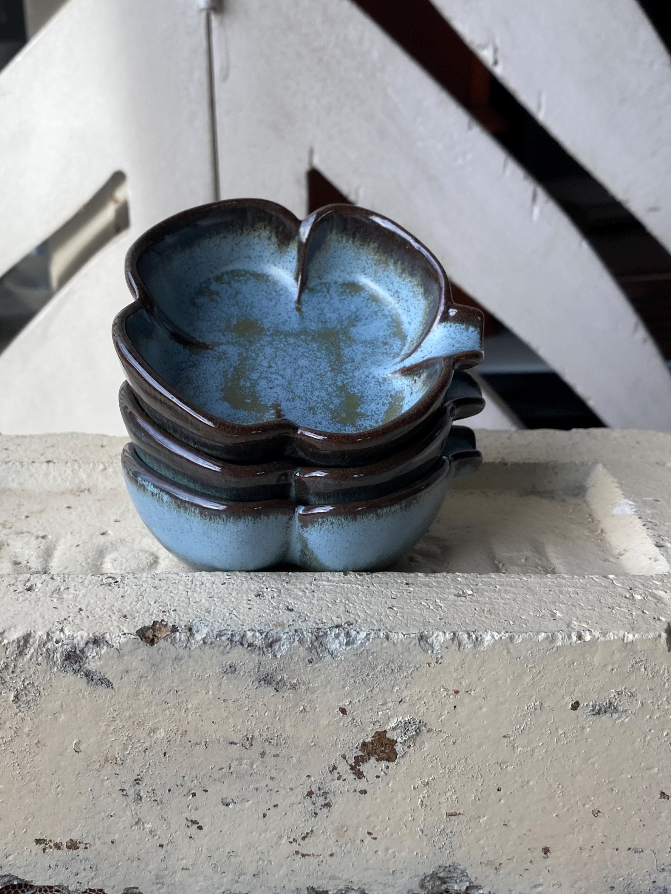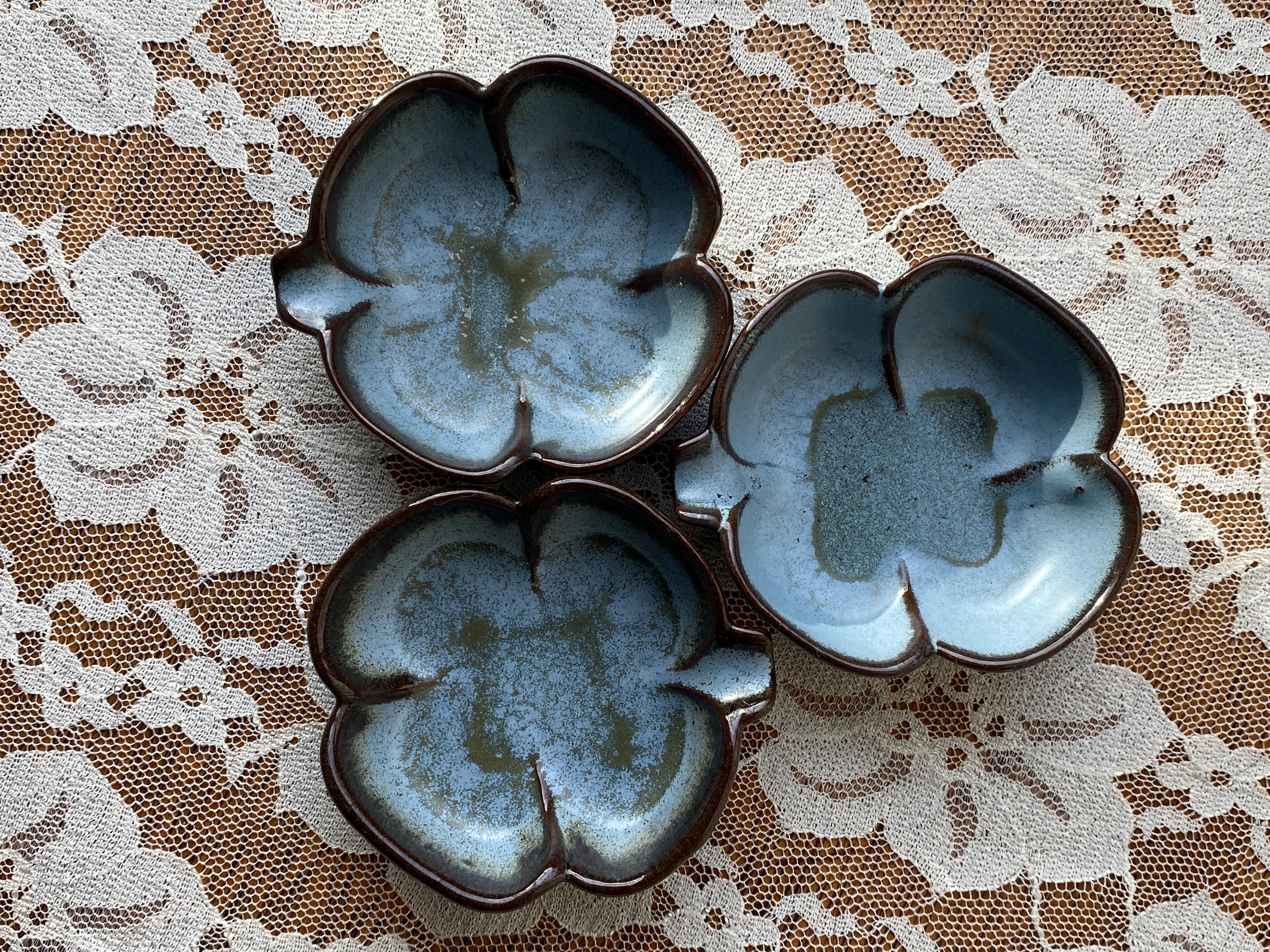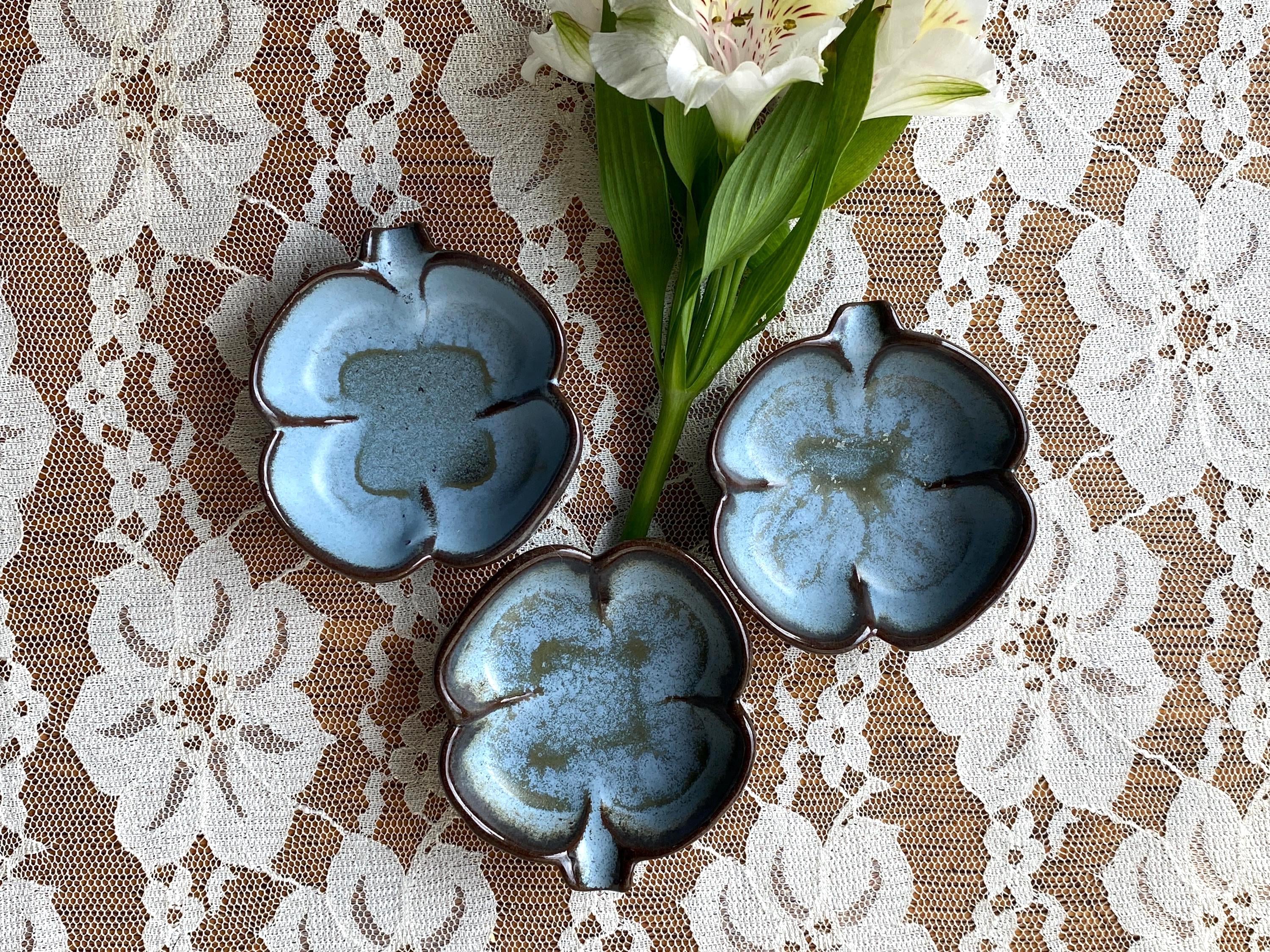 At 3X3 inches these little dishes are perfect for serving condiments or resting a tea bag. They are also great ring or trinket dishes. Good vintage condition.