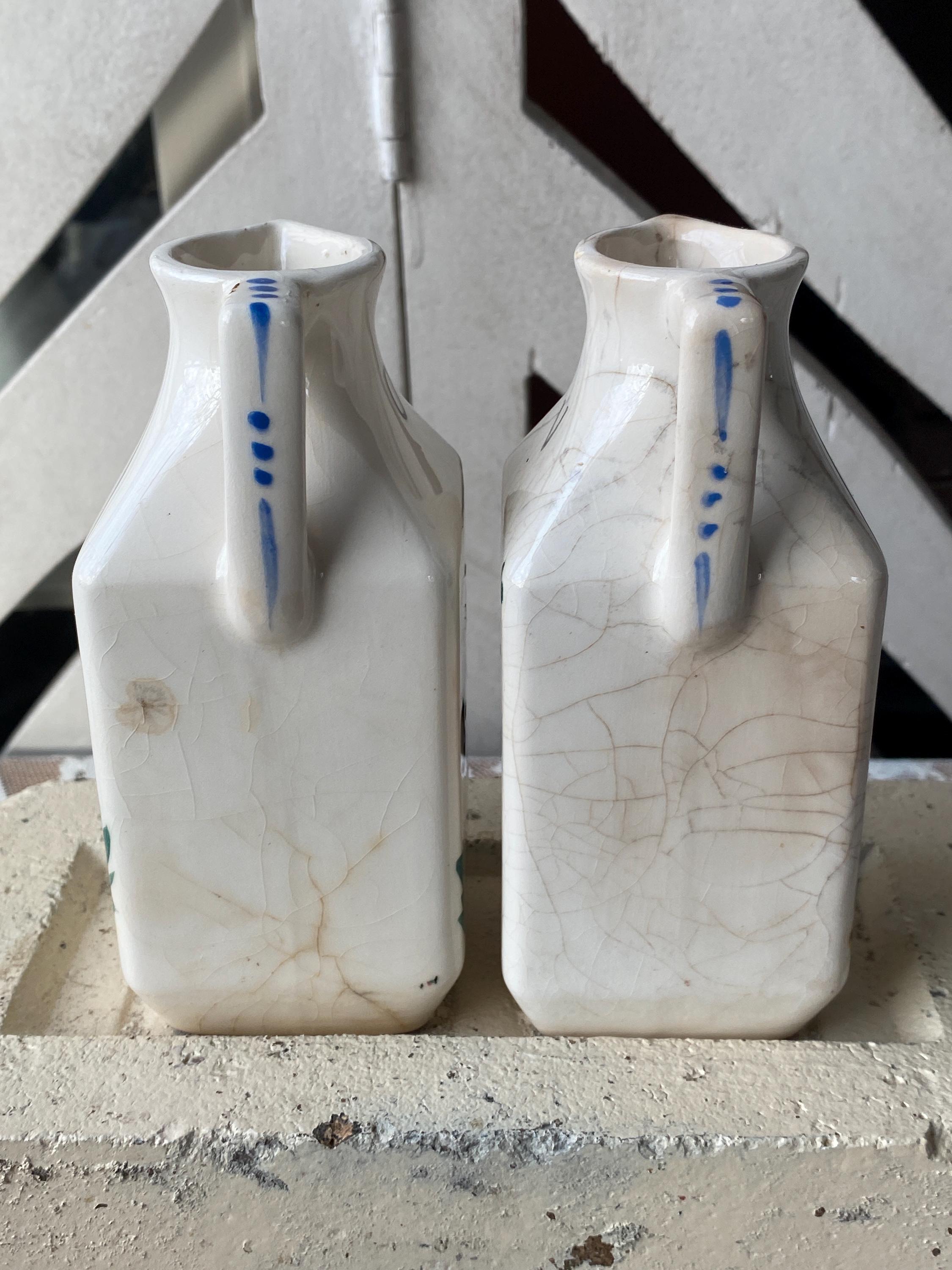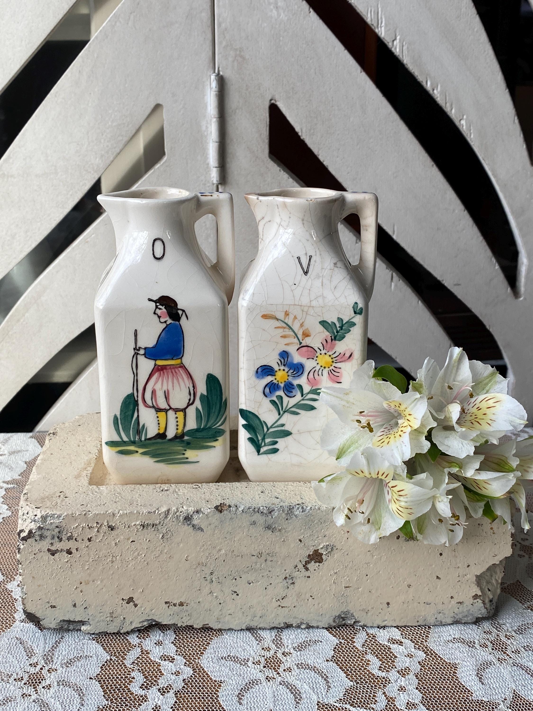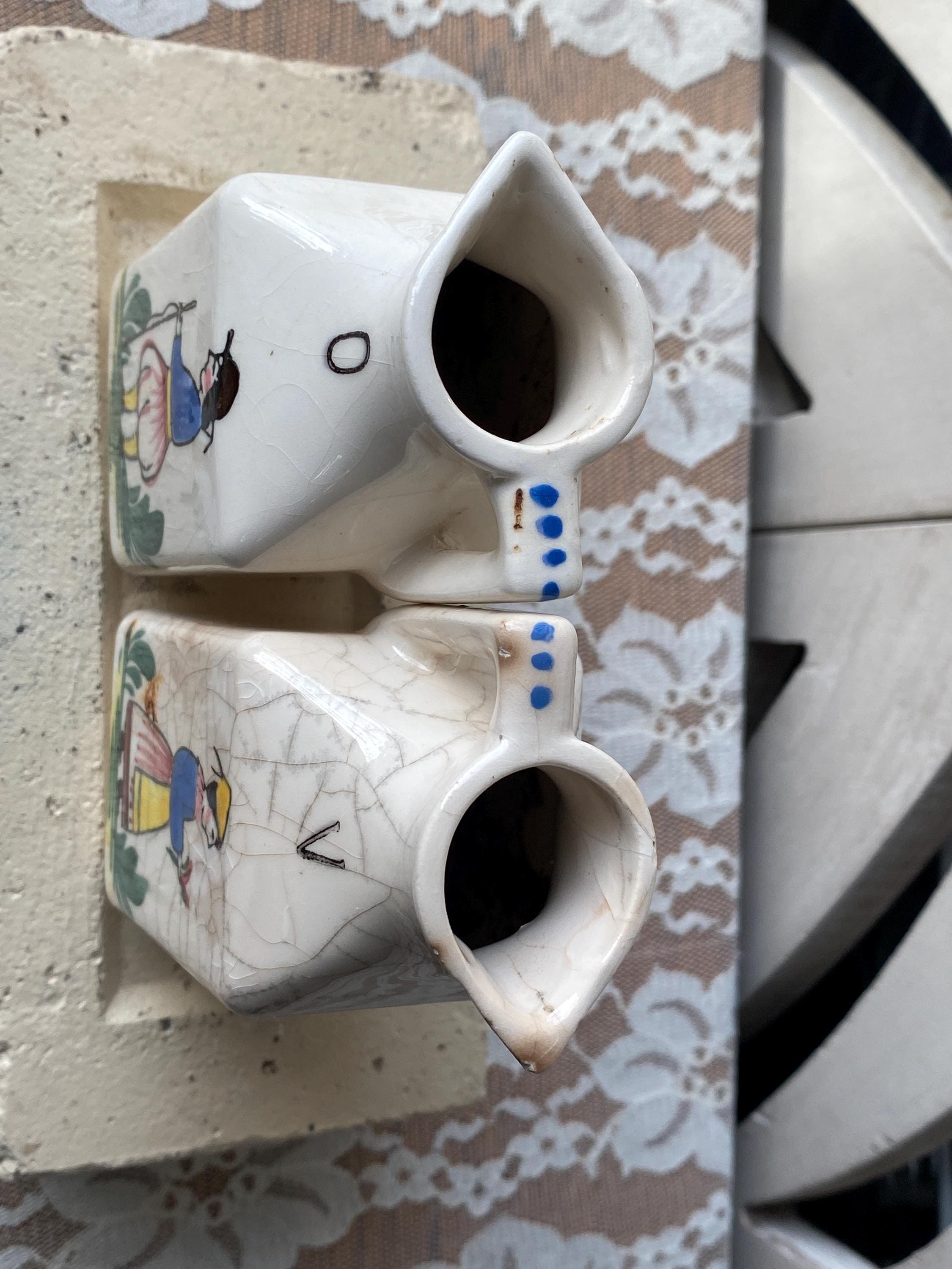 2X2X5 inches each. Made in Japan, this little set depicts a provincial style man and woman. ***Vintage condition, significant crazing, some cracks, chips etc.***