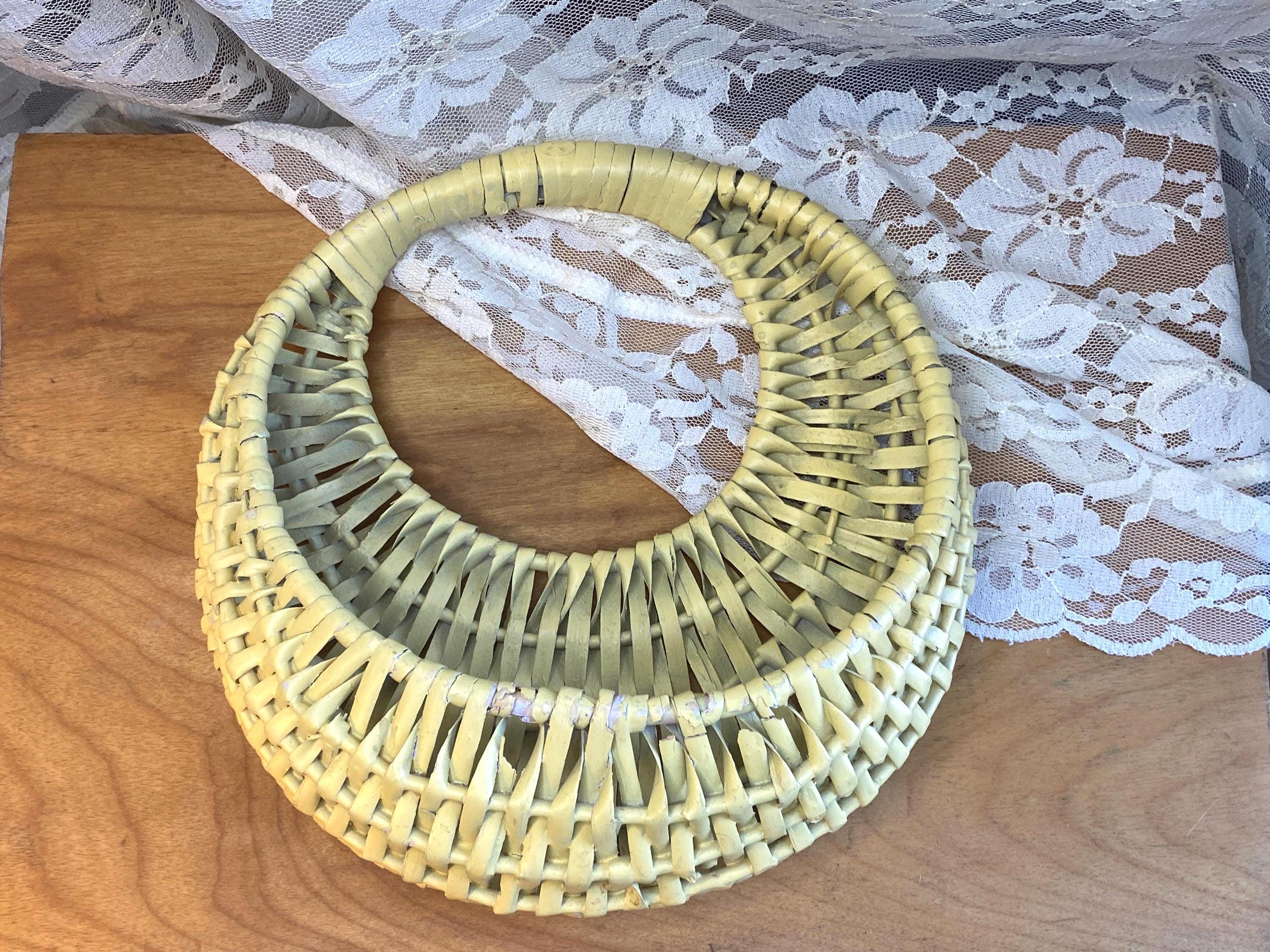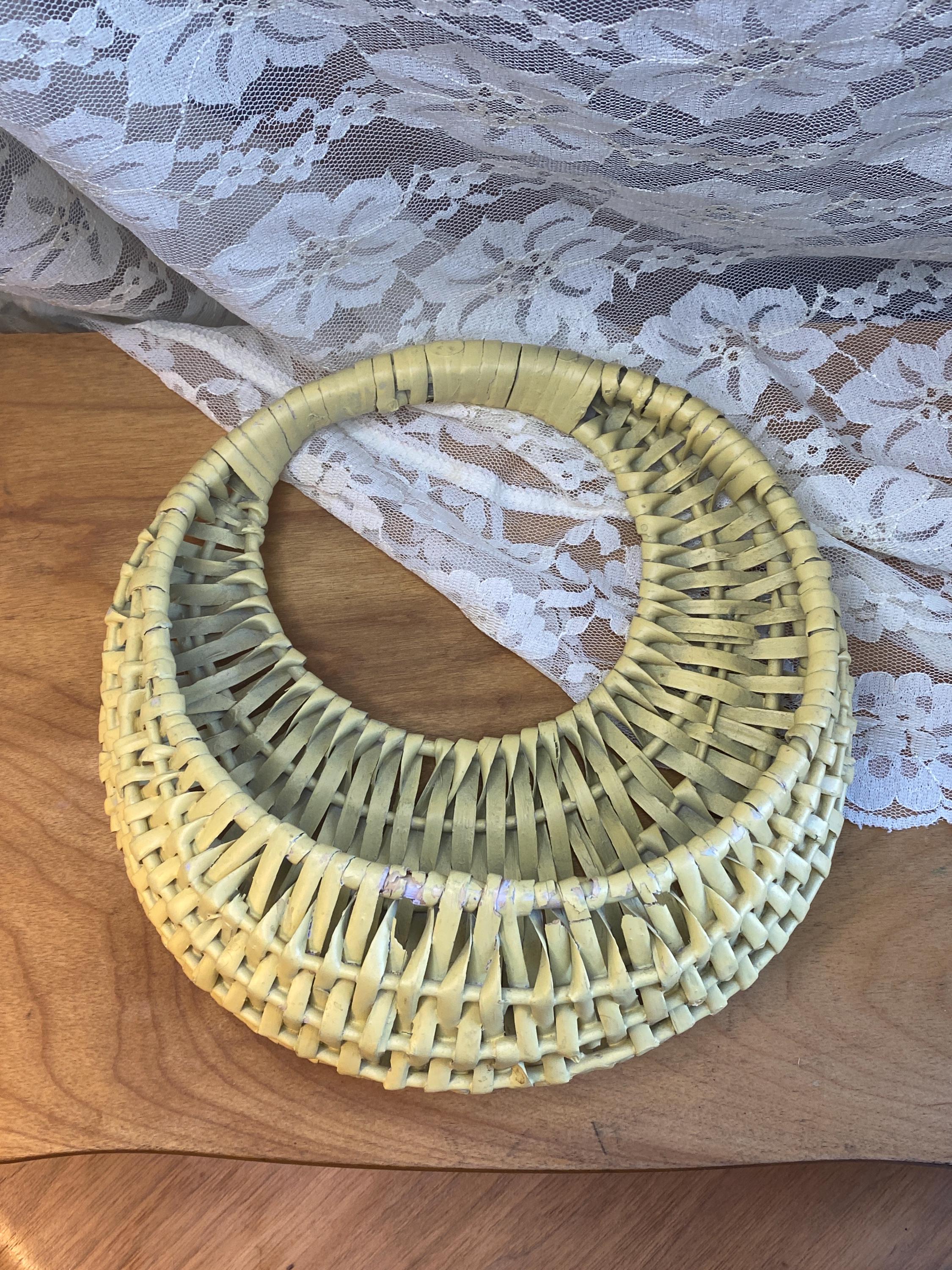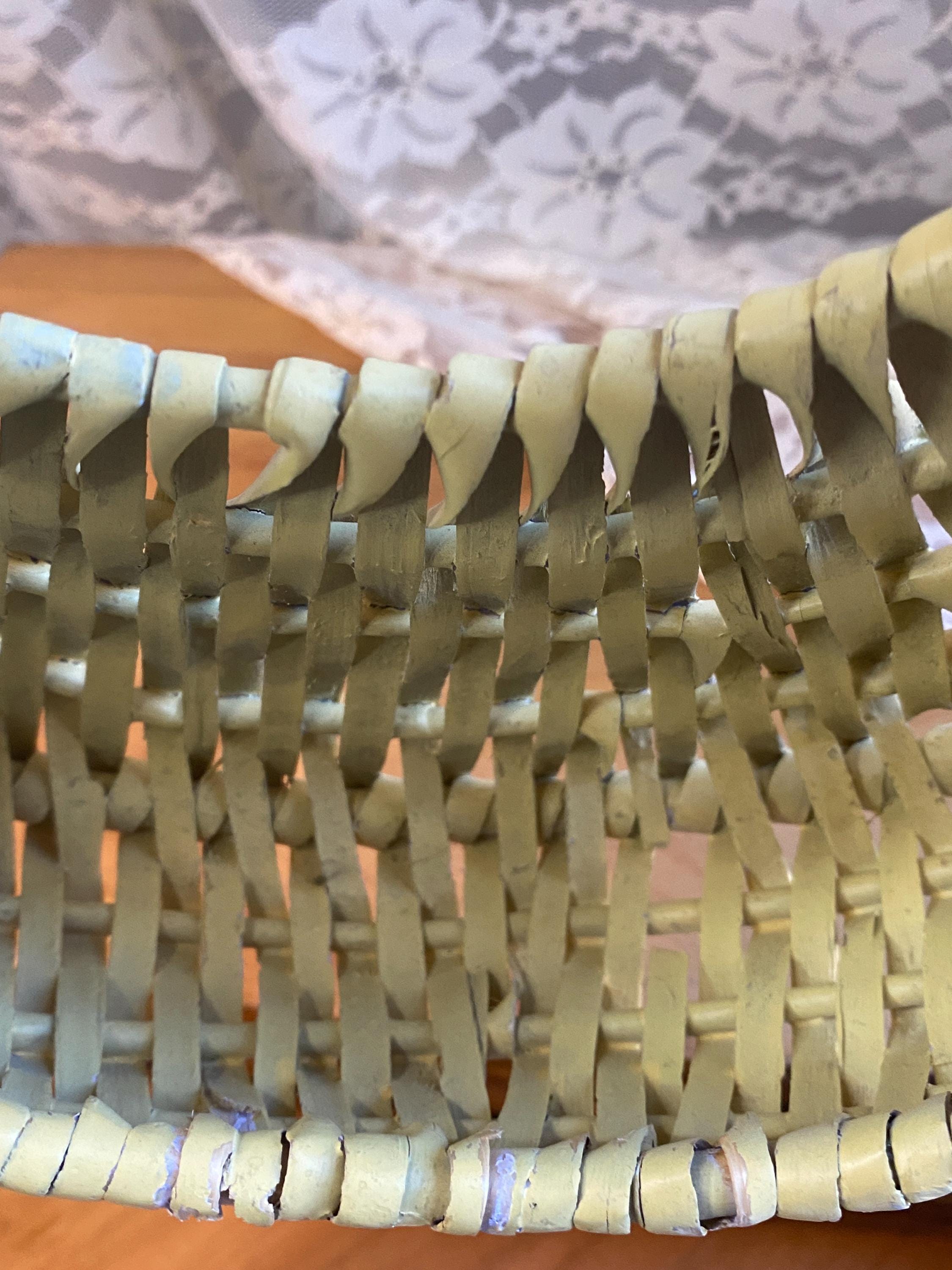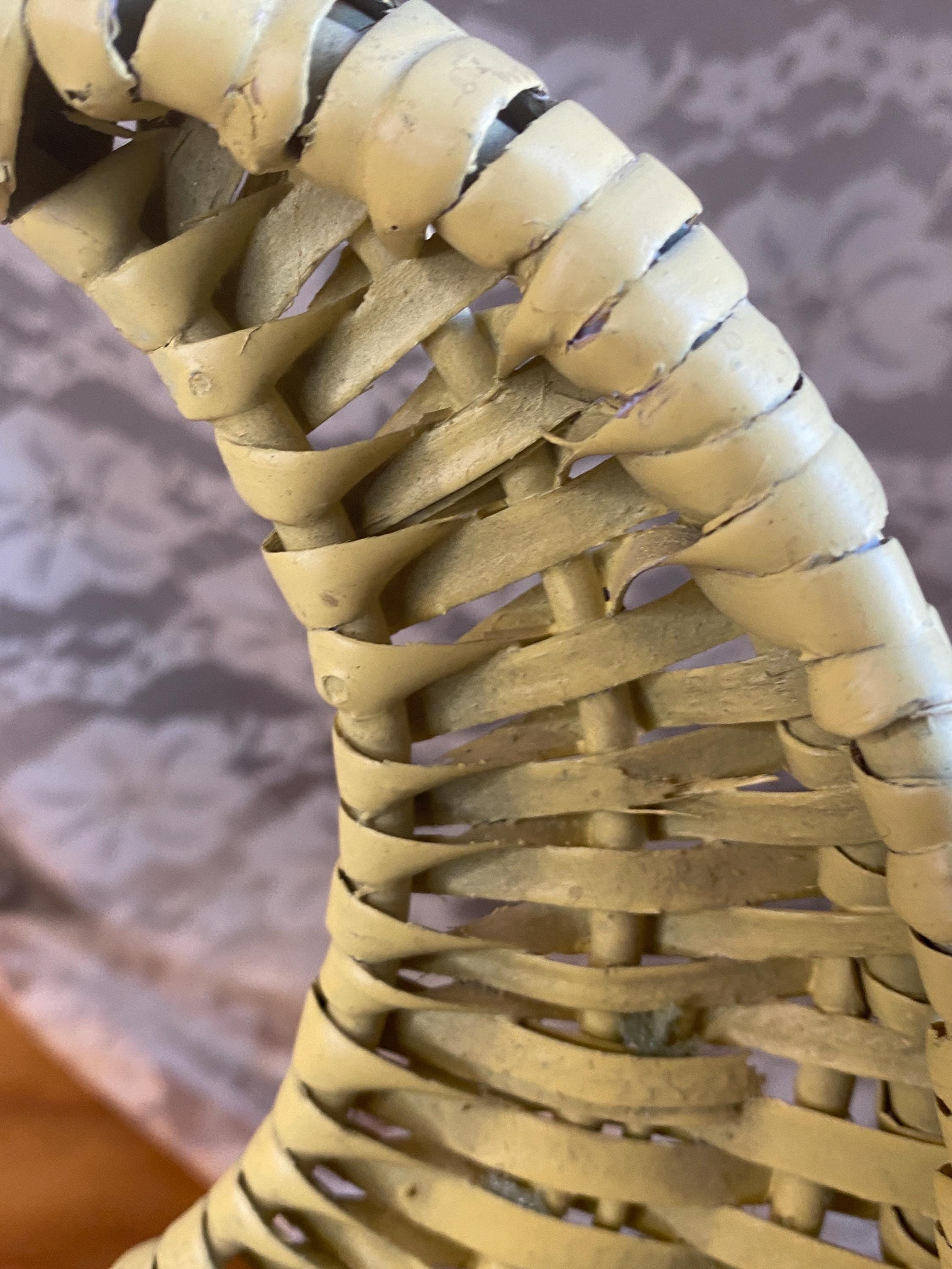 9X9.5 inches, soft buttery yellow, perfect for storing keys or mail or putting a small planter inside of. Some wear/ aging as shown in photos.
