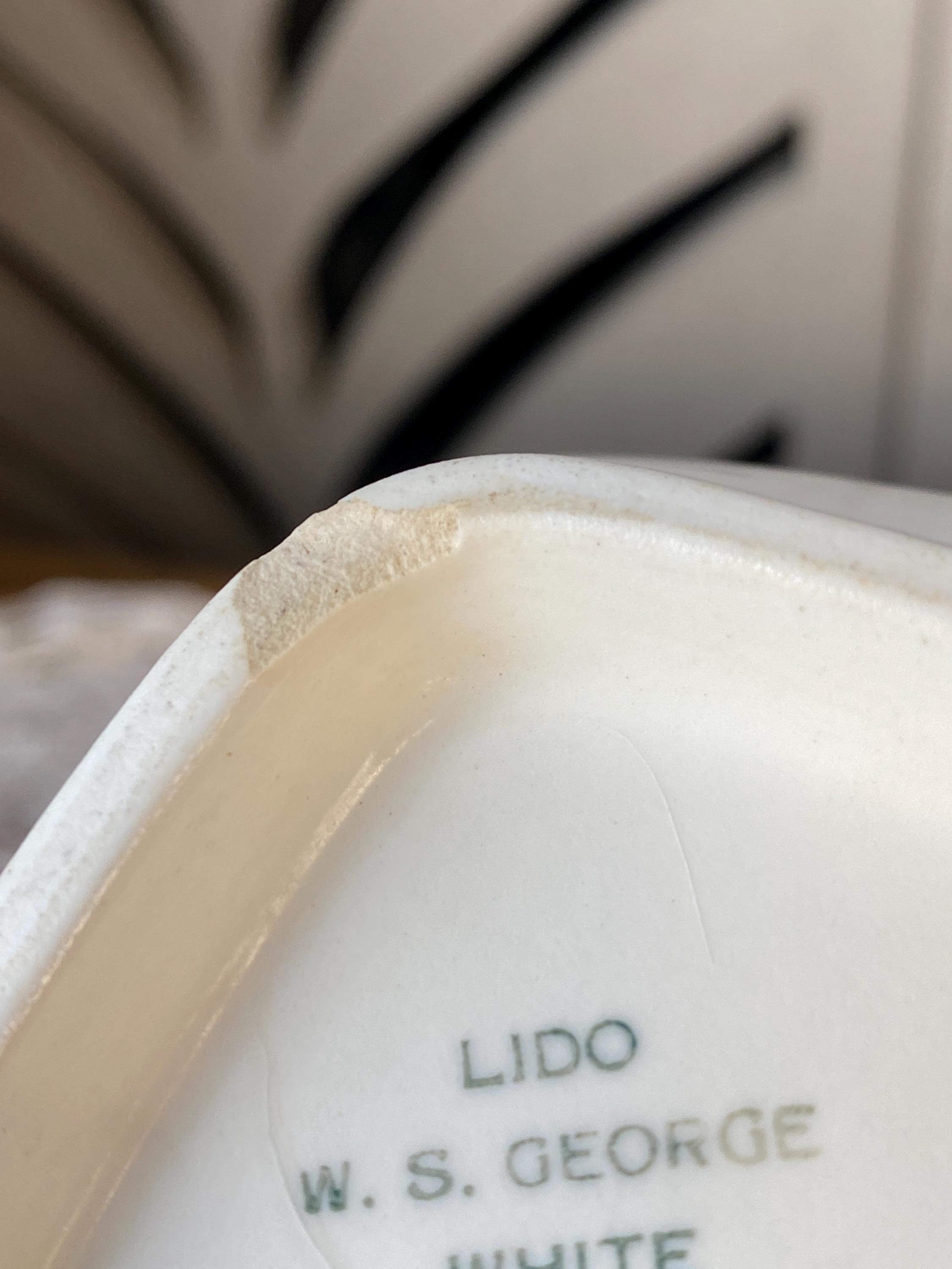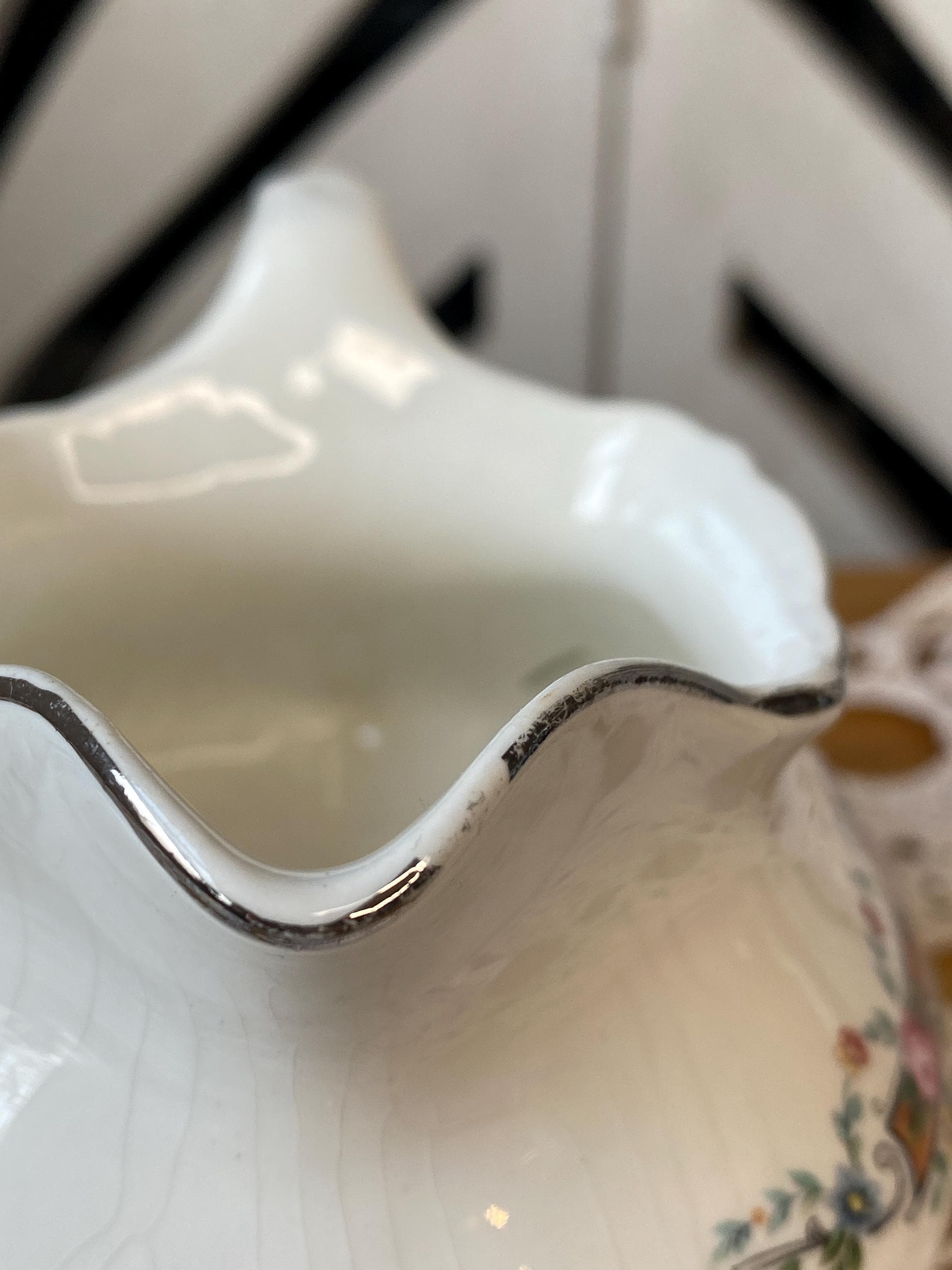 5X3X3.5 inches. Perfect for a vintage dining table or for use as a cute little vase. Vintage condition with wear, crazing and one small chip along bottom edge/ see last photo. All items in my shop are vintage or handmade and may have signs of use, wear, or variation consistent with age or hand production. Please review the photos and video carefully and message me with any questions on condition.