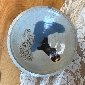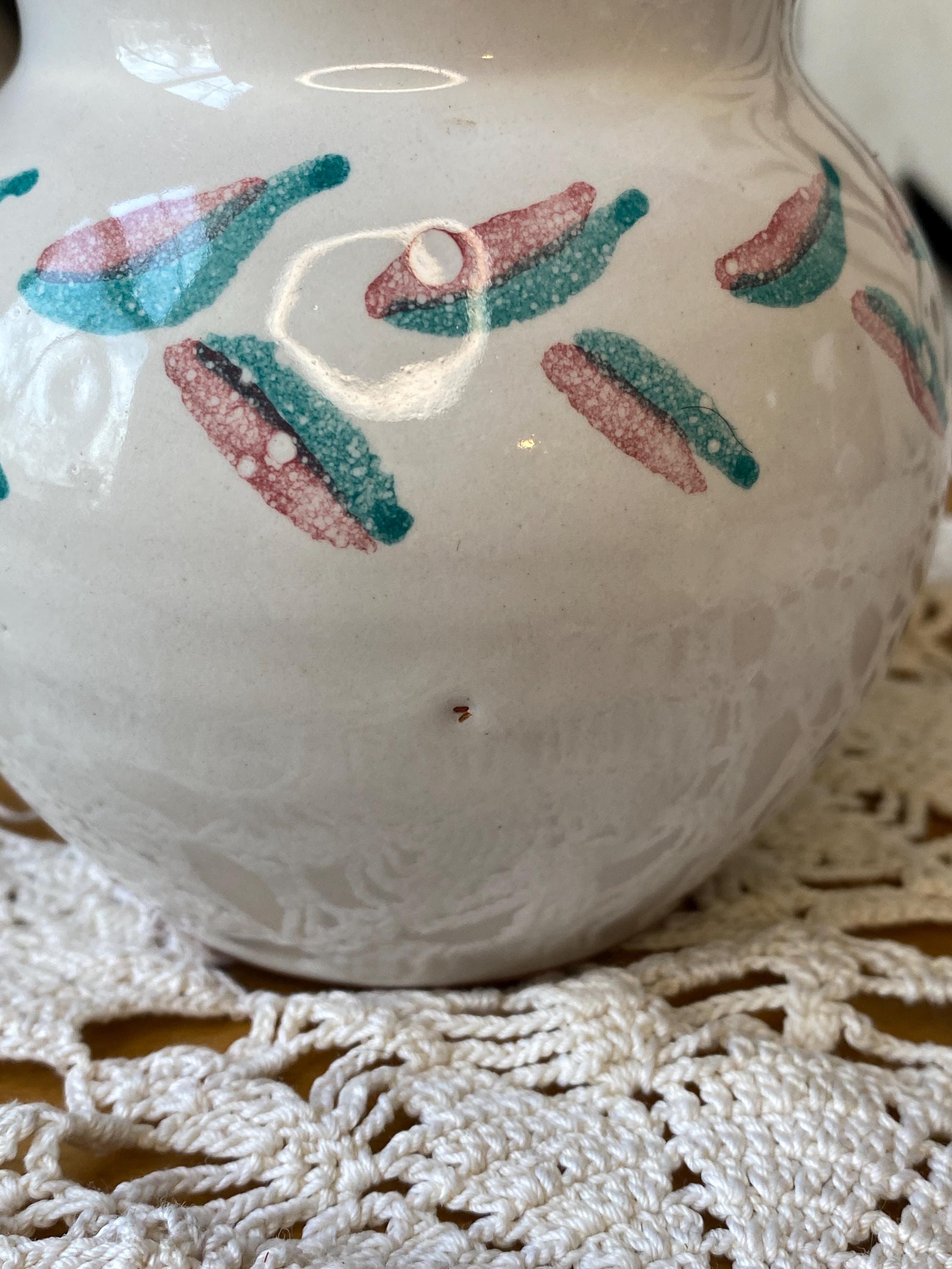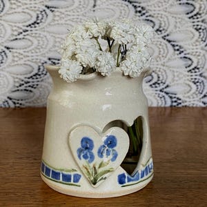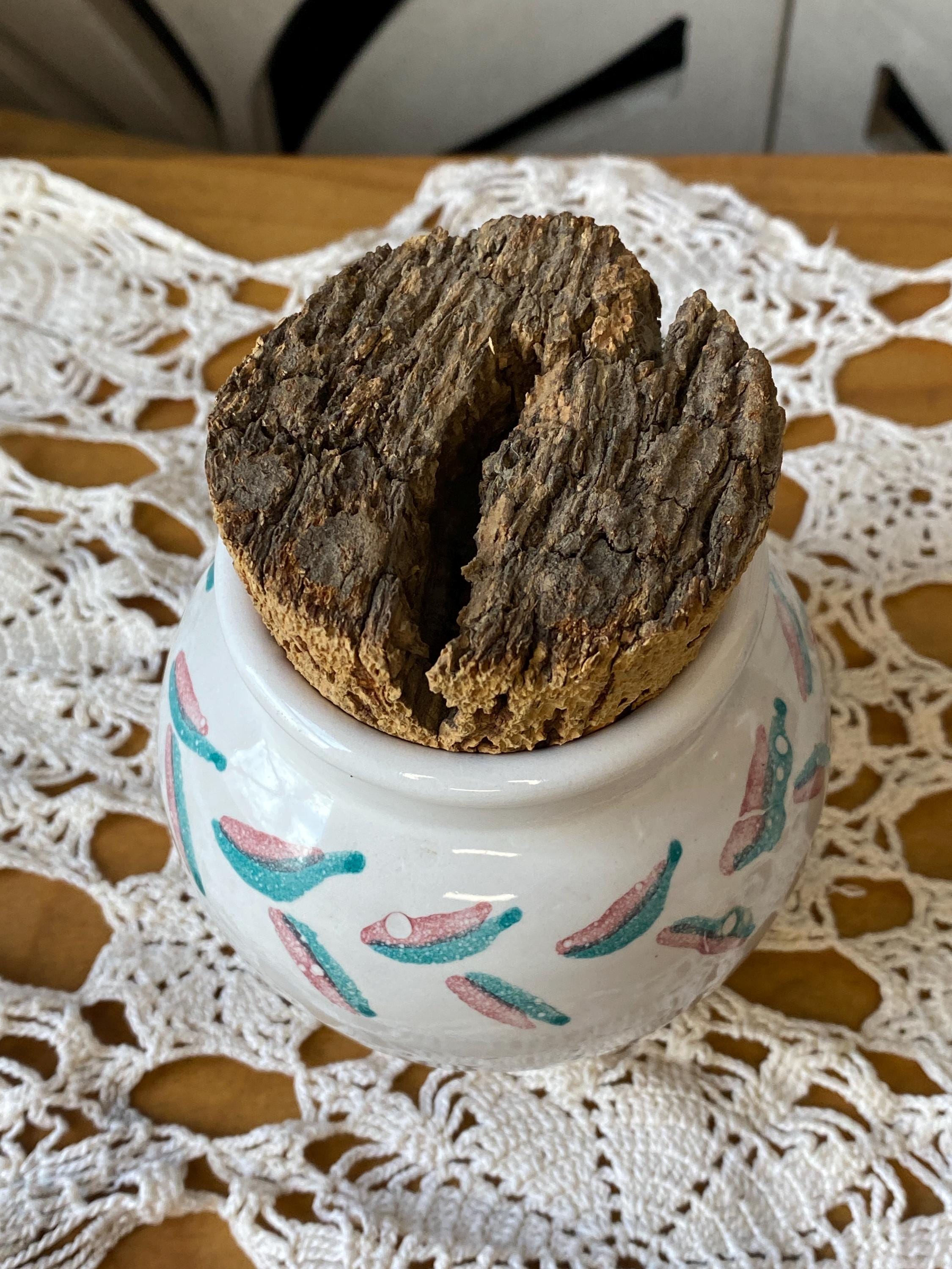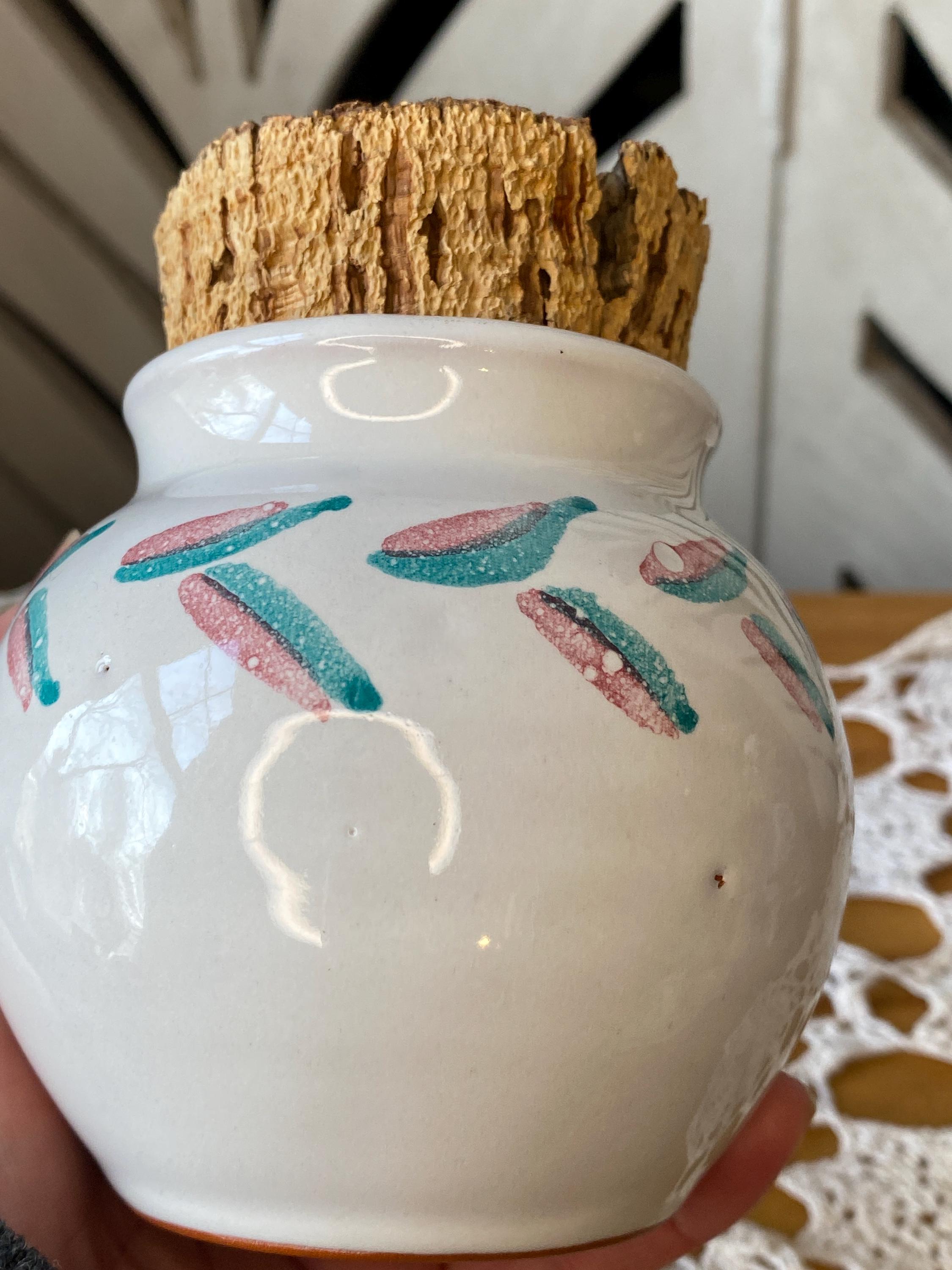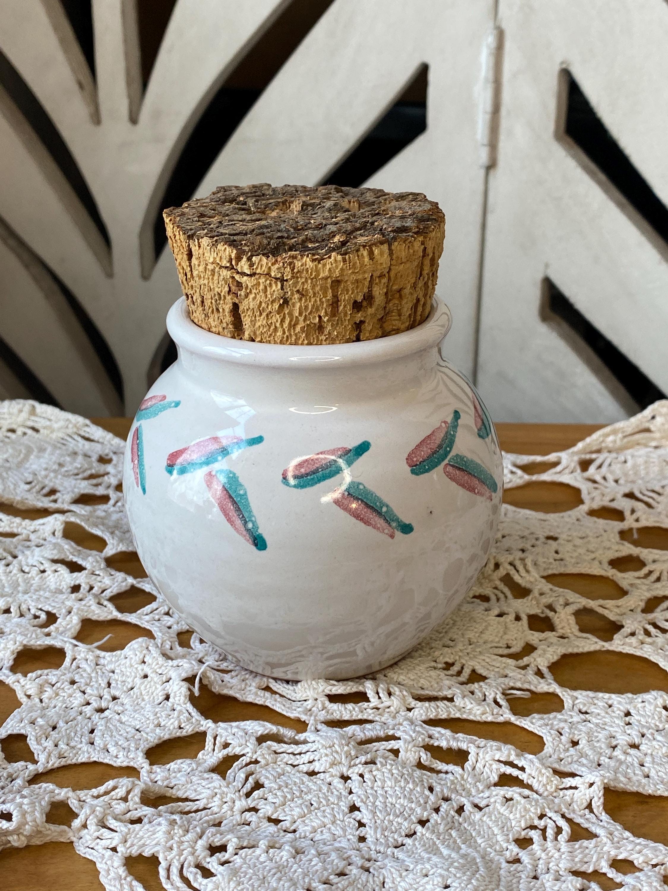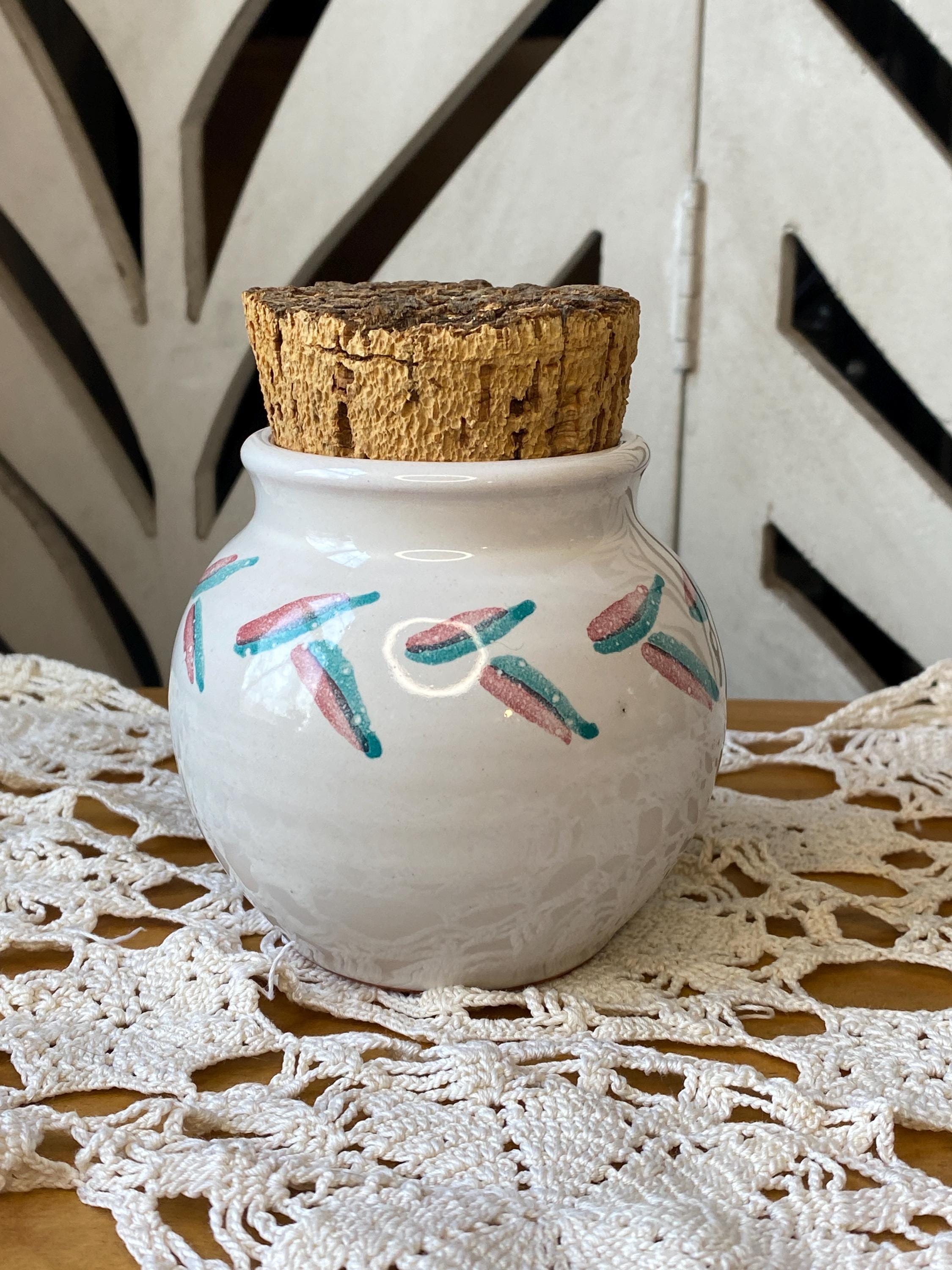 4.5 inches tall, 2.5 inches across top. Perfectly sized for storing tea or spices. Signed by the artist. All items in my shop are vintage or handmade and may have signs of use, wear, or variation consistent with age or hand production. Please review the photos and video carefully and message me with any questions on condition.