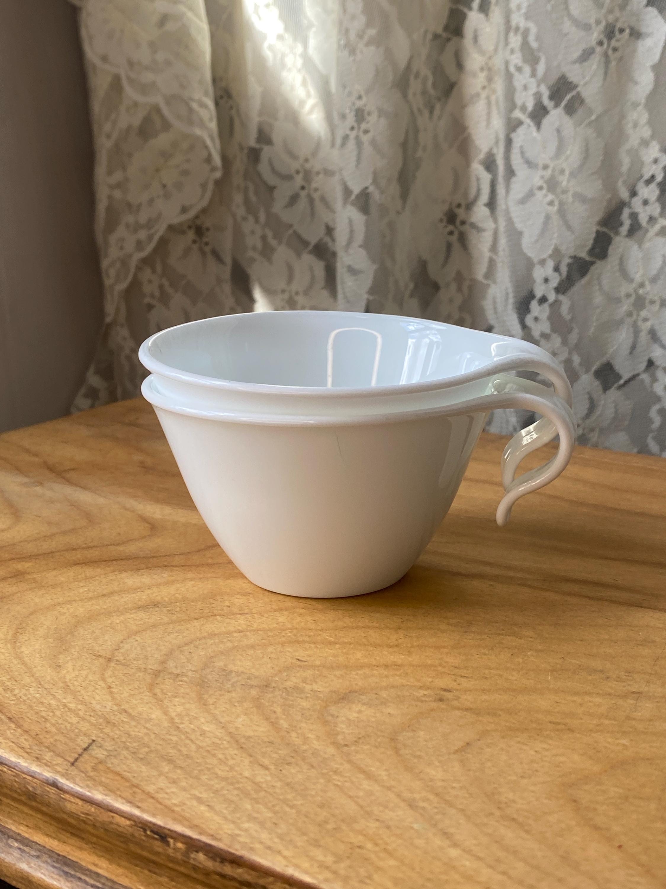 4X3.5X3.5 inches, pretty white glass easy to hang or stack. Good vintage condition.