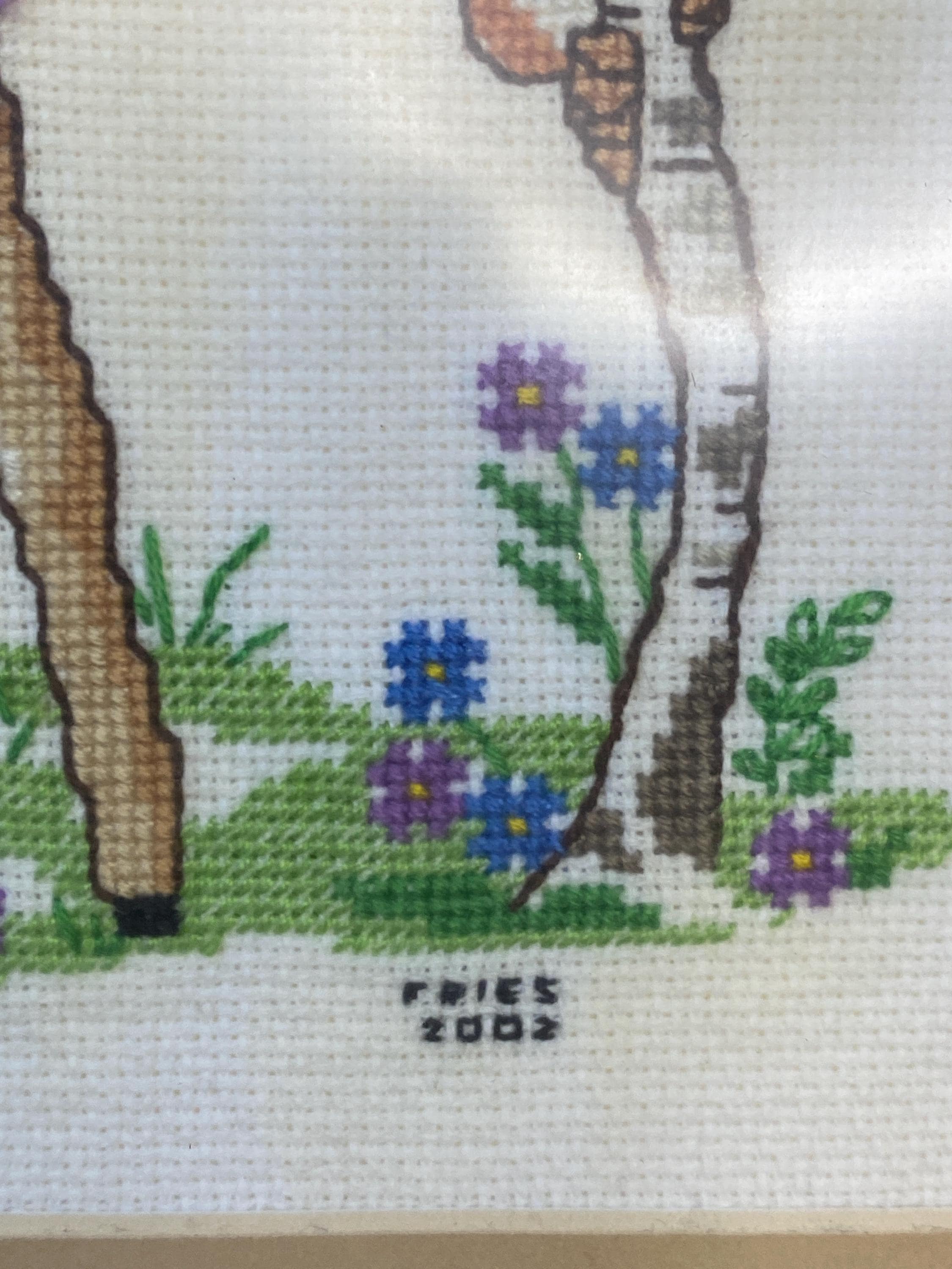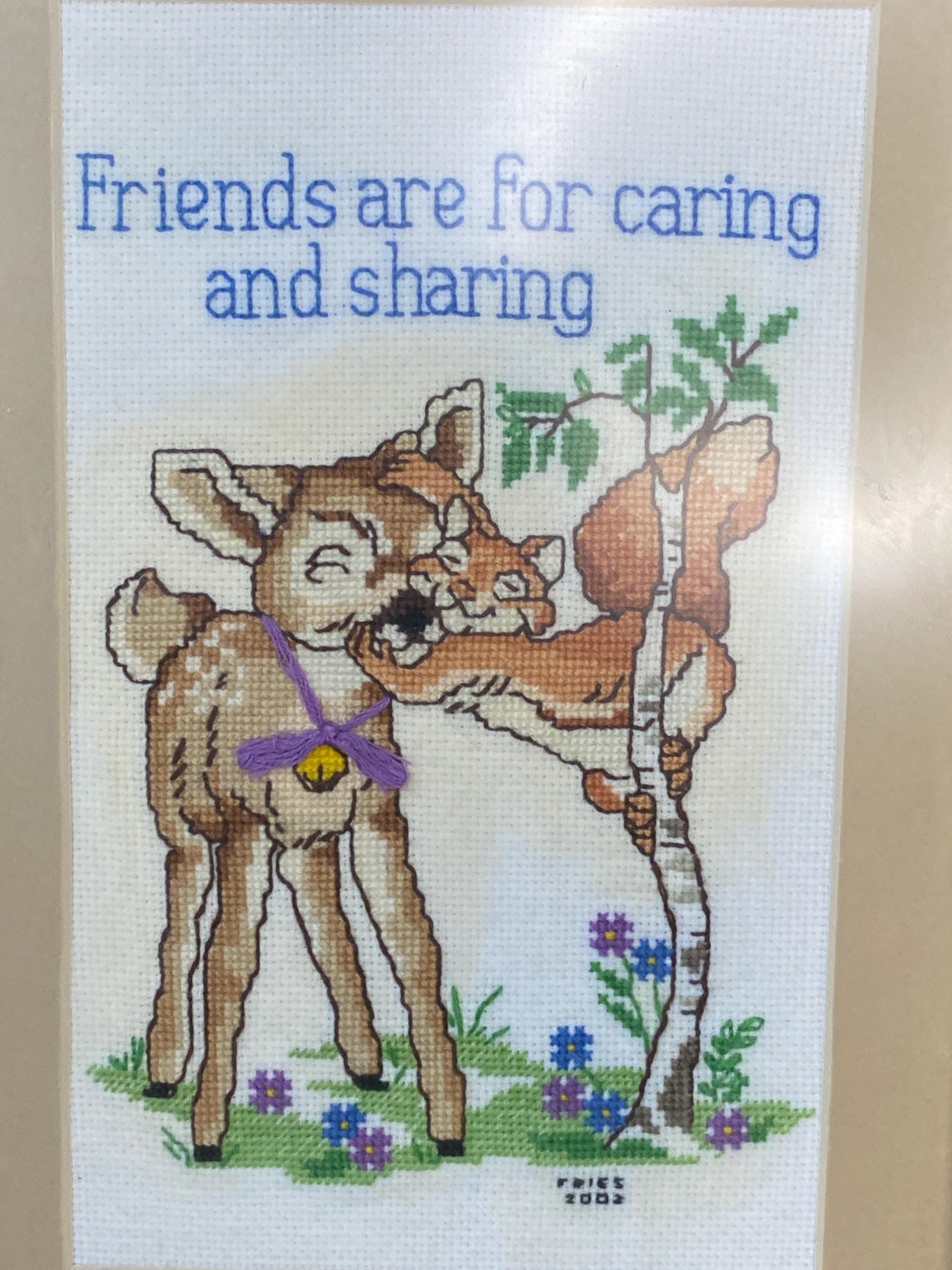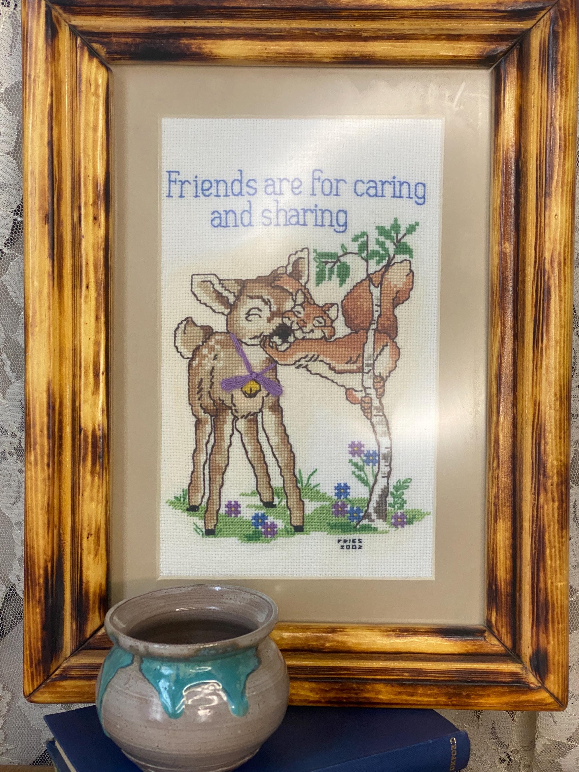 12.5X9.5 inches. Pretty pastel blue and green with little deer and squirrel friends. This would make such cute nursery decor. The frame is just as beautiful as the art. All items in my shop are vintage or handmade and may have signs of use, wear, or variation consistent with age or hand production. Please review the photos and video carefully and message me with any questions on condition.