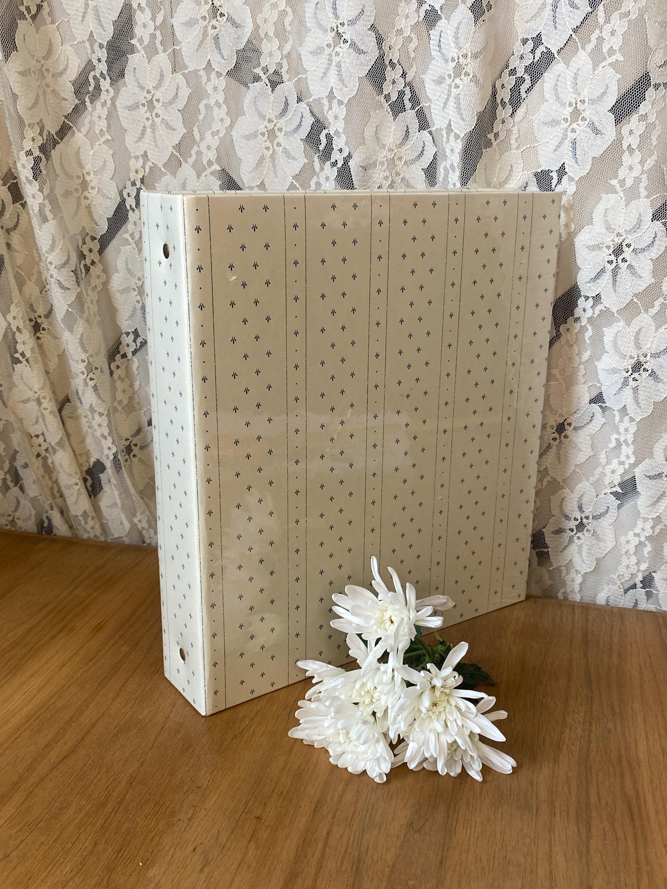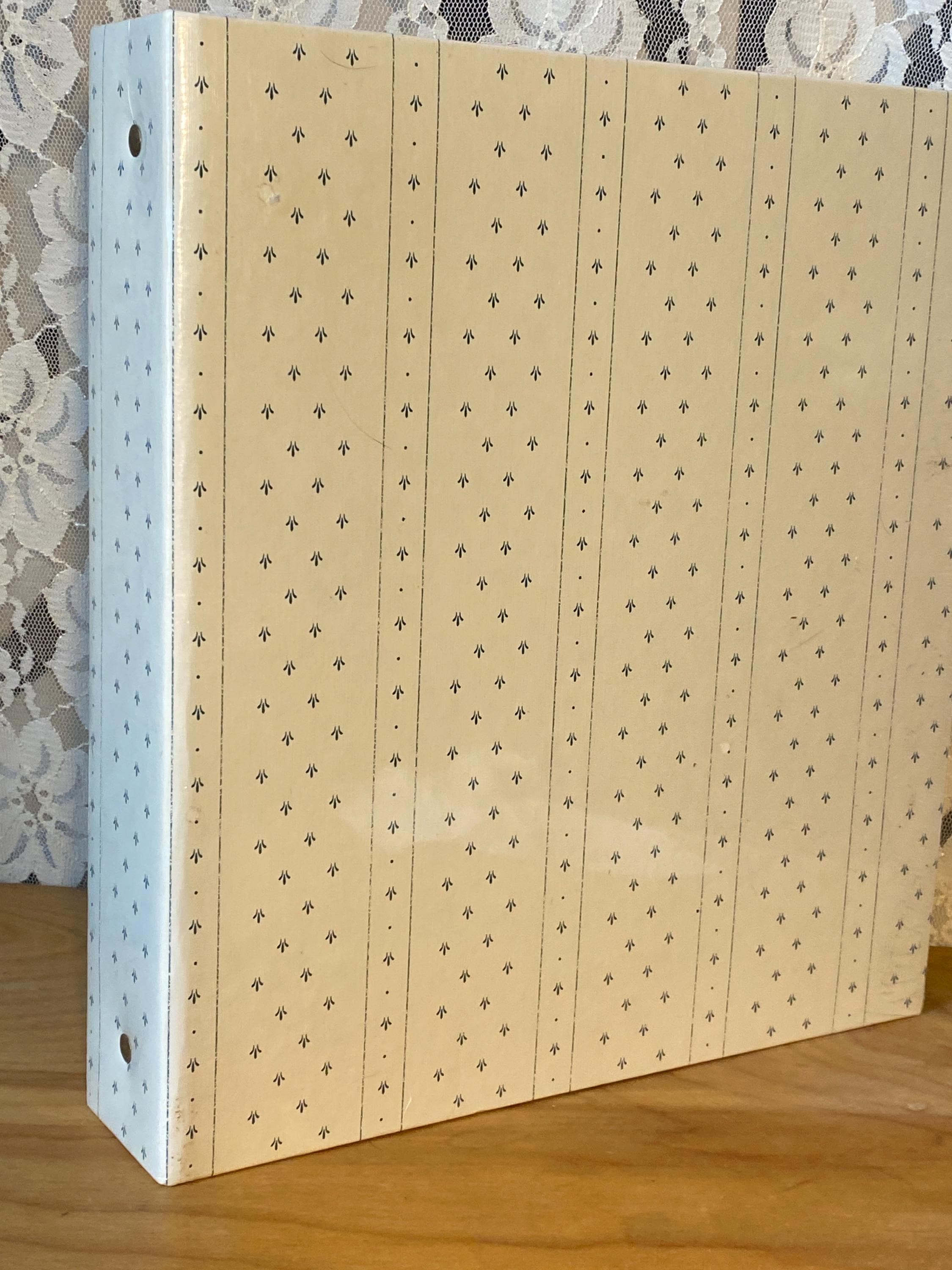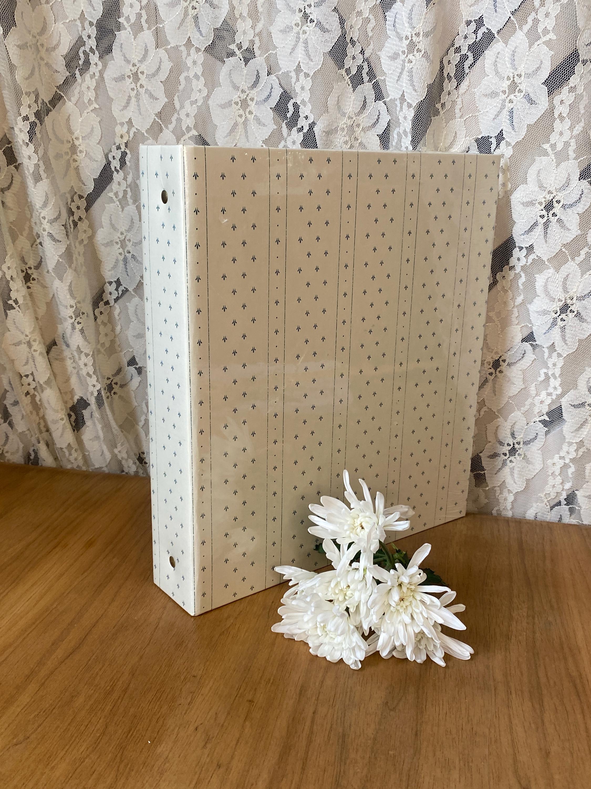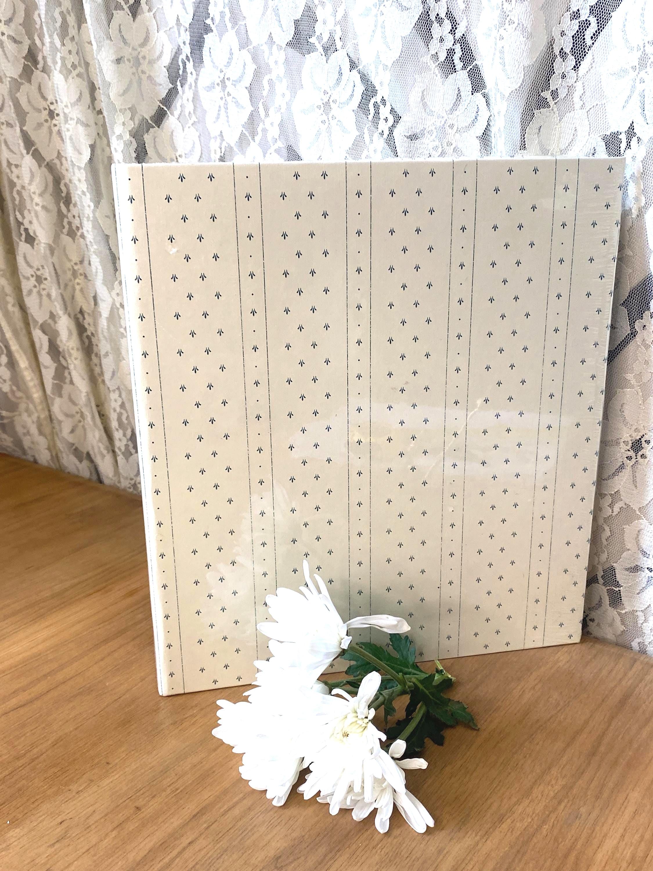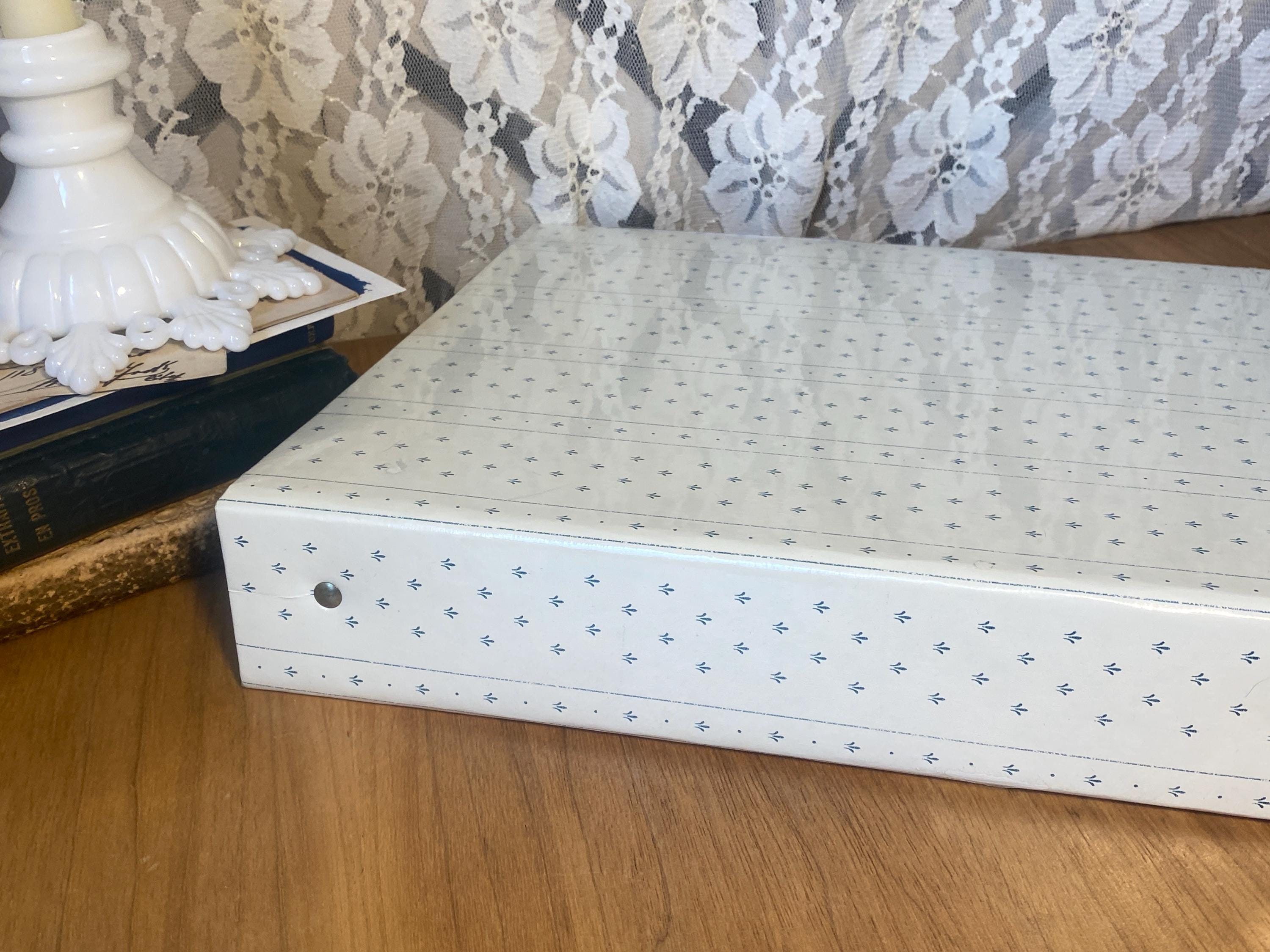 10.5X2.5X12 inches. Pretty blue flowers on a white background. New with original tag. Some very minor wear around corners.