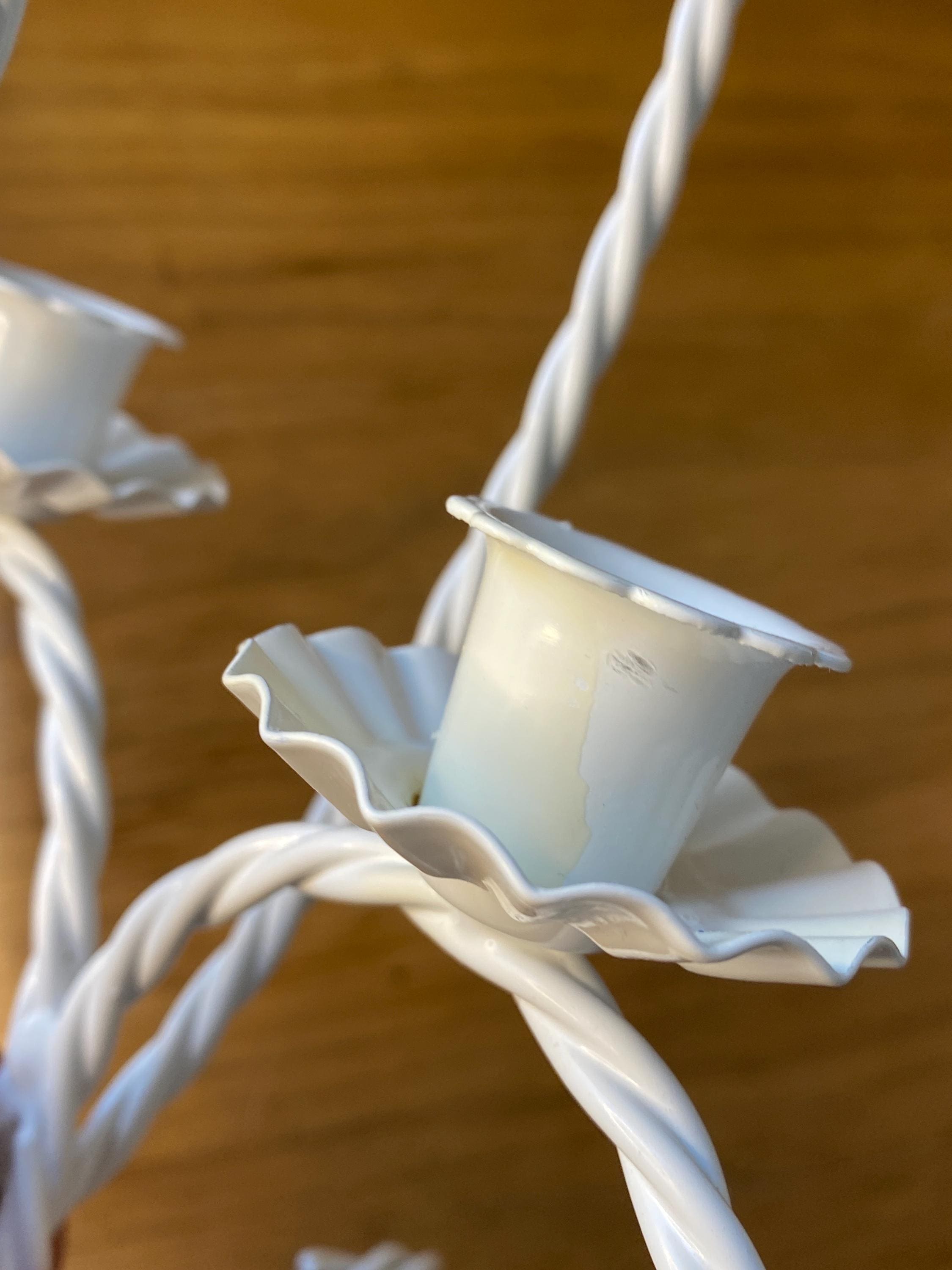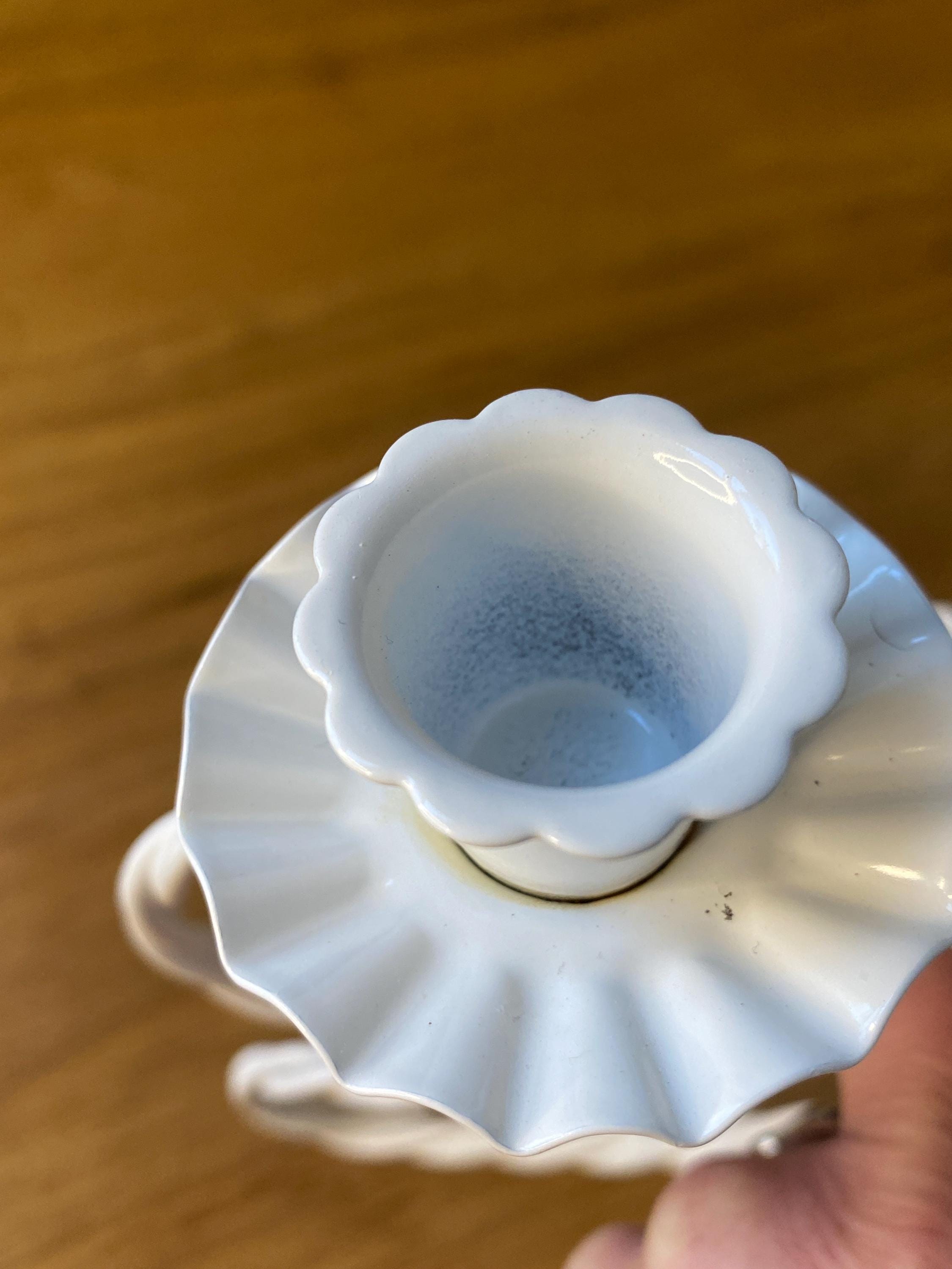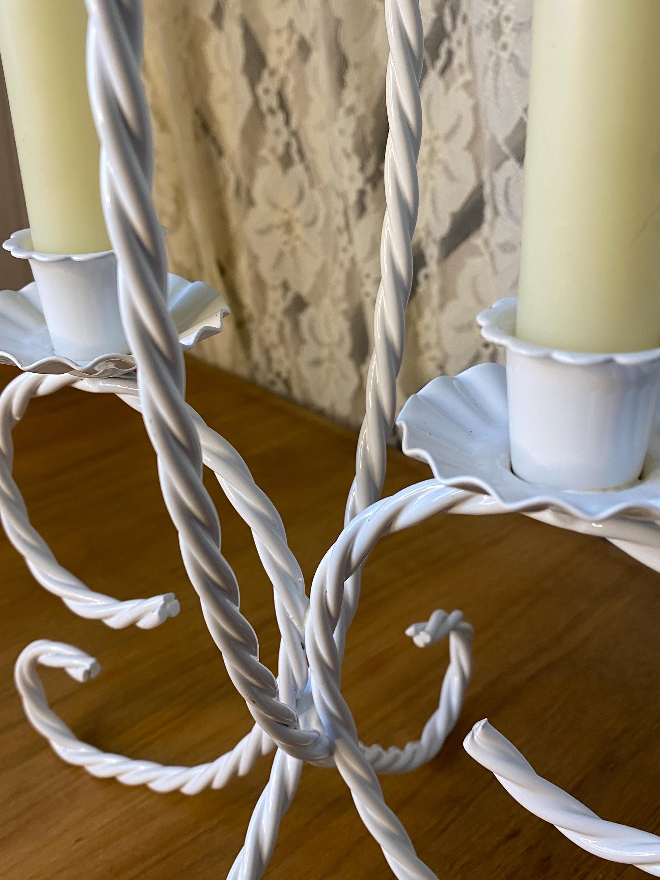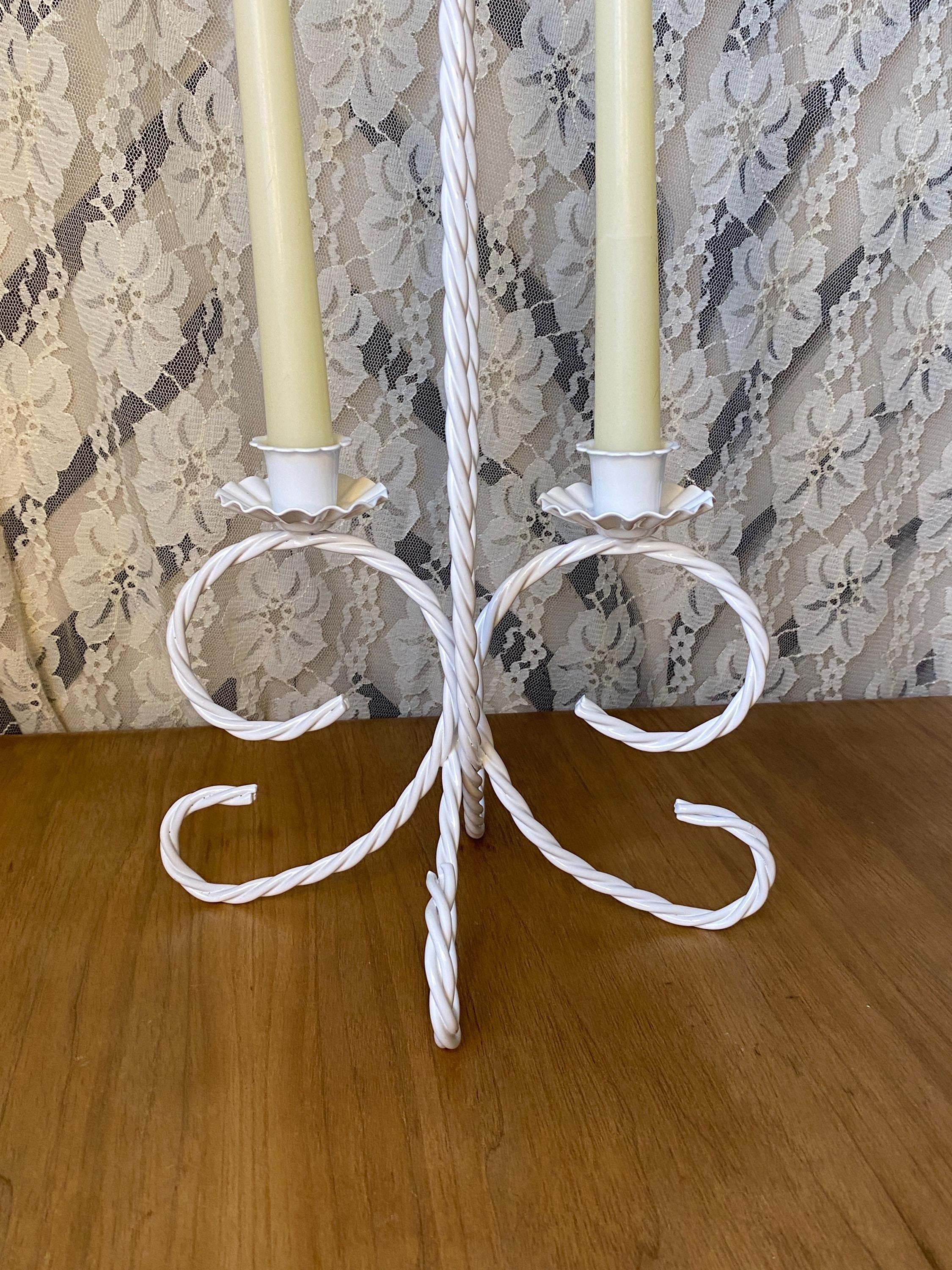 13 inches tall, 7.5X8.5 inches wide. Such a versatile piece that would fit with so many decor themes. Holds two taper candles. A couple of small stains around one rim and a few scratches/ see photos. All items in my shop are vintage or handmade and may have signs of use, wear, or variation consistent with age or hand production. Please review the photos and video carefully and message me with any questions on condition.