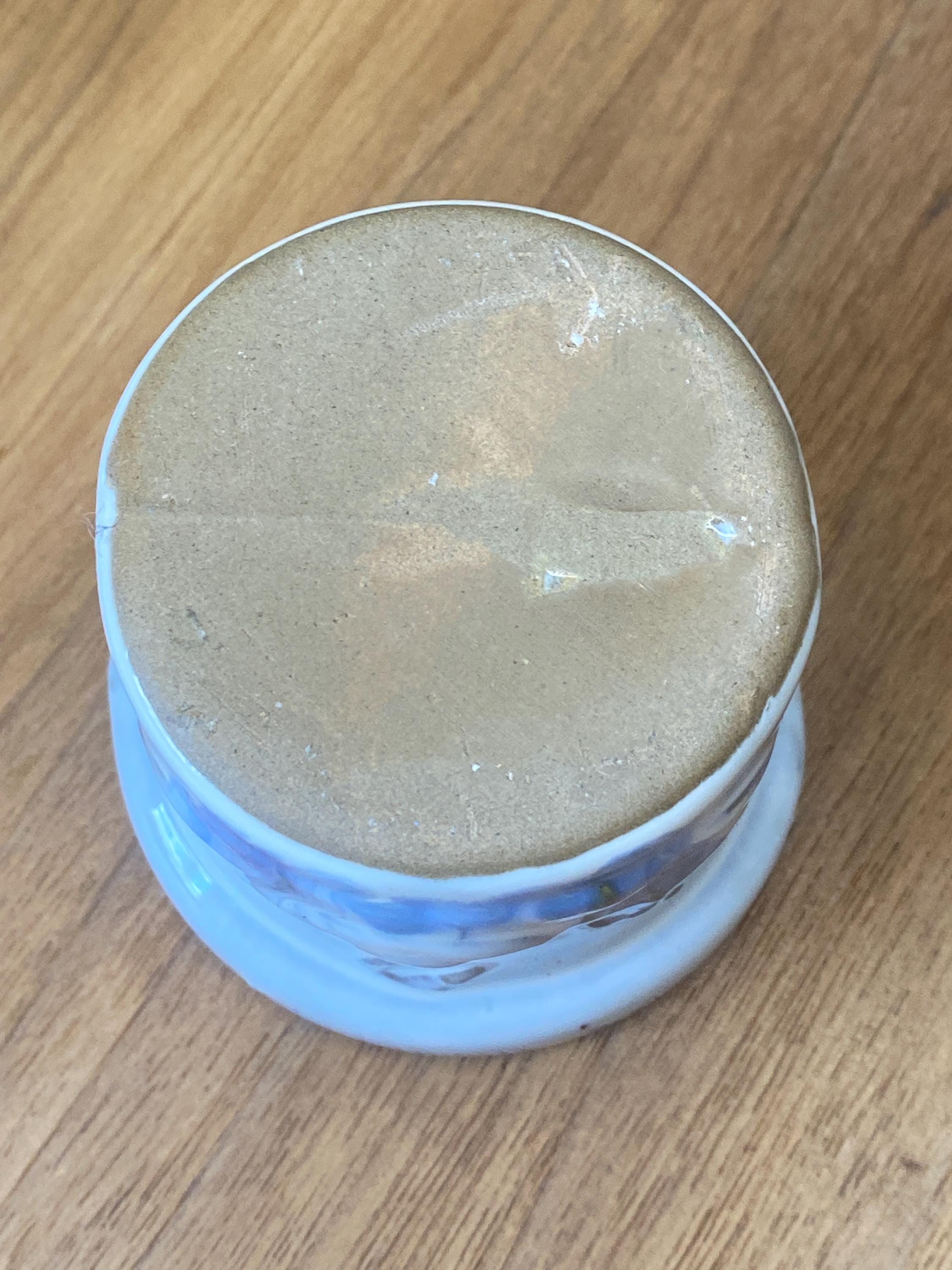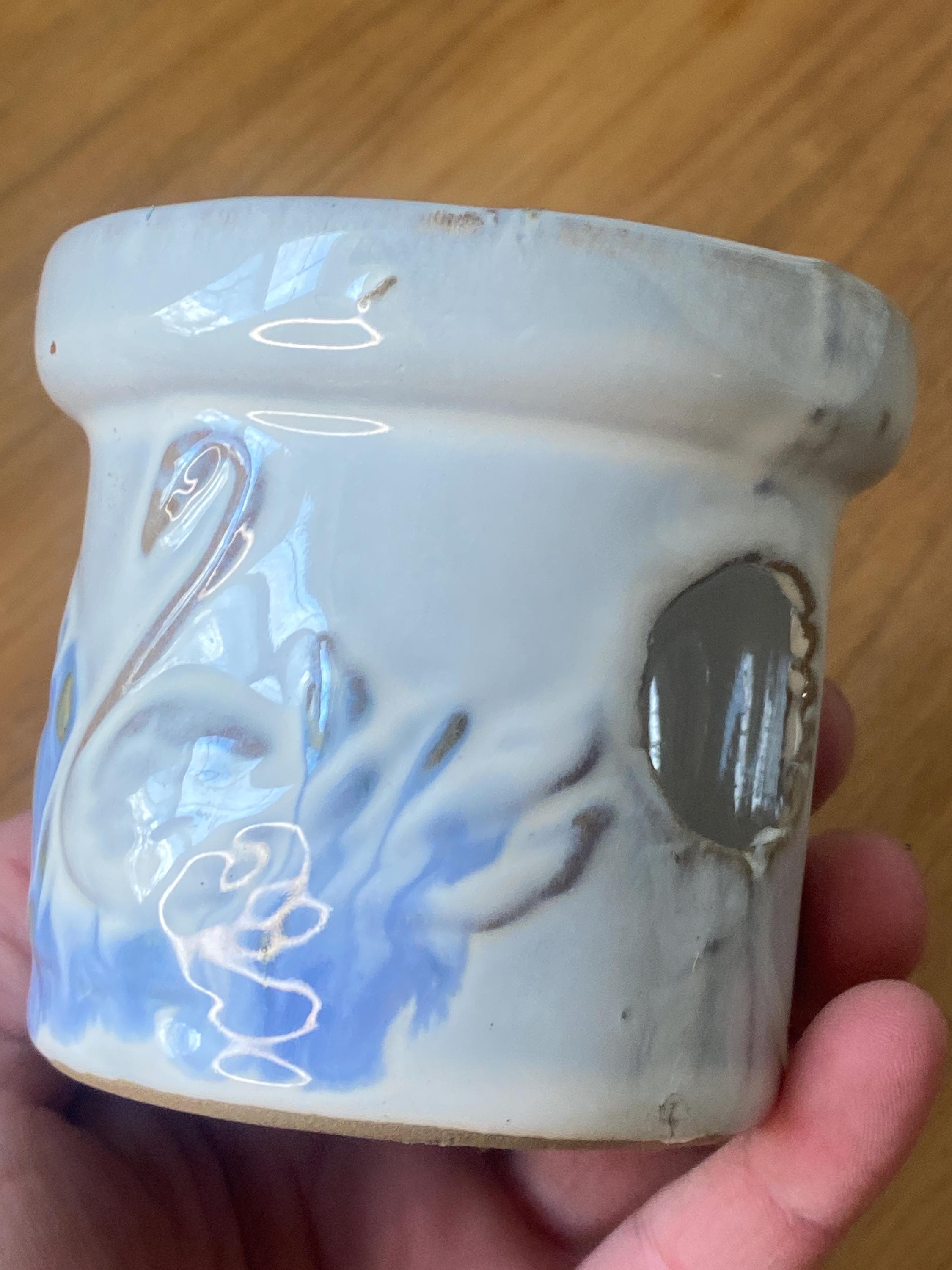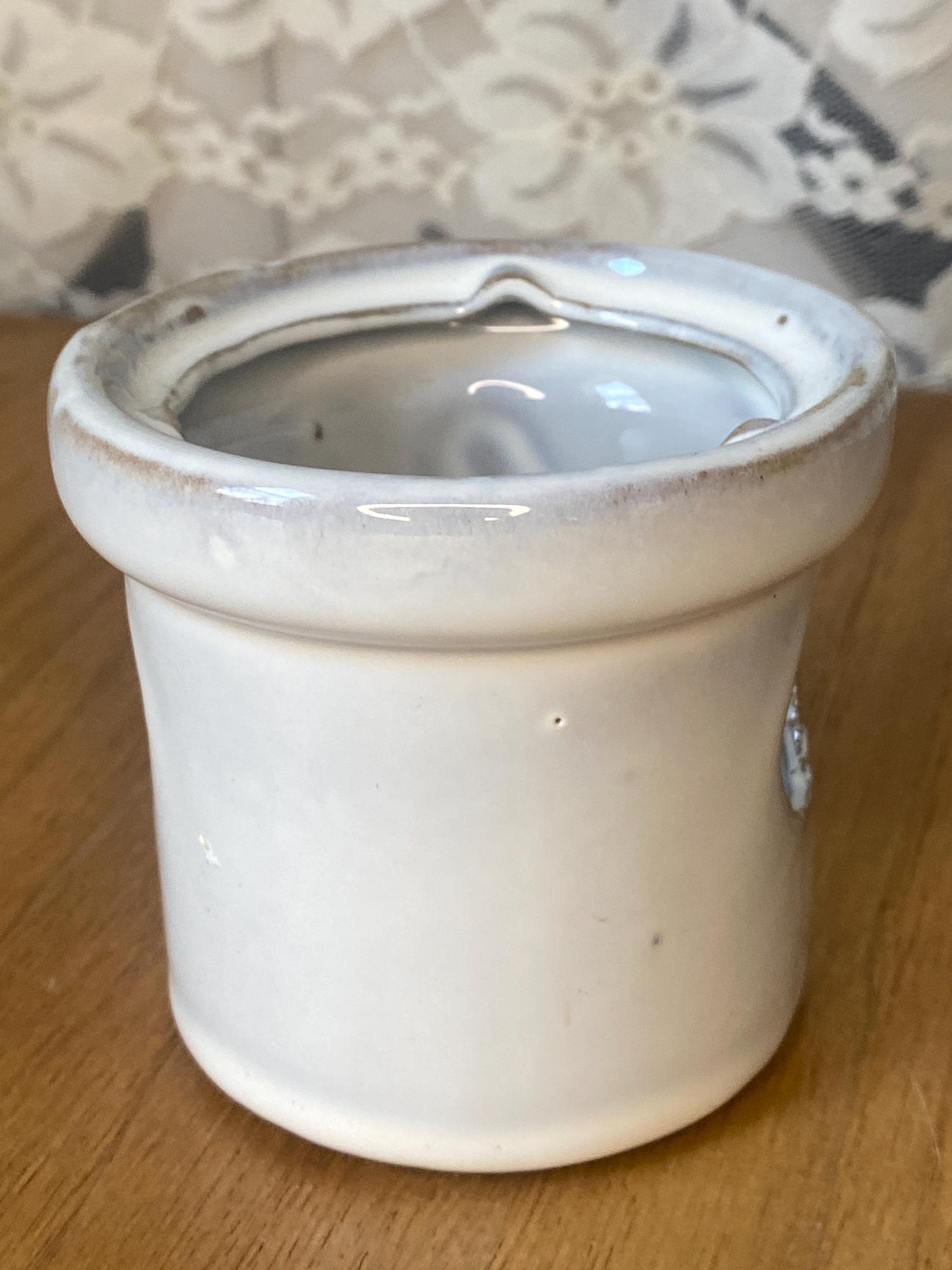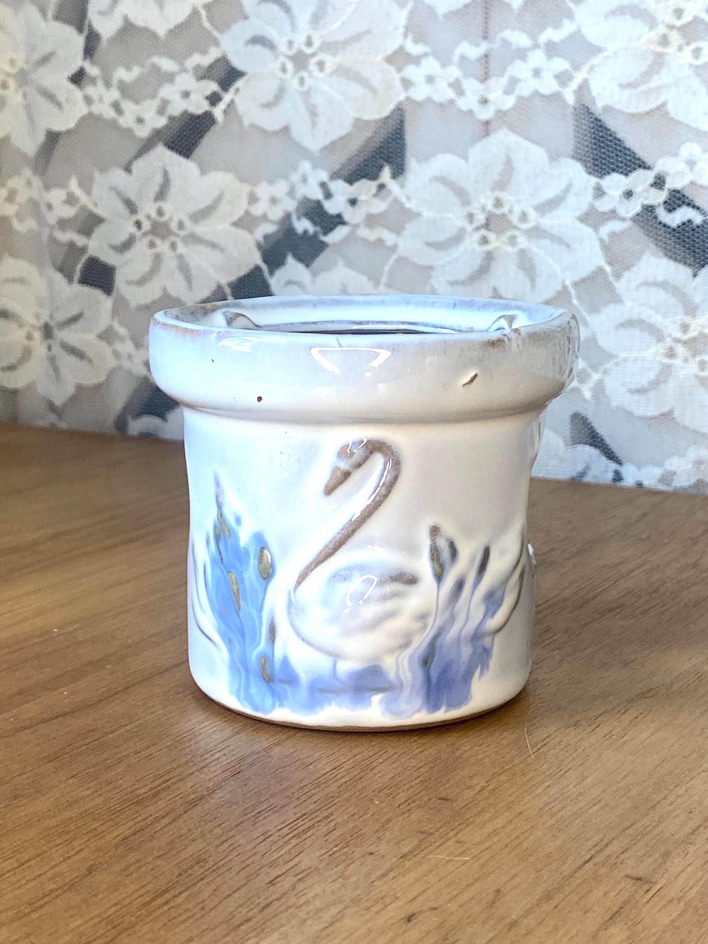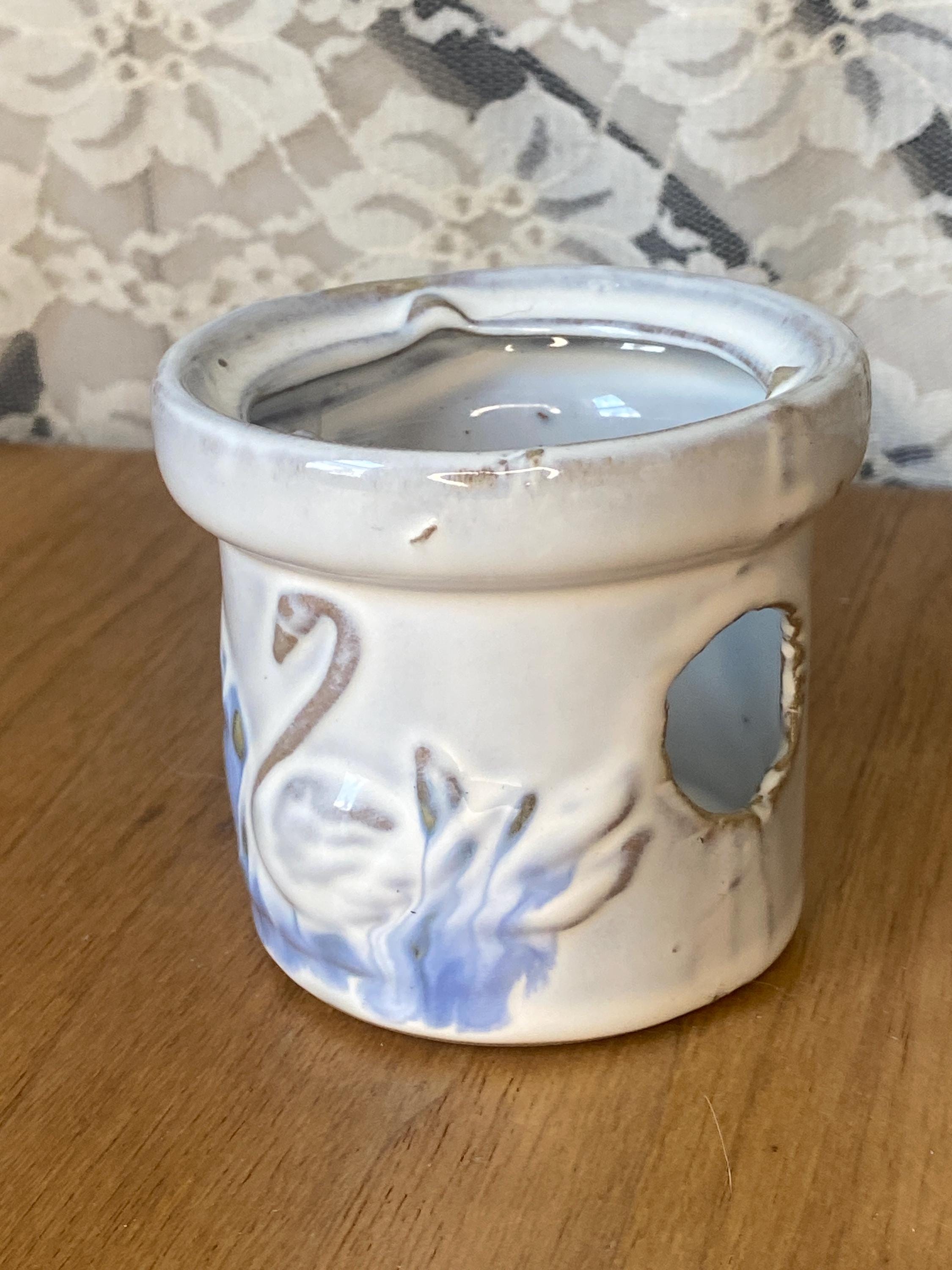 3X2.75 inches. Nice sturdy piece with cutouts on sides to show candle light. Good vintage condition. All items in my shop are vintage or handmade and may have signs of use, wear, or variation consistent with age or hand production. Please review the photos and video carefully and message me with any questions on condition.